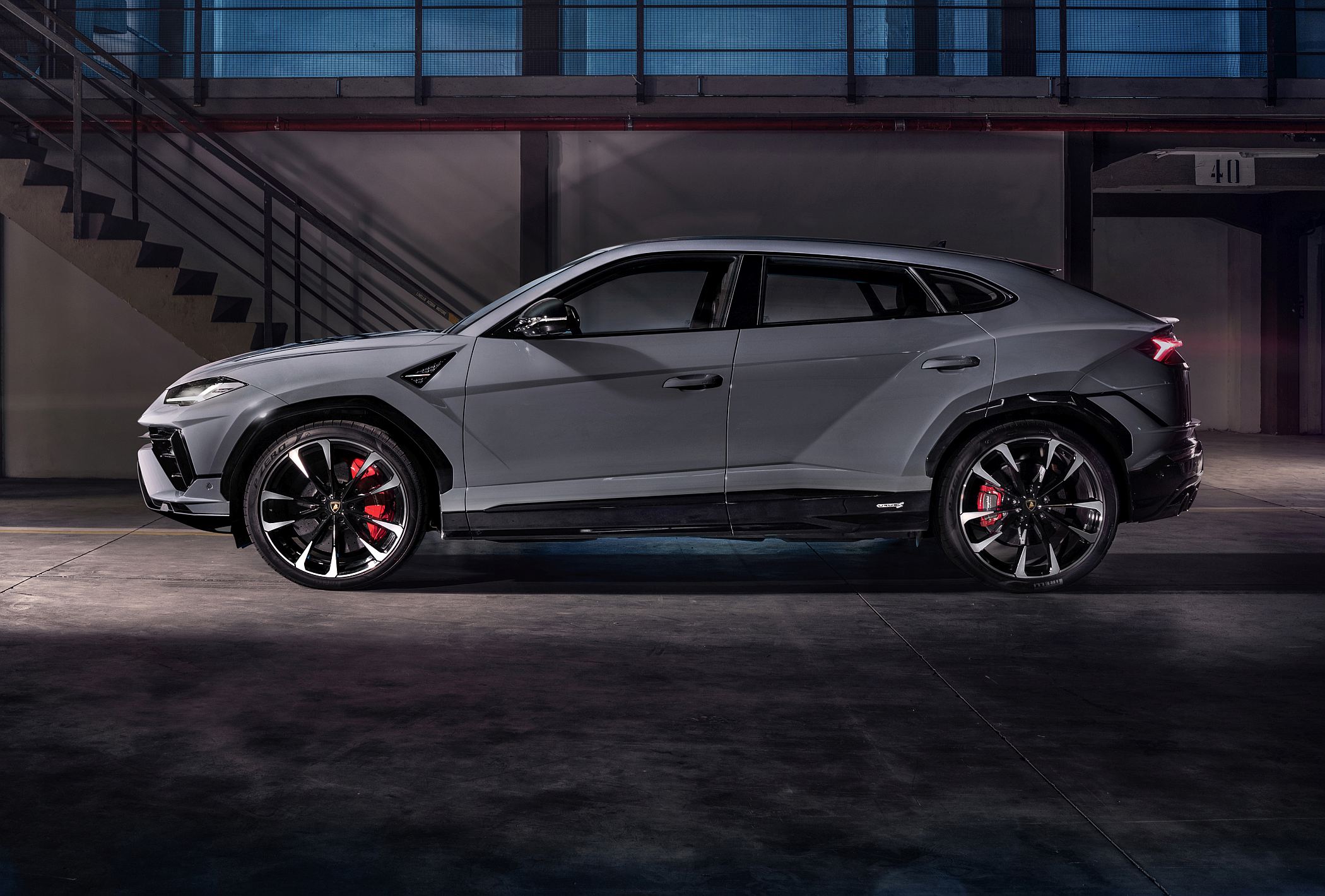 O para-choques dianteiro de novo design incorpora, de série, uma nova proteção inferior em aço inoxidável pintada de preto, complementada pelas linhas pretas da grelha frontal. Cinco opções de configuração estilística adicionais combinam componentes na cor da carroçaria, em preto brilhante e em fibra de carbono, com acabamento brilhante e mate, permitindo adotar configurações vincadamente individuais para o Urus S.