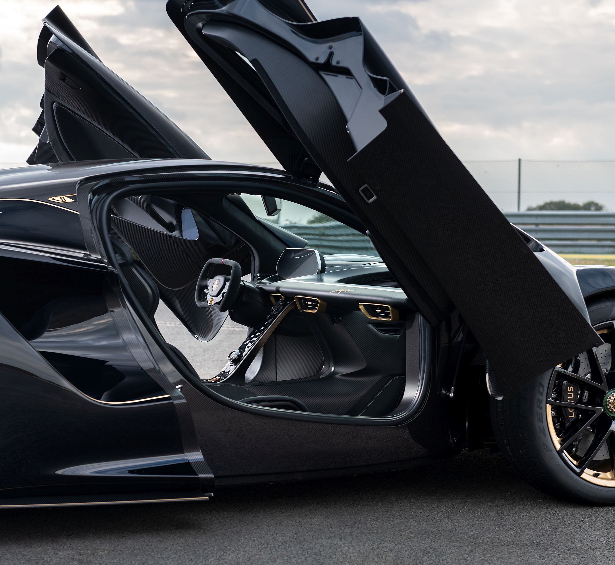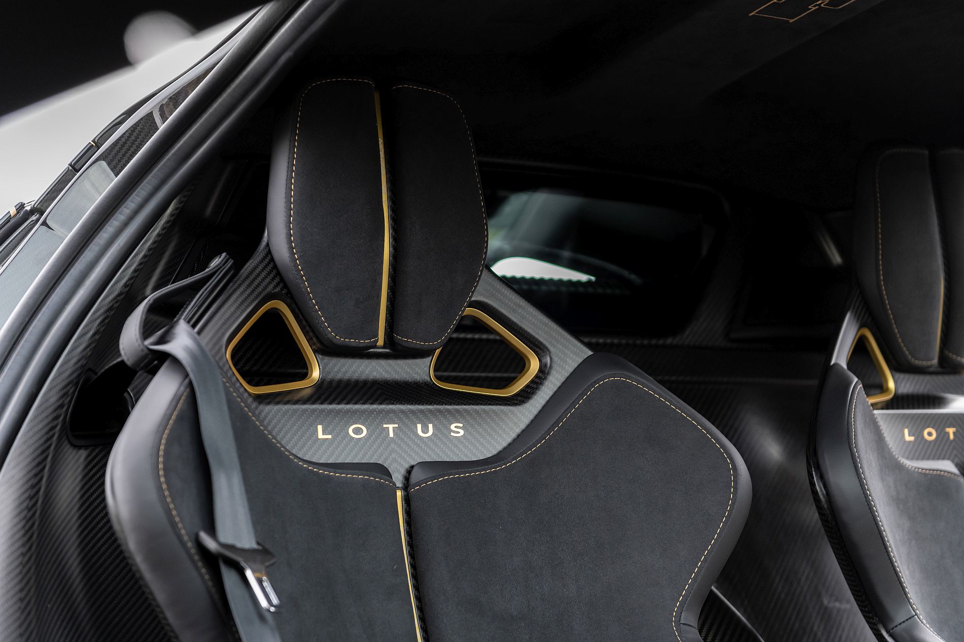 Mas o elemento mais emotivo, de acordo com a Lotus, é o comando rotativo na consola central flutuante, que é feito a partir do alumínio reciclado do Type 72, assegurando que este hiperdesportivo conta com uma parte autêntica daquele monolugar.