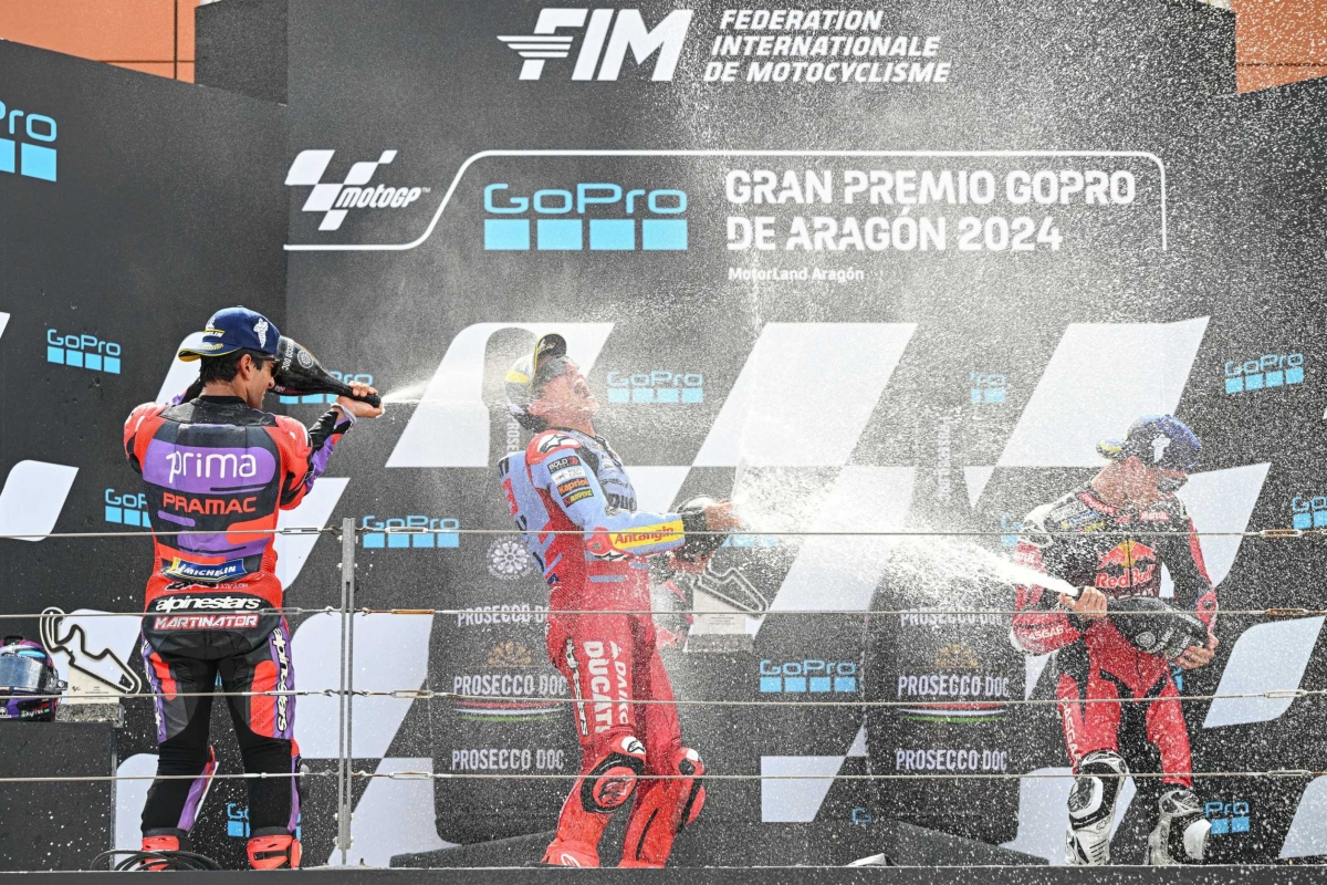 Também houve muito que falar no seu rasto, com Jorge Martin (Prima Pramac Racing) a ficar em segundo e a aumentar a liderança do título – recuperada a Francesco Bagnaia (Ducati Lenovo Team) no sábado – depois de Bagnaia ter parado no pódio num confronto com Alex Marquez (Gresini Racing MotoGP). O veredito dos Comissários Desportivos da FIM MotoGP: incidente de corrida e nenhuma ação adicional. O veredito de cada piloto é totalmente oposto.