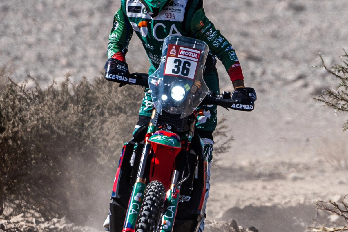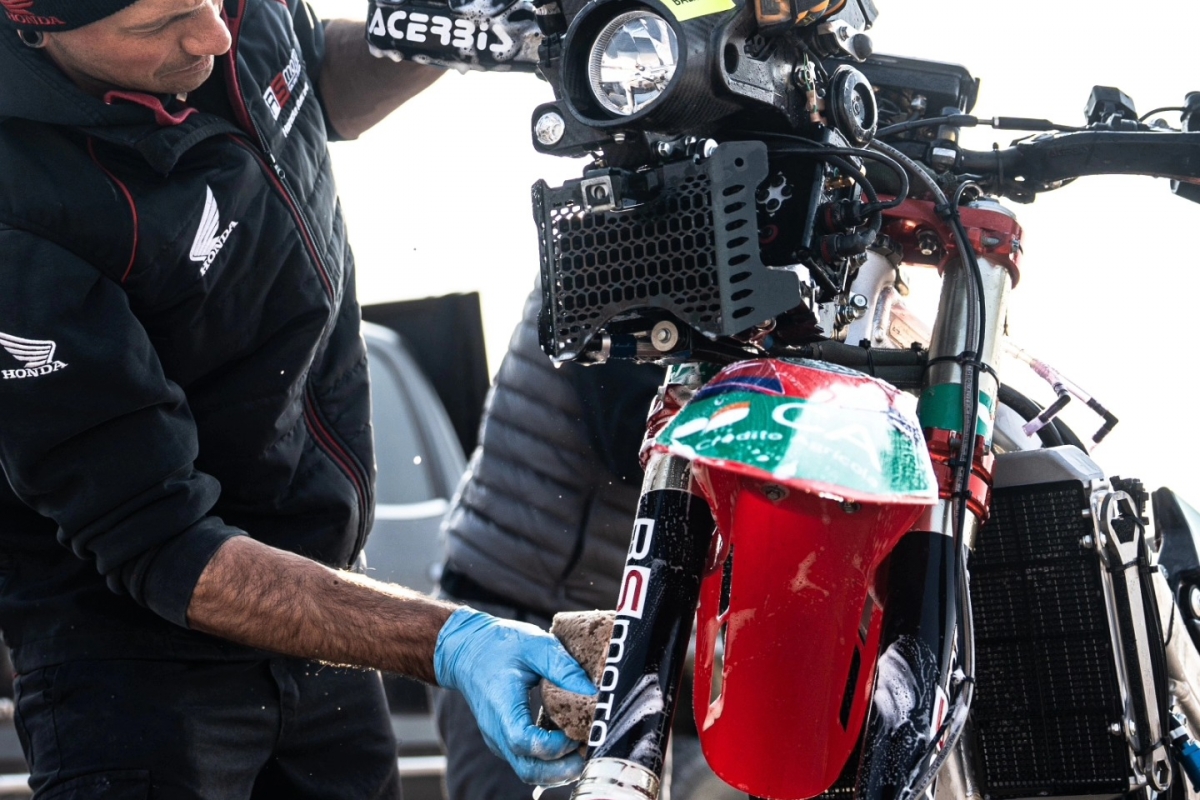 Mário conta como tudo aconteceu em tão pouco tempo: “A Honda contactou-nos no final de novembro para saber se queríamos integrar o projeto que tinham para este ano. Quisemos perceber o objetivo e que mota seria. Fomos convidados para a ir testar em Itália em meados de dezembro, mas acabou por não ser possível. O que custou mais foi ir para o Dakar sem conhecer a moto. No prólogo e na primeira etapa senti muita dificuldade, mas depois foi tudo acontecendo naturalmente, fui-me habituando. A moto é baseada numa CRF de enduro, por isso é mais curta, o que eu prefiro para o terreno mais técnico, especialmente com muita pedra”. O piloto explicou ainda a dificuldade que teve com a caixa de velocidades por causa das primeiras relações serem muito curtas: “Nunca utilizei a primeira mudança, nas dunas tive de escolher muito bem a relação certa e a velocidade para subir de uma só vez”.