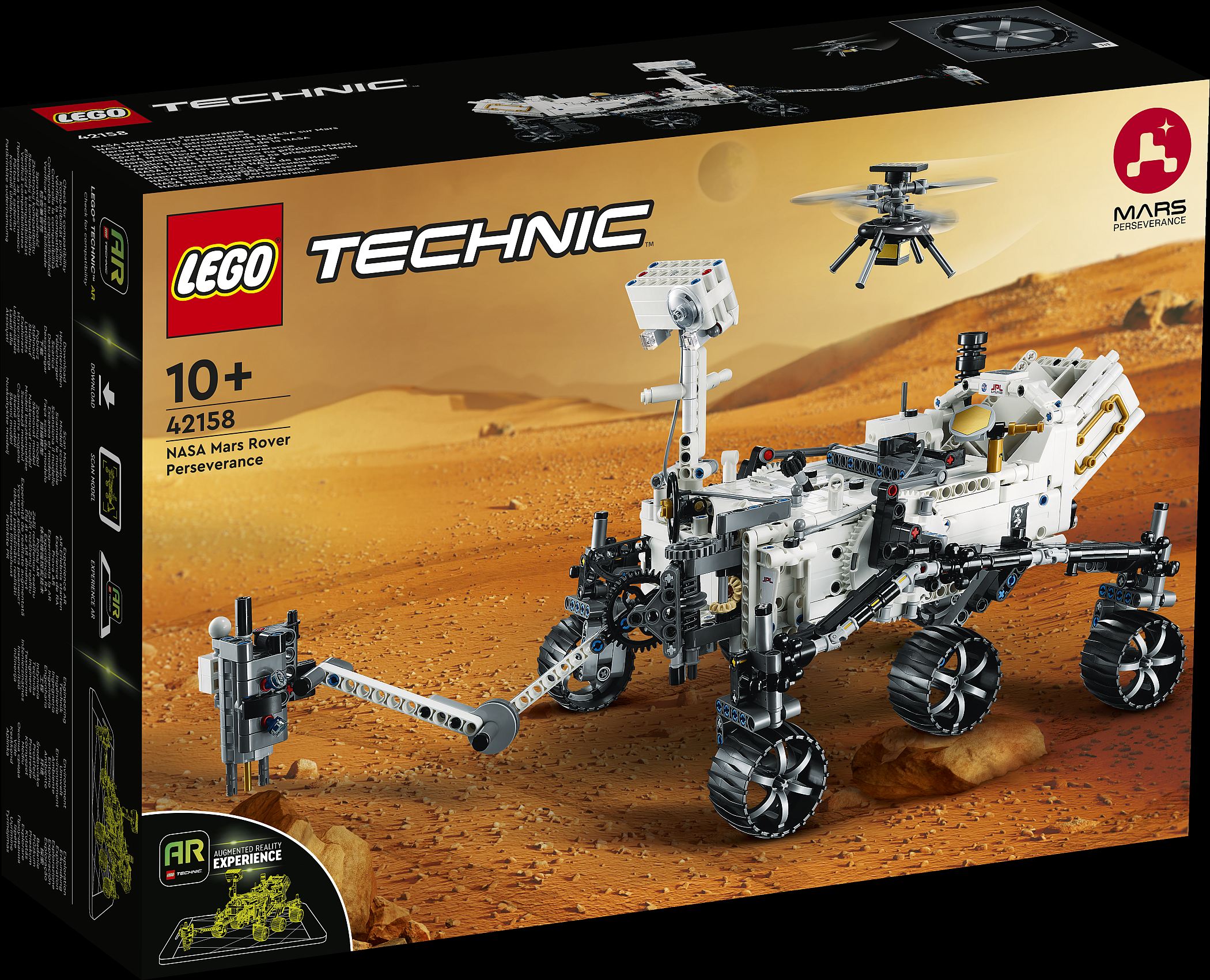 Medindo 23 cm de altura, 32 cm de comprimento e 23 cm de largura, o modelo tem direção de 360° e um braço móvel, além da suspensão integralmente articulada, que permite que o veículo transite em superfícies irregulares fazendo uso das seis rodas de que dispõe. Tal como o correspondente da vida real, ao modelo LEGO Technic junta-se uma réplica do Ingenuity Helicopter, o companheiro de missão.