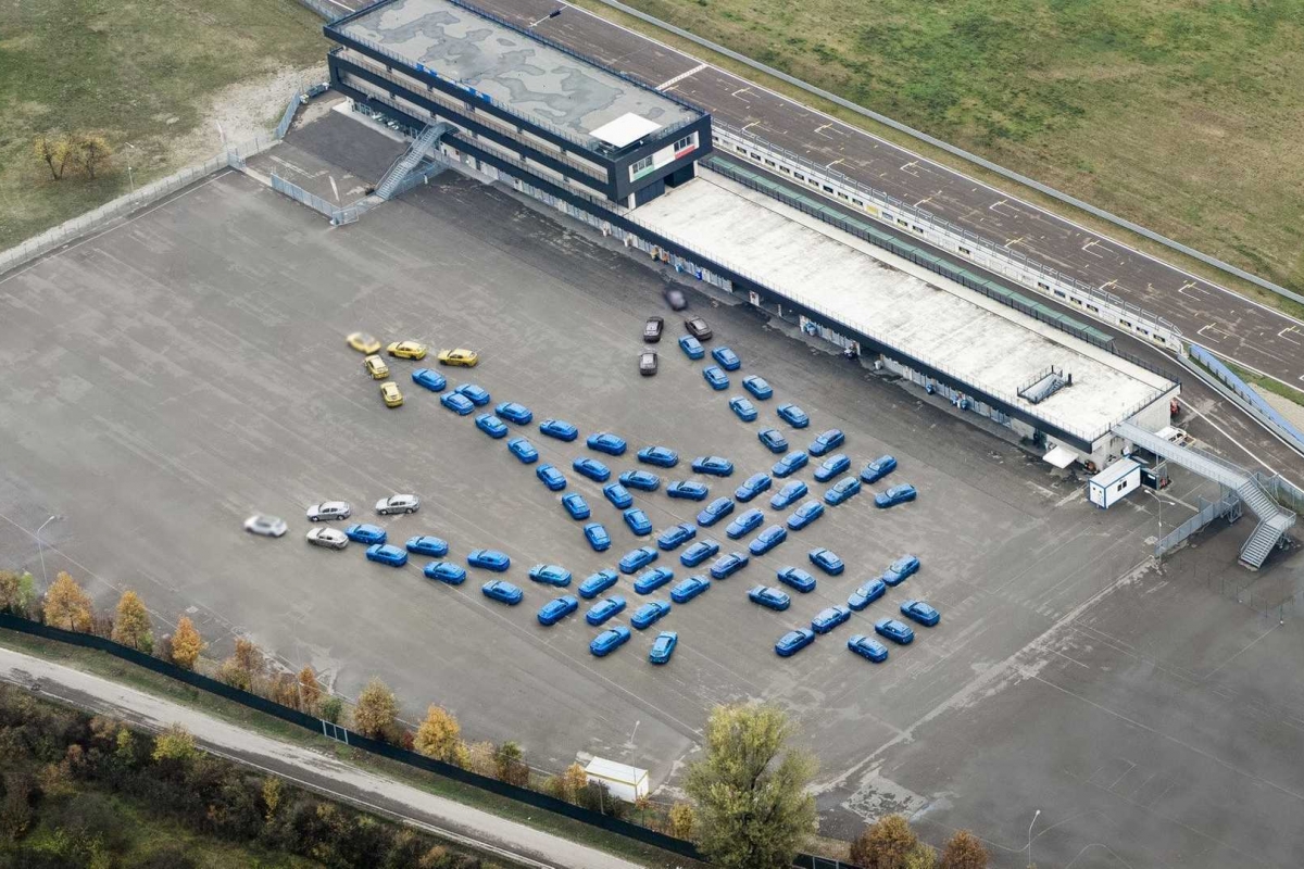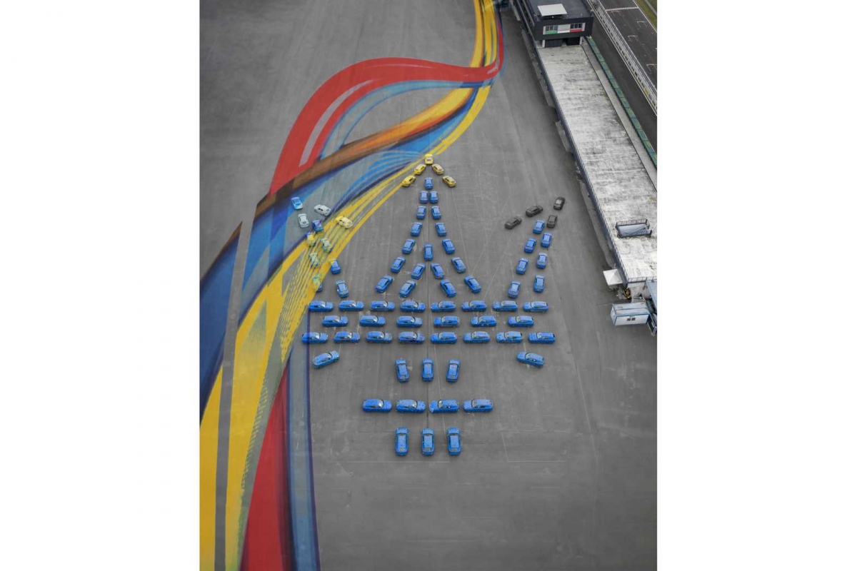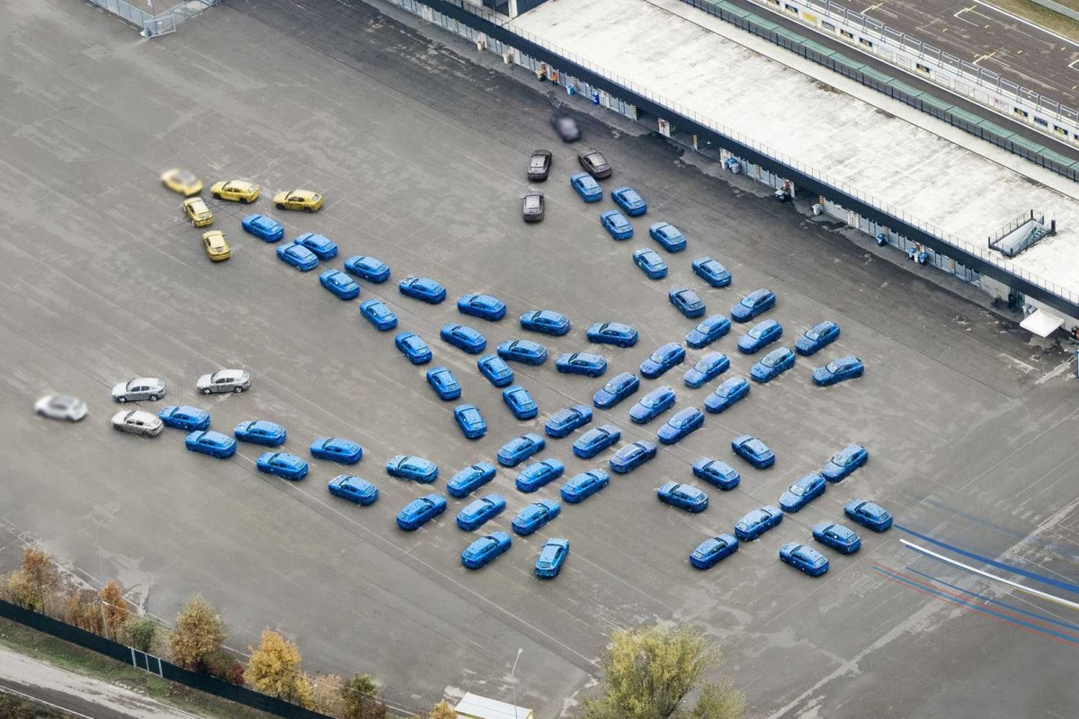A Maserati usou 80 protótipos do Grecale para formar uma versão gigante do emblema do tridente, com mais de 100 de extensão: um novo recorde.