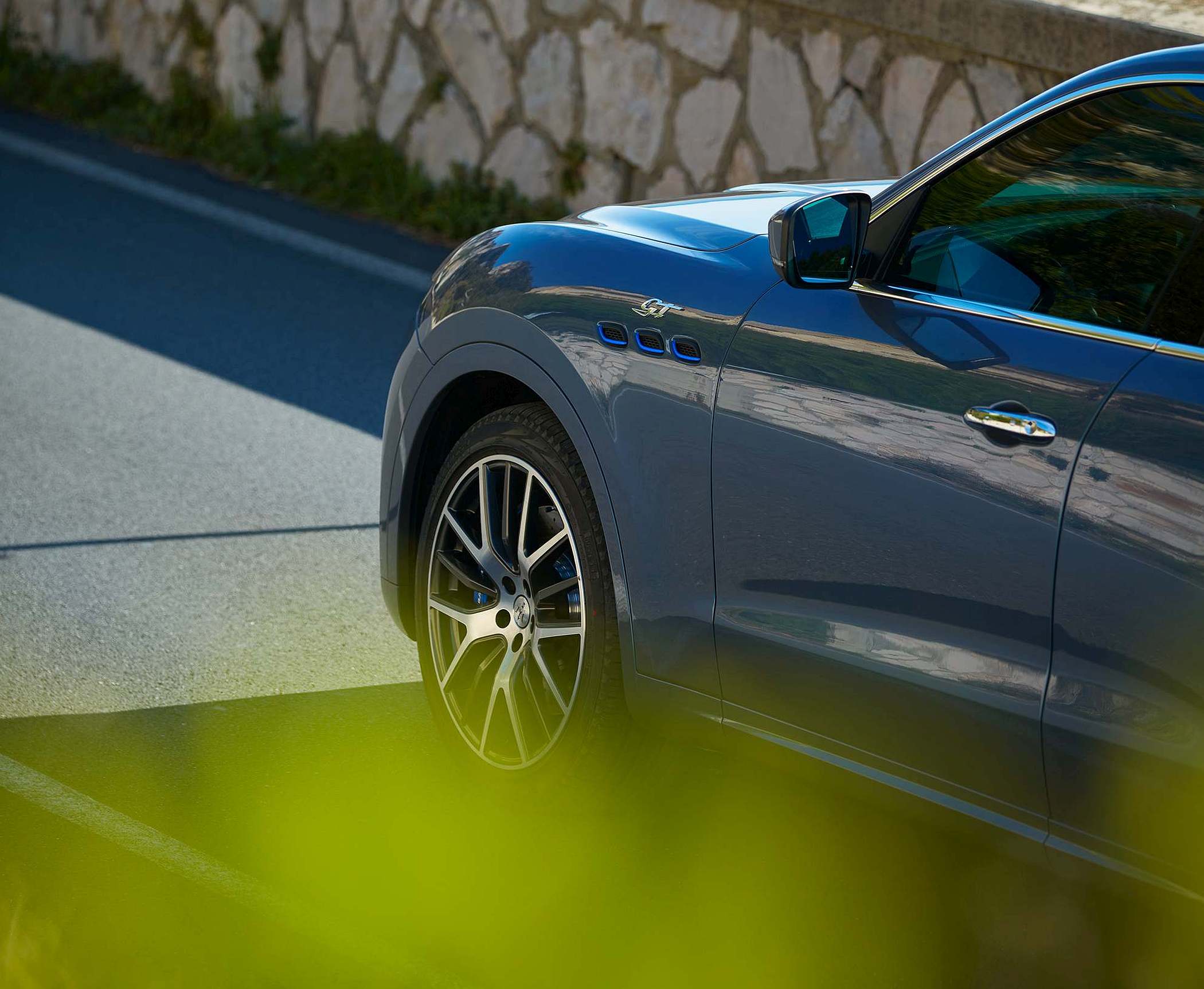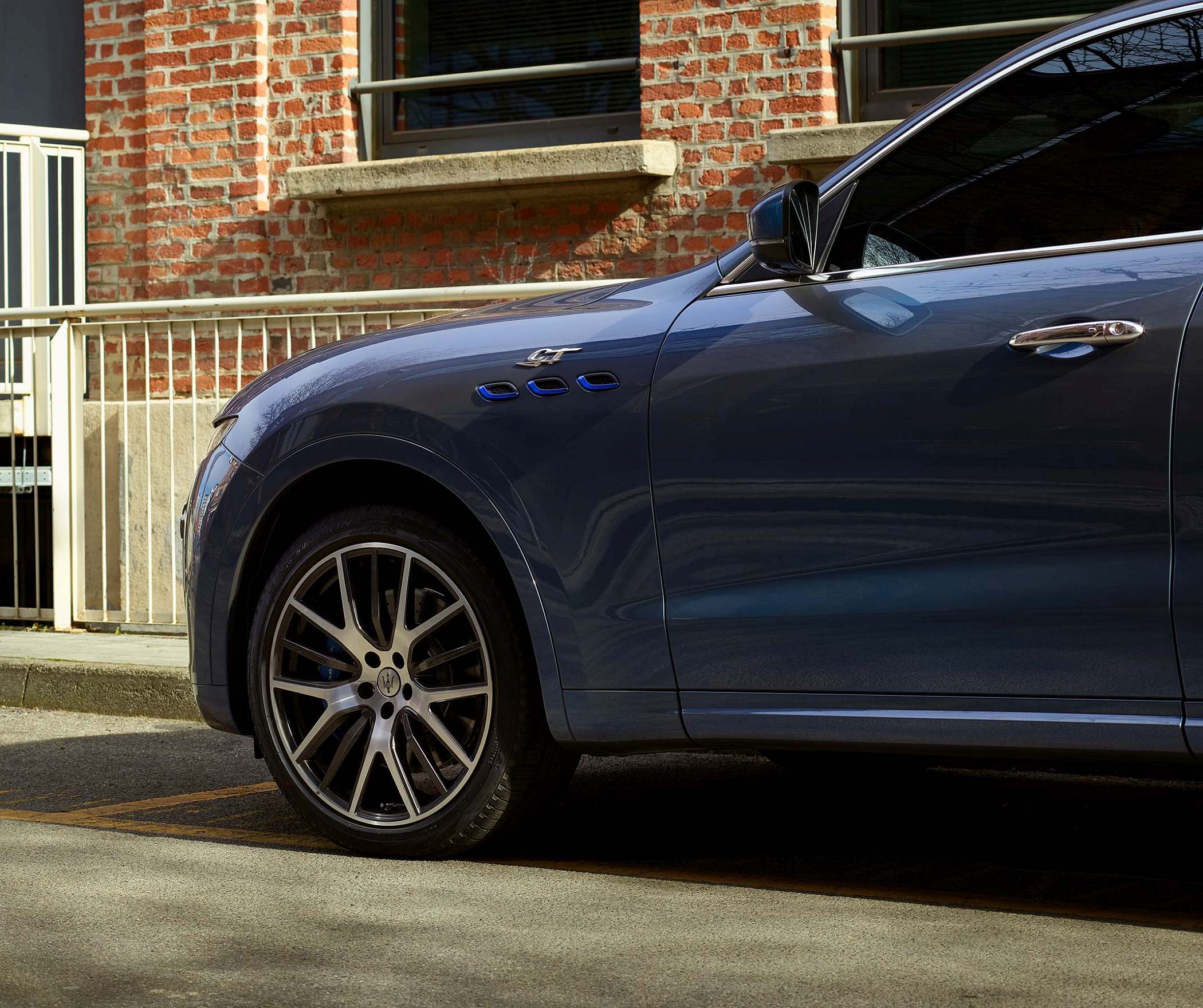 Outros pormenores exteriores e interiores contribuem para reconhecimento fácil do Levante Hybrid, alguns em azul, a cor escolhida para identificar automóveis híbridos, já adotada pela Maserati para distinguir o Ghibli Hybrid. No exterior, o azul personaliza as três saídas de ventilação laterais, as pinças de travão (opção) e o logótipo colocado no pilar C. O mesmo tom de azul reaparece no interior do veículo, especificamente nas costuras dos bancos.