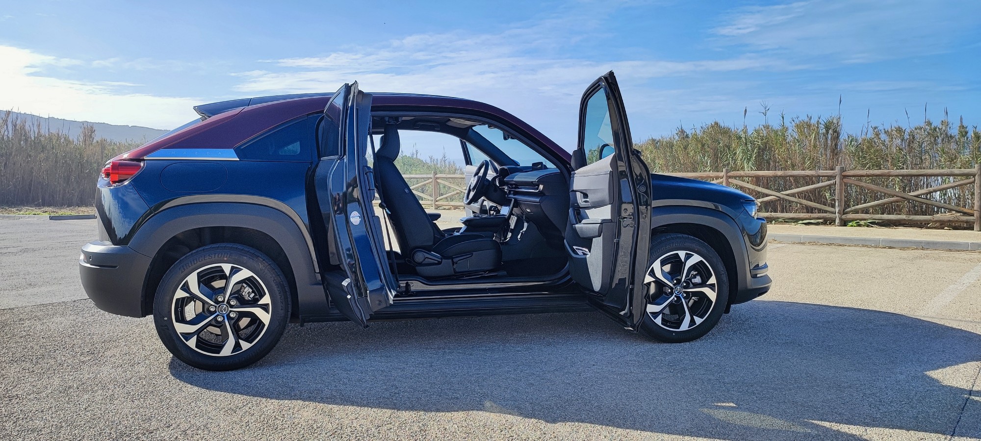 Com recurso a uma plataforma desenvolvida desde o início para múltiplas soluções de motorização, o MX-30 e-Skyactiv R-EV é um plug-in que depois tem um apoio do motor térmico, mas no qual este último nunca move as rodas. Ou seja, existe apenas para alimentar a bateria de tração e movimentar as rodas.