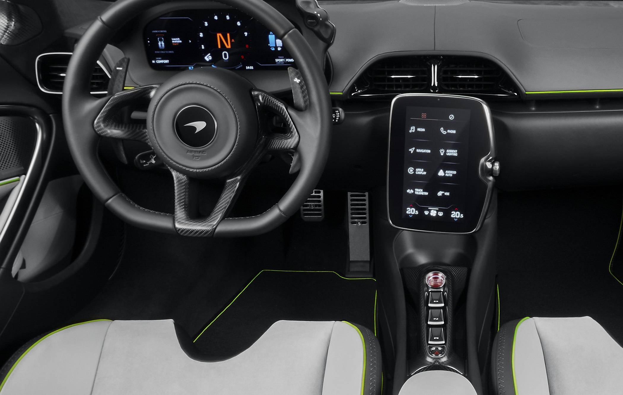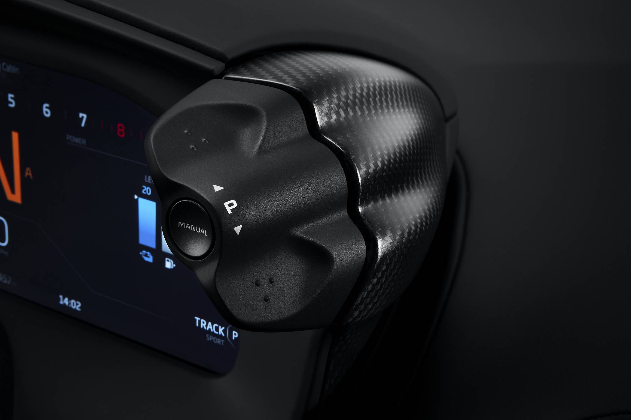 O sistema motriz é complementado ainda pela nova caixa de velocidades de oito velocidades, também otimizada em termos de peso e mais curta do que a anterior de sete, que inclui o primeiro diferencial eletrónico da McLaren, juntando-se à bateria de iões de lítio de 7.4 kWh (com refrigeração por meio de líquido), que concede apoio às prestações, sobretudo nas retomas graças ao binário instantâneo, mas também permite uma autonomia até 30 quilómetros meramente em modo elétrico. A marcha-atrás é sempre elétrica.