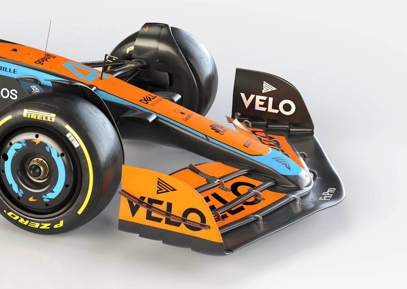 Já a decoração é uma evolução daquela que se encontrava no carro do ano passado, mantendo a tonalidade laranja denominada ‘papaia’ combinada com azul e preto.