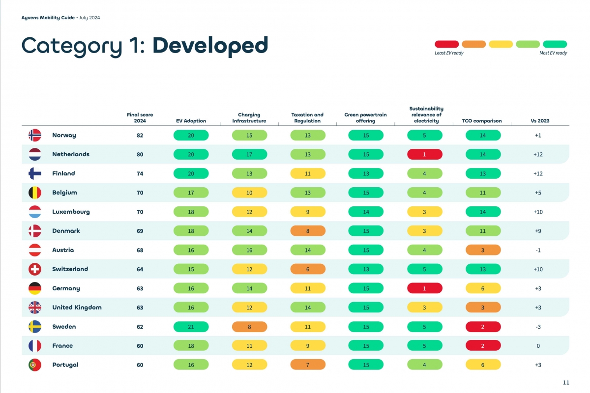 Numa pontuação global de 0 a 100, os países foram classificados de acordo com o seu nível de maturidade e agrupados em 3 grupos: desenvolvidos, em transição ou emergentes. Portugal, com 60 pontos em 100, integra, pela primeira vez, o grupo de países desenvolvidos, ao lado da Noruega, Países Baixos e Finlândia, destacando-se pelo custo total de utilização (TCO) competitivo. Atualmente, este primeiro grupo é composto por 13 países europeus, o que contrasta com os 11 de 2023.