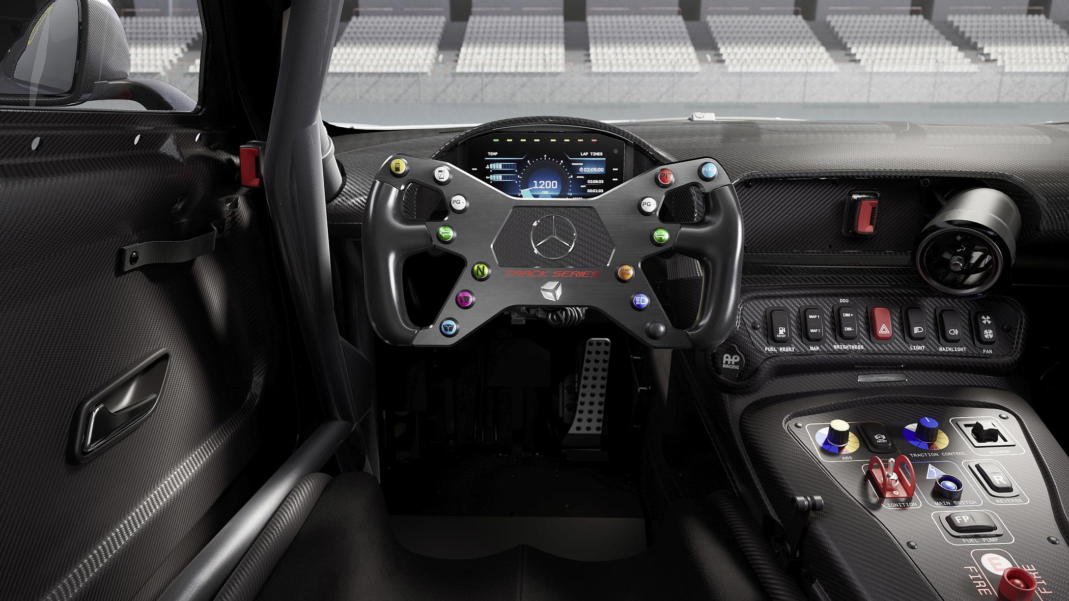 Nota final para o volante desenvolvido unicamente para o GT Track Series em cooperação com os peritos dos videojogos Cube Controls, com diversas possibilidades de ajustes. O tablier concebido em carbono e acabamentos matizados incluem um ecrã totalmente personalizável da Bosch, dispondo também de uma unidade de registo de dados para fins de competição, como por exemplo, um ‘gatilho’ para lançar cada volta rápida e guardá-la num sistema informático.