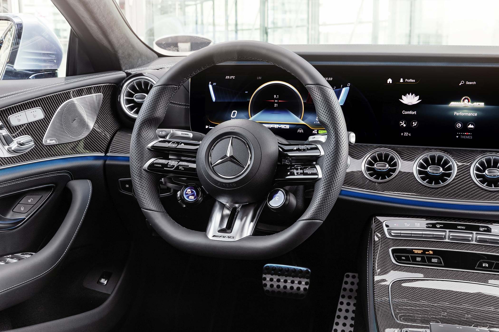 A Mercedes-AMG aproveita esta atualização de meio de ciclo para atualizar o modelo desportivo CLS 53 4MATIC+, introduzindo uma frente redesenhada com o para-choques AMG desportivo em forma de ‘A’, bem como a grelha exclusiva AMG com barras verticais. Os retrovisores externos são pintados na cor do veículo. Por dentro, o novo volante também está disponível, aqui com acabamento em couro napa e com os familiares botões AMG no volante. Em termos de opcionais, dois novos packs permitem que o coupé seja ainda mais desportivo: o Pack Night II AMG, disponível em combinação com o Pack Night AMG, inclui a grelha do radiador desportiva e ‘lettering’ cromado escurecido.