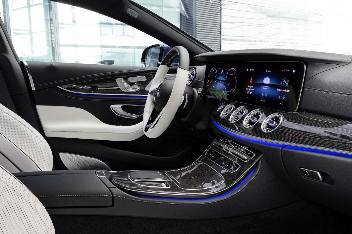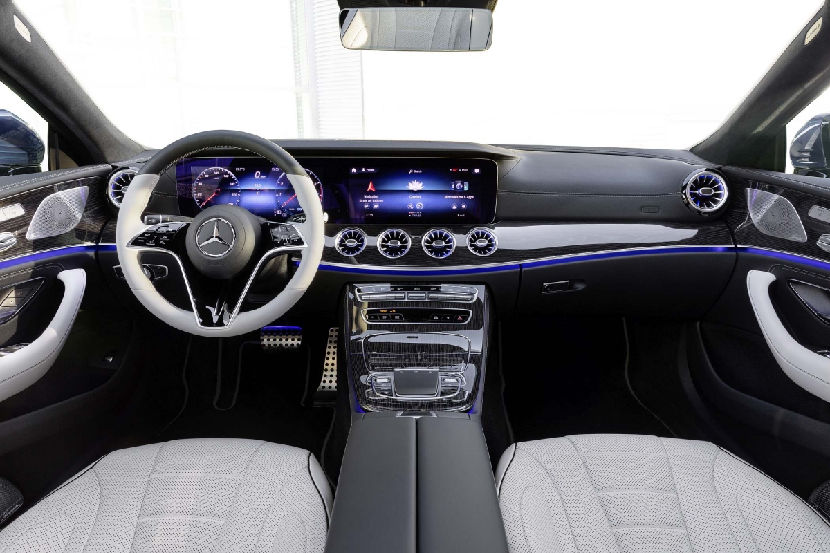 Além do exterior mais distinto, o interior também foi aprimorado, com dois novos acabamentos, incluindo para a consola central. Como parte da atualização, o CLS recebe um volante multifuncional redesenhado. Com o Pack de Assistência à Condução Plus (opcional), o condutor é assistido pelos sistemas Distronic Plus e Distronic Plus com assistente de direção. O volante deteta as mãos do condutor, existindo um sensor de duas zonas no aro do volante. Nenhum movimento de direção é agora necessário para informar os sistemas de assistência que o condutor está no controlo, o que facilita a condução em modo semiautomático.