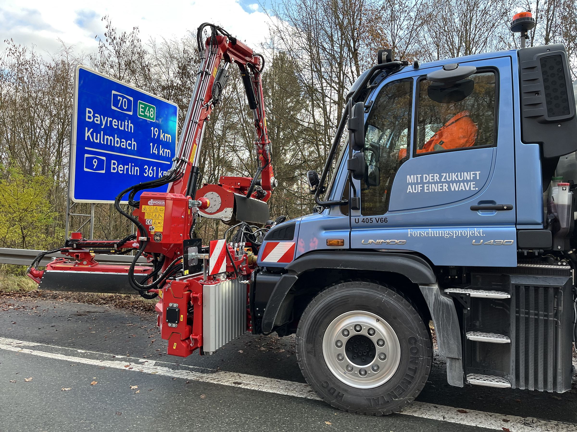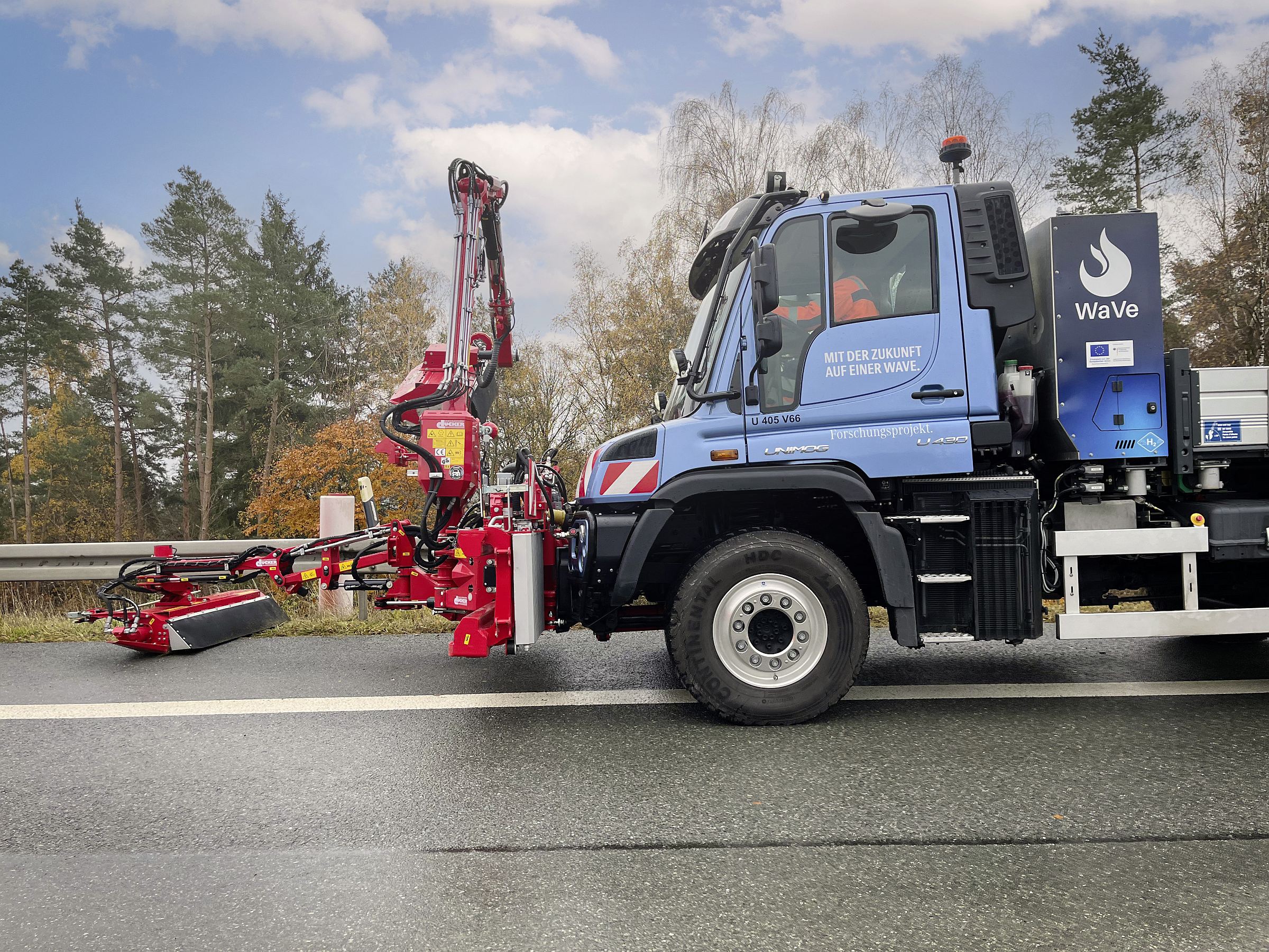 O teste decorre numa secção sem trânsito da autoestrada entre Bayreuth e Bamberg, ao longo da qual os engenheiros recolhem dados relativos a diversos parâmetros deste Unimog durante as suas funções de limpeza das bermas, mas também no reabastecimento em estações públicas. Os dados serão utilizados para desenvolvimento posterior.