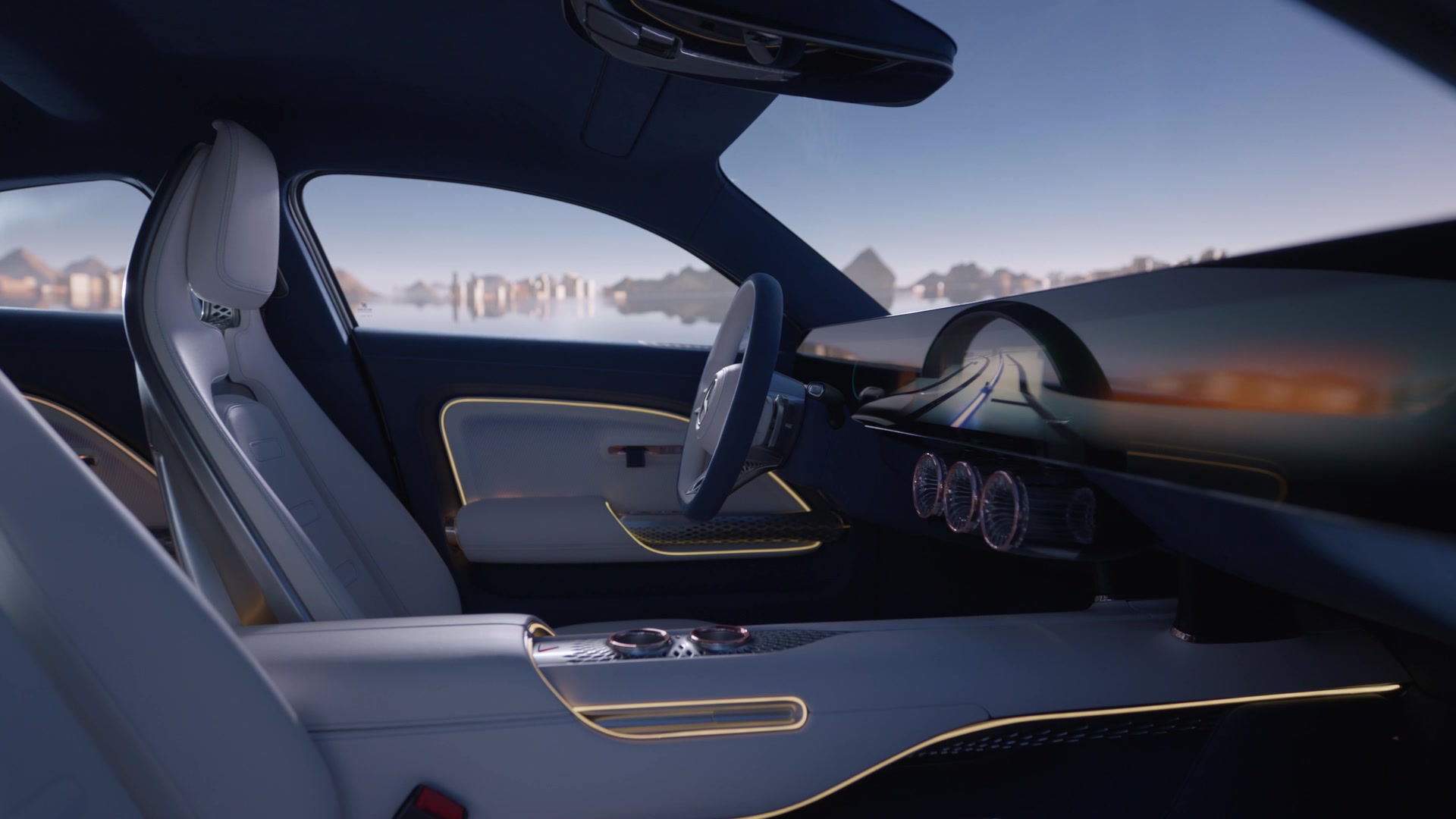 O sistema de infoentretenimento bastante evoluído conta com o tal ecrã horizontal em peça única de 47.5″ e resolução 8K de nova geração, fundindo tecnologias avançadas que “permitirão que o condutor e o automóvel funcionem como um todo e até utilizar tecnologia que replica o funcionamento do cérebro humano”.