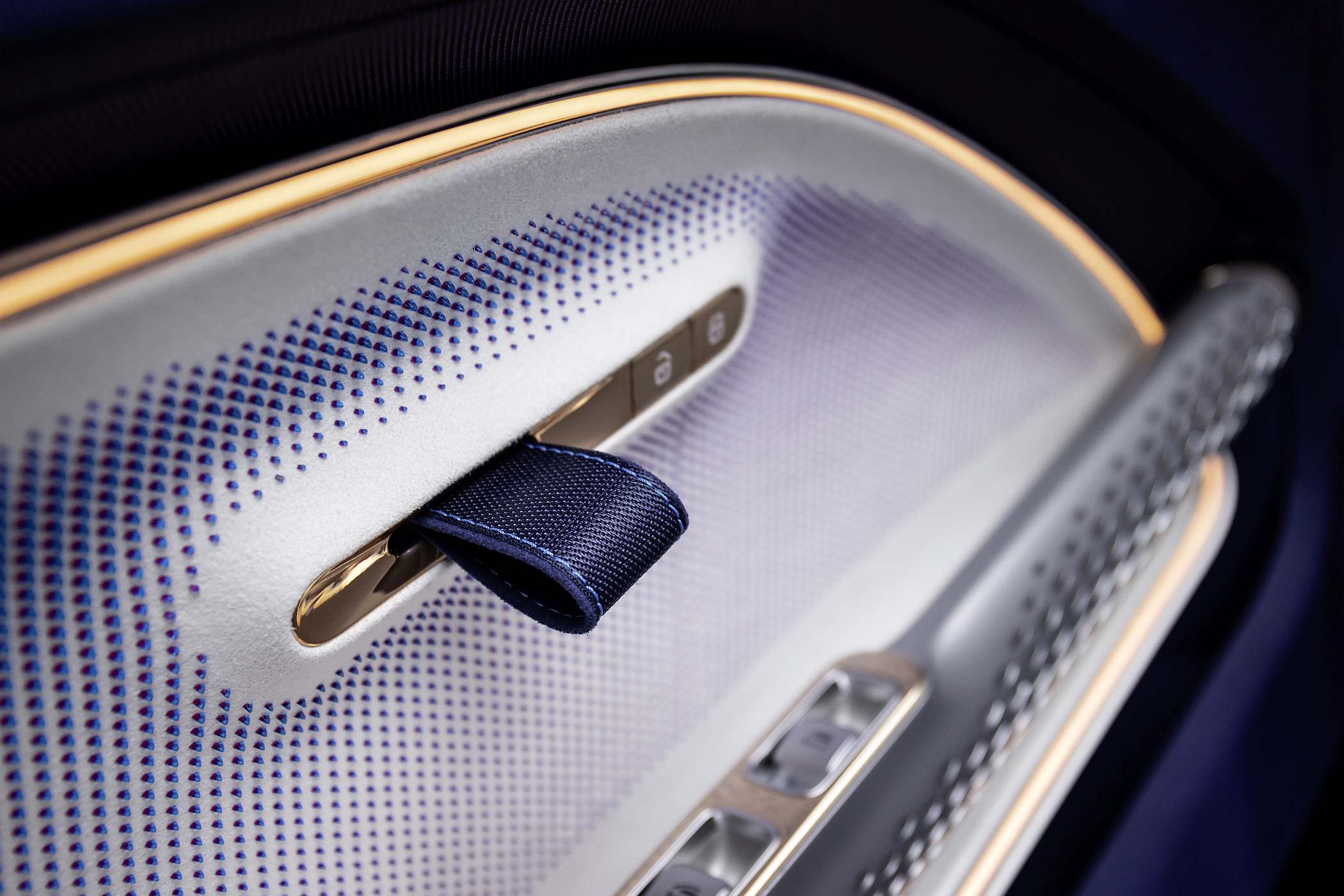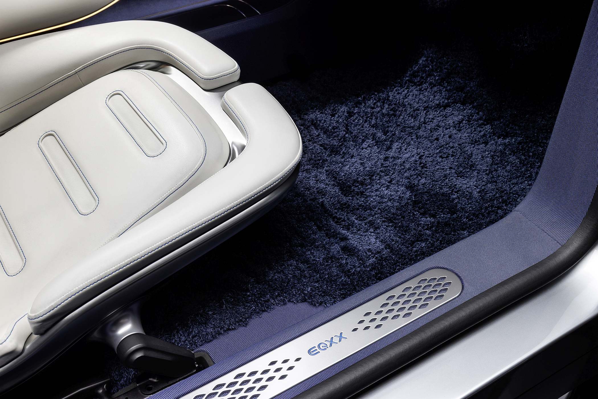 O interior aposta fortemente na digitalização, com uma grande componente tecnológica fomentada pela evolução da filosofia ‘Hyperscreen’ visto no EQS, para se obter agora um único ecrã em peça única num formato flutuante para uma sensação de continuidade no habitáculo, algo que é também possibilitado pela consola central também flutuante. A marca recorreu ainda a materiais sustentáveis para uma visão ecológica em todos os aspetos, como fibras de bambu para o piso e Deserttex, biocomposto proveniente de cacto, que é usado nos bancos.