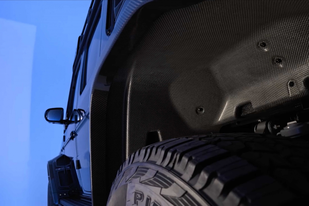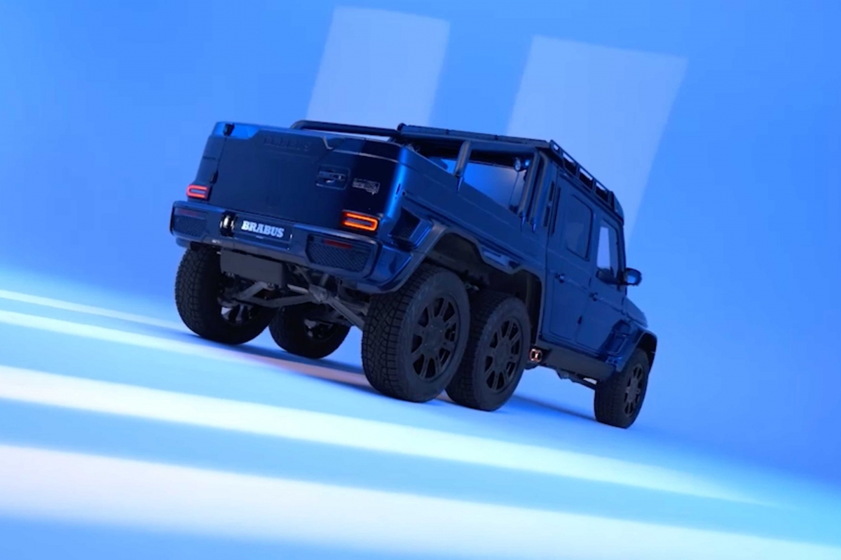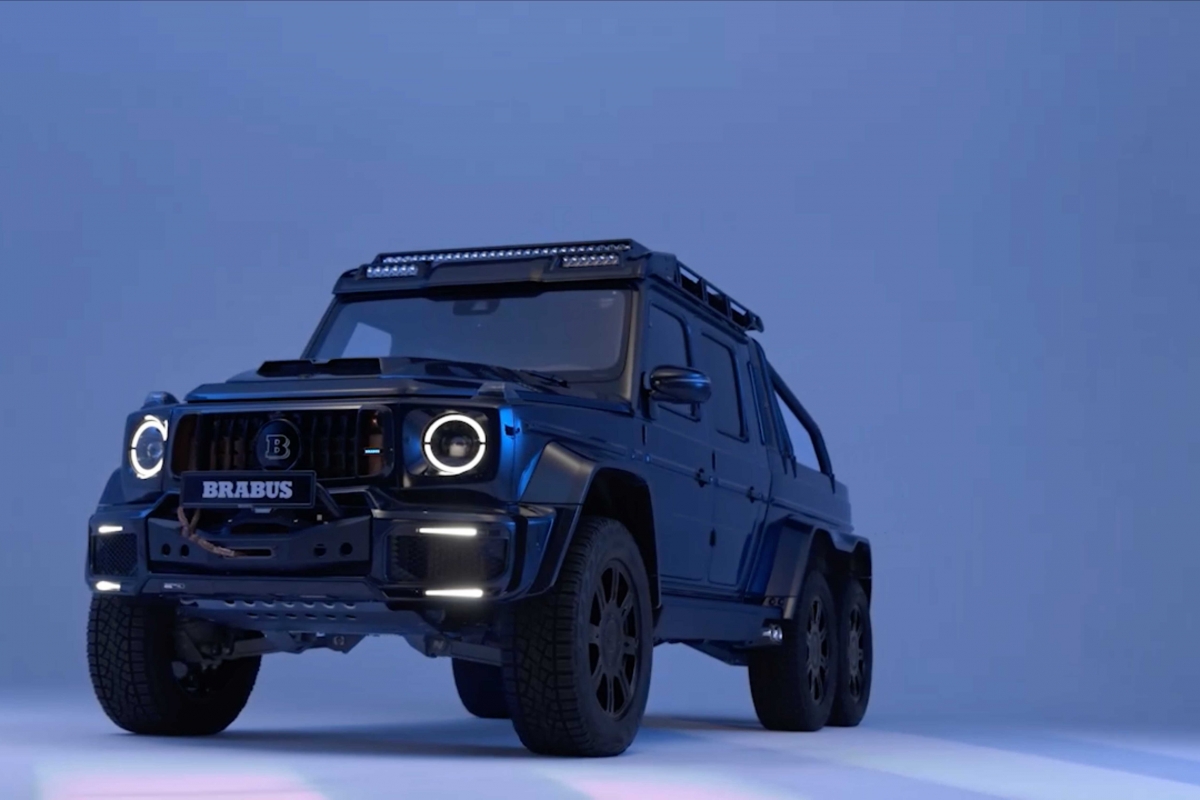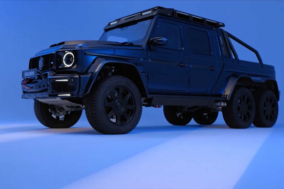 A edição “Deep Blue” é um espetáculo visual, com acabamento num azul metálico profundo personalizado que exala sofisticação e potência. A postura imponente do veículo é acentuada pela sua configuração de seis rodas, chassis alargado e pneus todo-o-terreno de grandes dimensões. A Brabus também incorporou uma série de melhoramentos aerodinâmicos, tais como uma grelha personalizada, elementos em fibra de carbono e detalhes de iluminação LED, conferindo-lhe um comportamento futurista e agressivo. O kit widebody amplifica ainda mais a sua presença imponente, enquanto o interior reflecte o tema do exterior com materiais premium e detalhes artesanais.