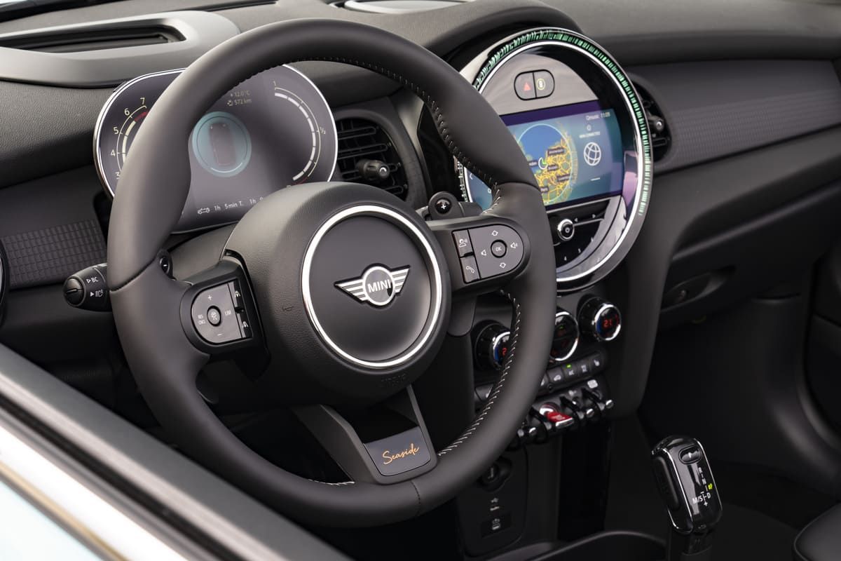 No interior, os bancos contam revestimentos específicos em couro, enquanto o volante recebe a sigla Seaside e o tablier e as portas surgem decorados com vários motivos alusivos ao 30.º Aniversário do Mini Cabrio. A chave também tem desenho específico com inspiração marítima.