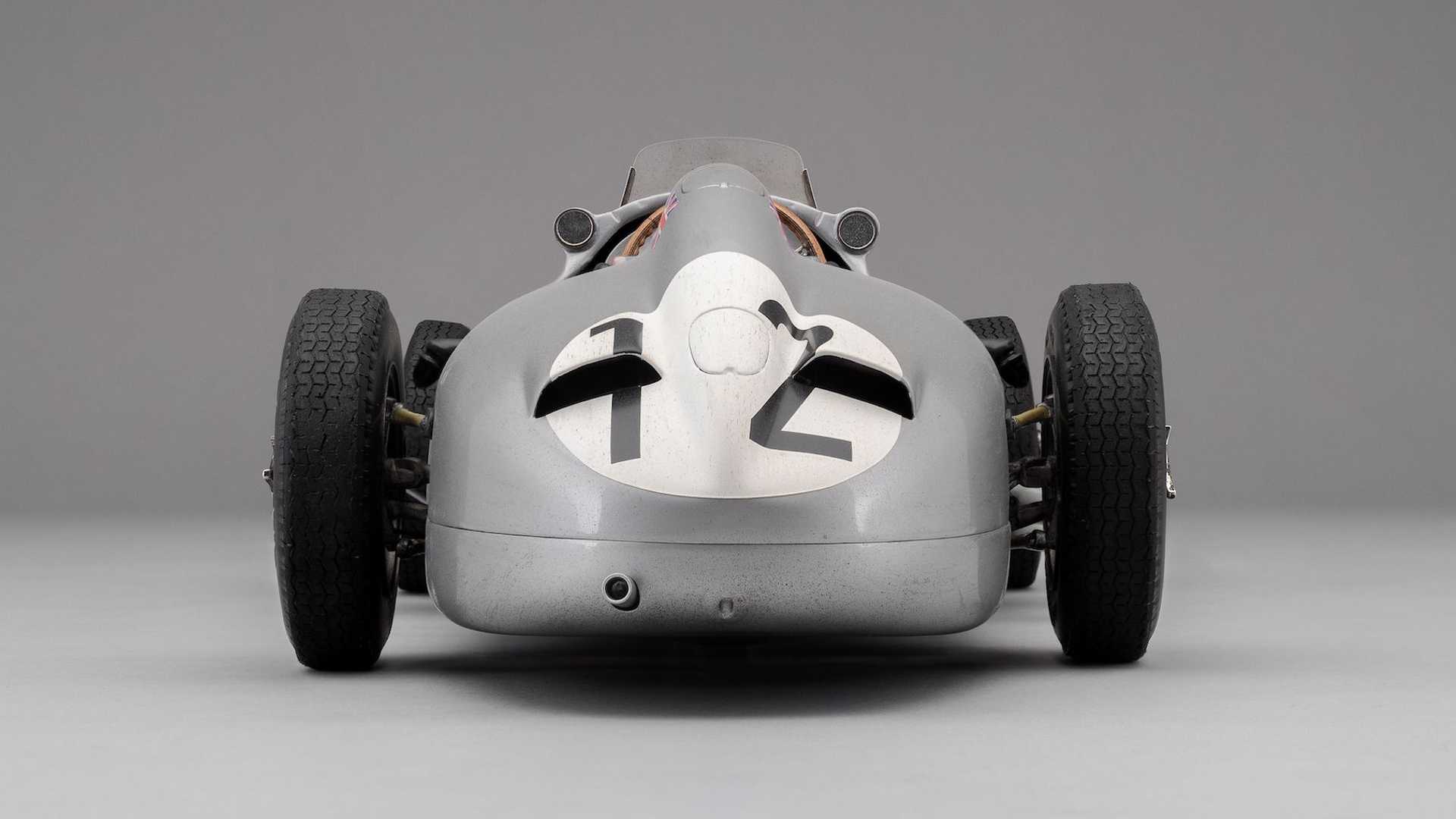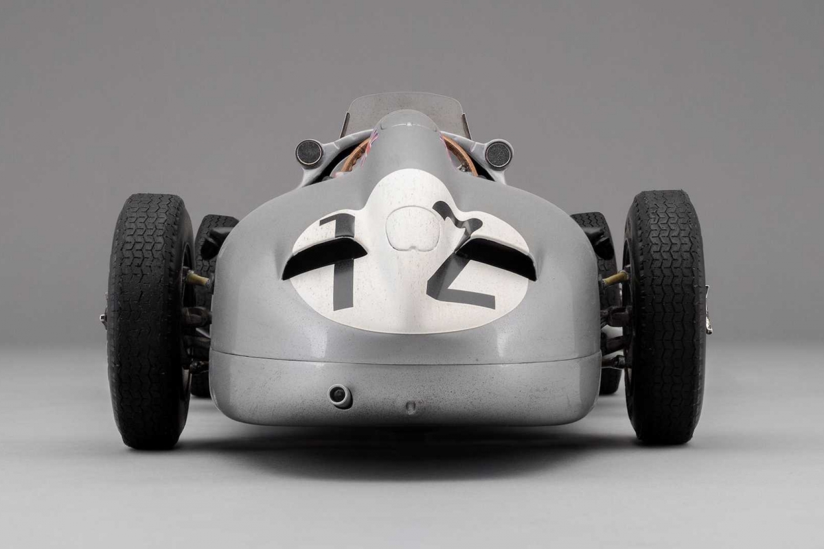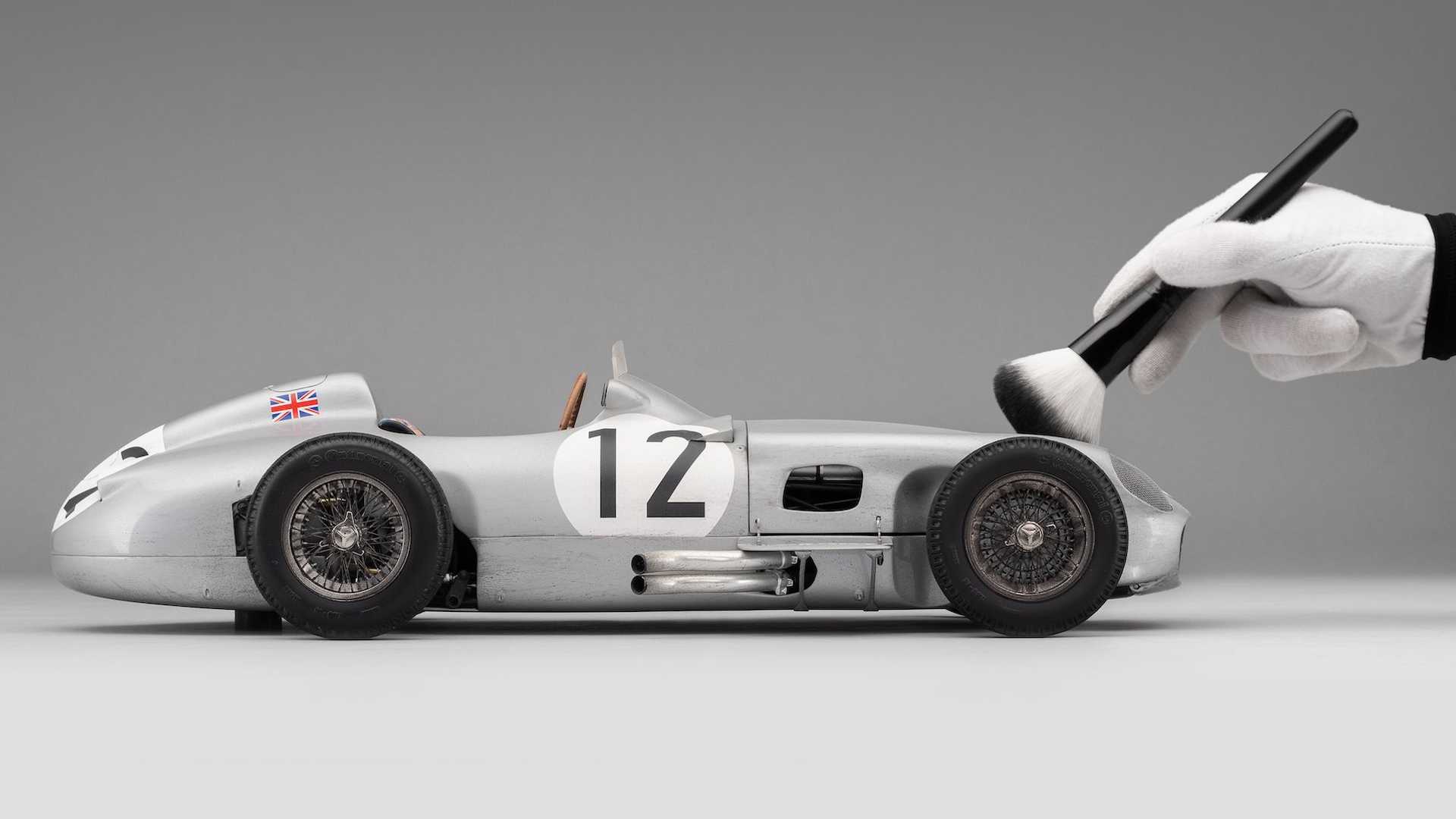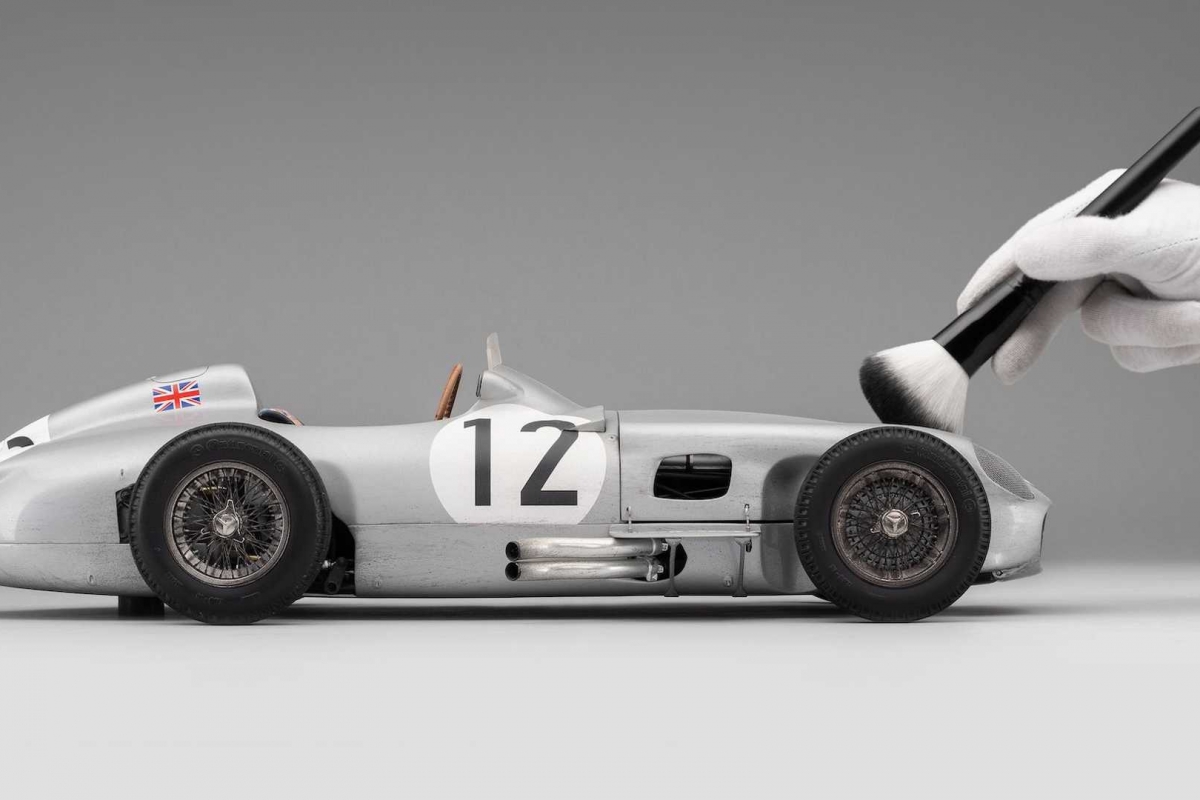 Miniatura à escala 1:8 é a cópia perfeita do F1 conduzido por Stirling Moss no Grande Prémio da Grã-Bretanha de 1955.
