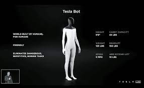 Apresentado pela primeira vez em agosto de 2021, o primeiro Tesla com pernas para andar vai ter um ecrã no lugar do rosto onde serão projetadas todas as informações úteis e mais revelantes. Terá a figura de um humano de estatura média, com uma altura de 1,76m e 57kg de peso, sendo capaz de transportar volumes até 20kg.