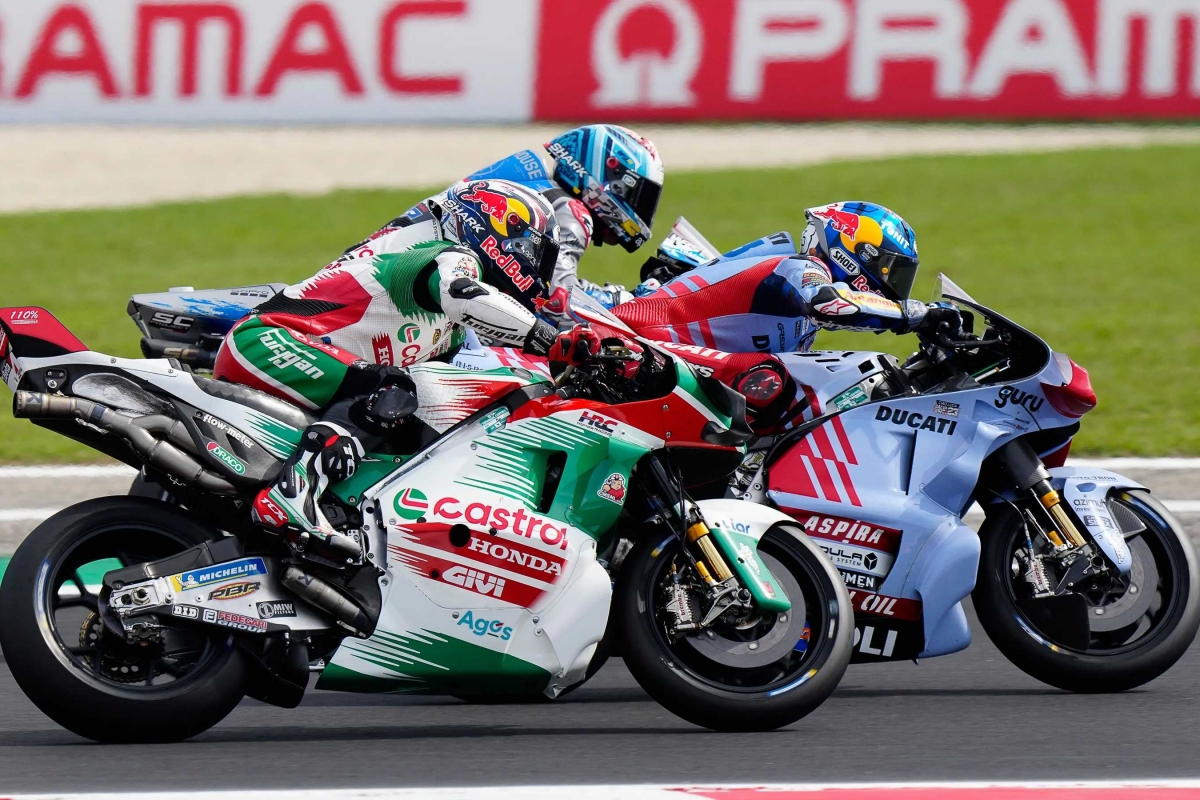 Valeu a atuação de Enea Bastianini que nunca deixou a traseira de Jorge Martin, atacando a primeira posição do espanhol na última volta, por dentro da curva quatro do circuito de Misano. Martin, apanhado de surpresa, quase tocava no rival italiano, acabando por ter de alargar a trajetória para a escapatória, não evitando gestos de desagrado.