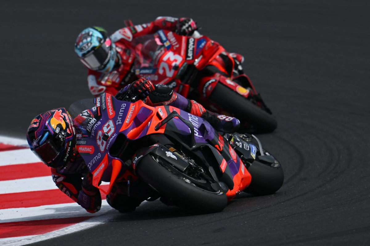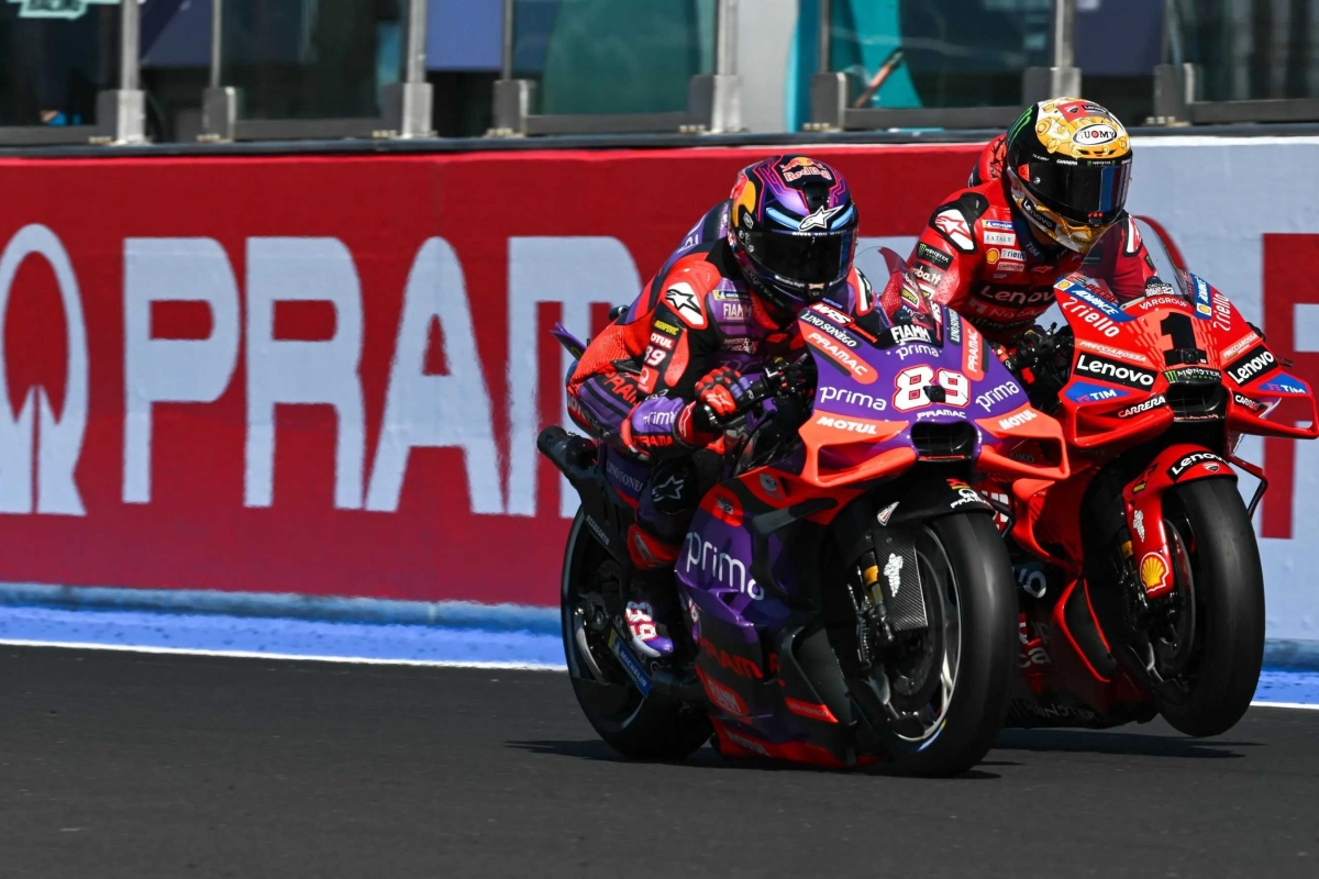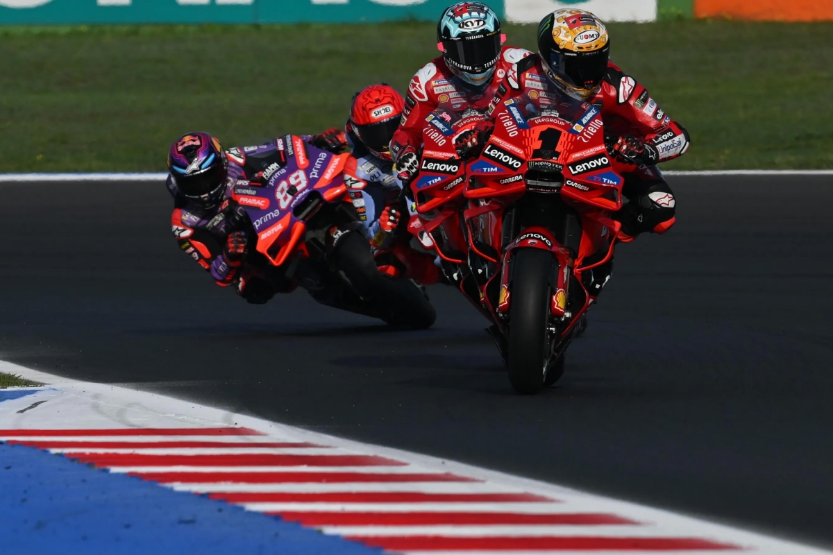 Bagnaia, que largou da poleposition, viu Jorge Martin sair disparado rumo à liderança, mas, desta vez, reagiu a tempo e um par de voltas depois recuperou a liderança.