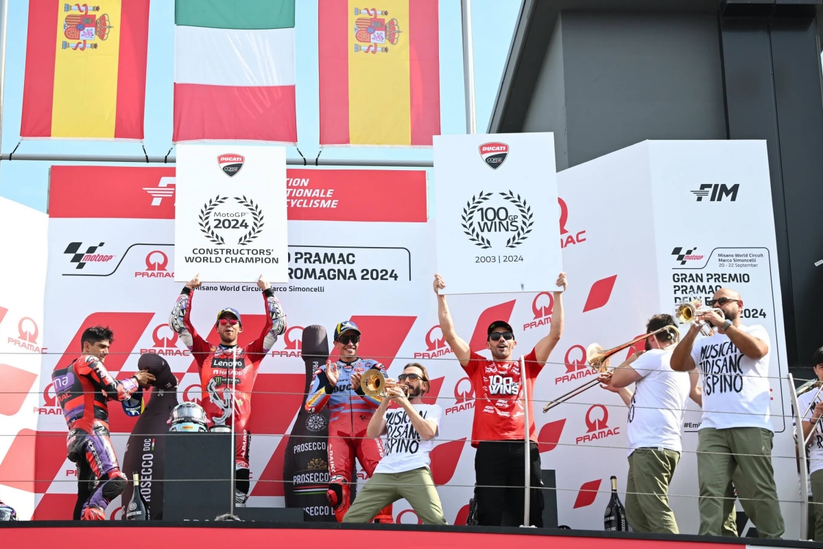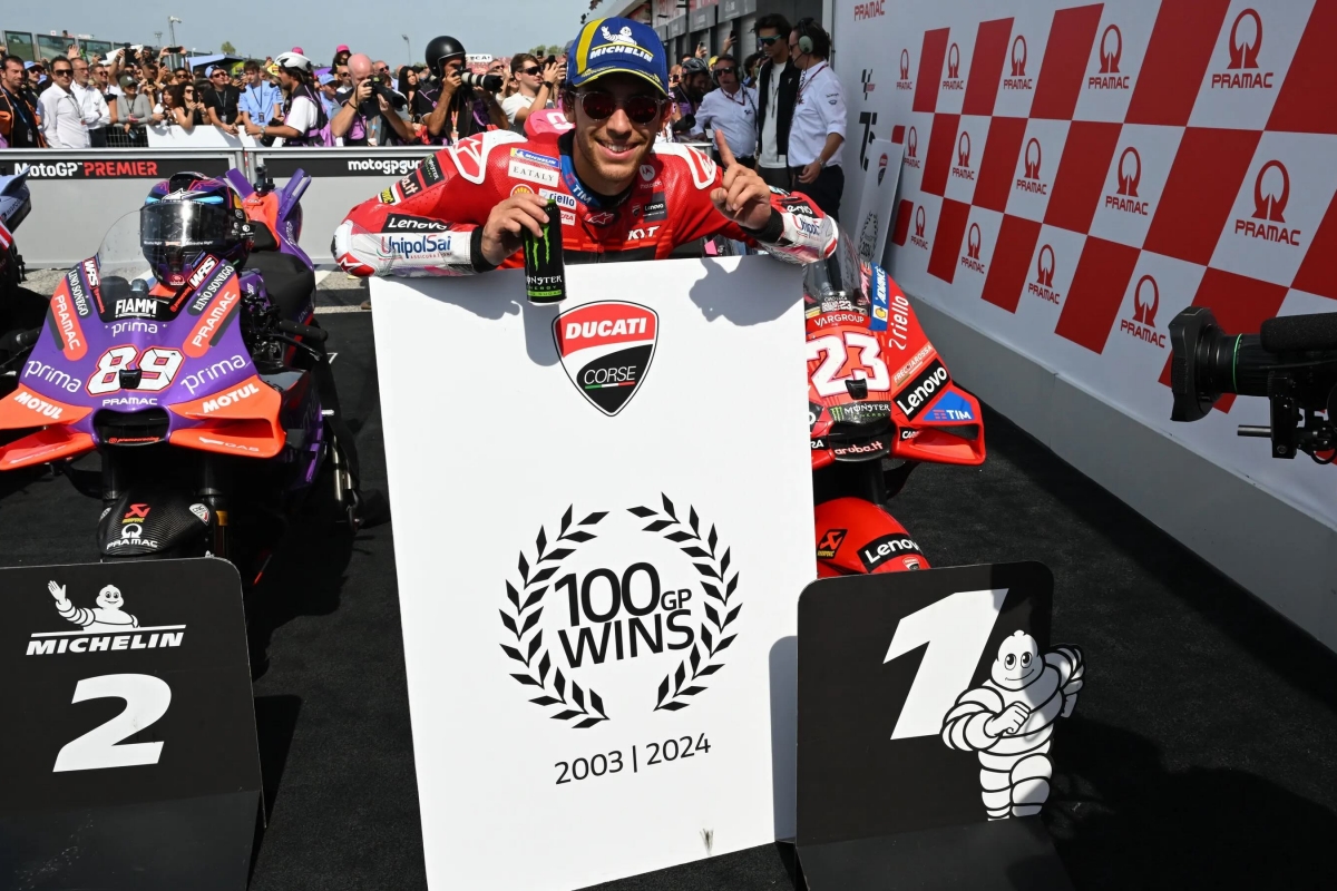 Esta foi, também, a 100.ª vitória da Ducati em Grandes Prémios, mas ficou marcada pela queda do italiano FrancescoBagnaia (Ducati), bicampeão mundial, que voltou a perder terreno na luta pelo título.