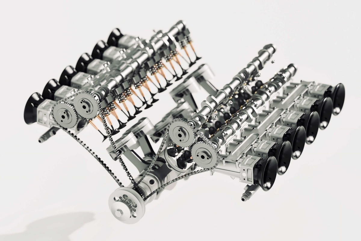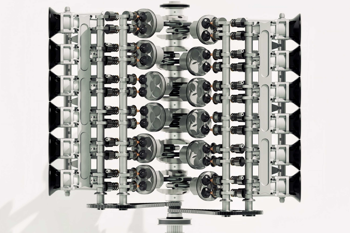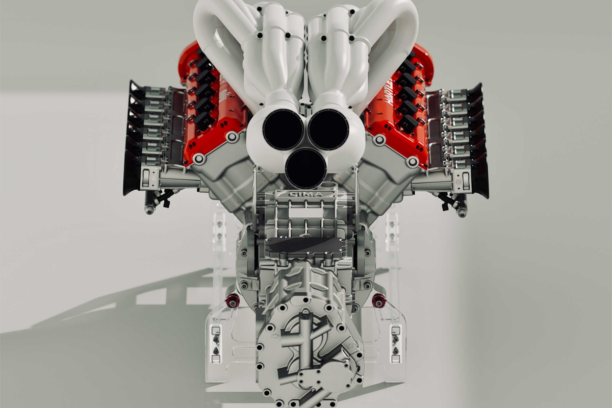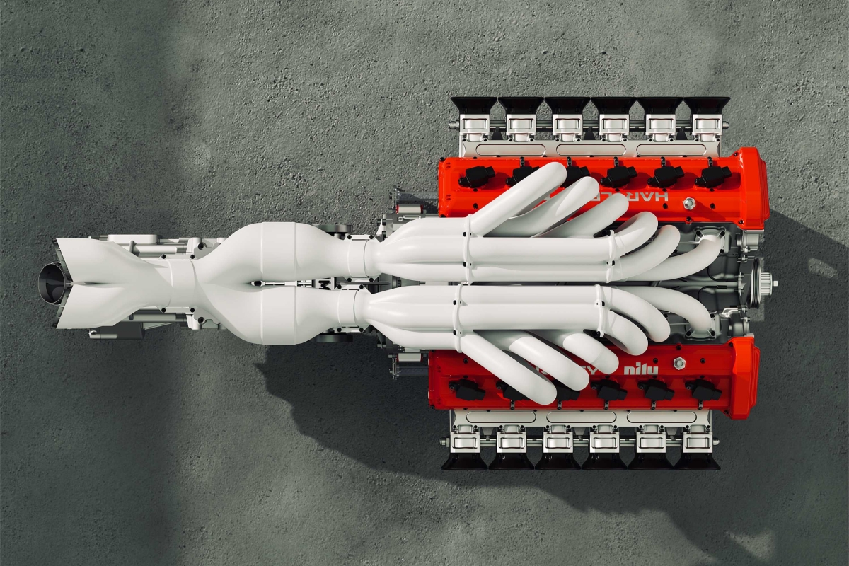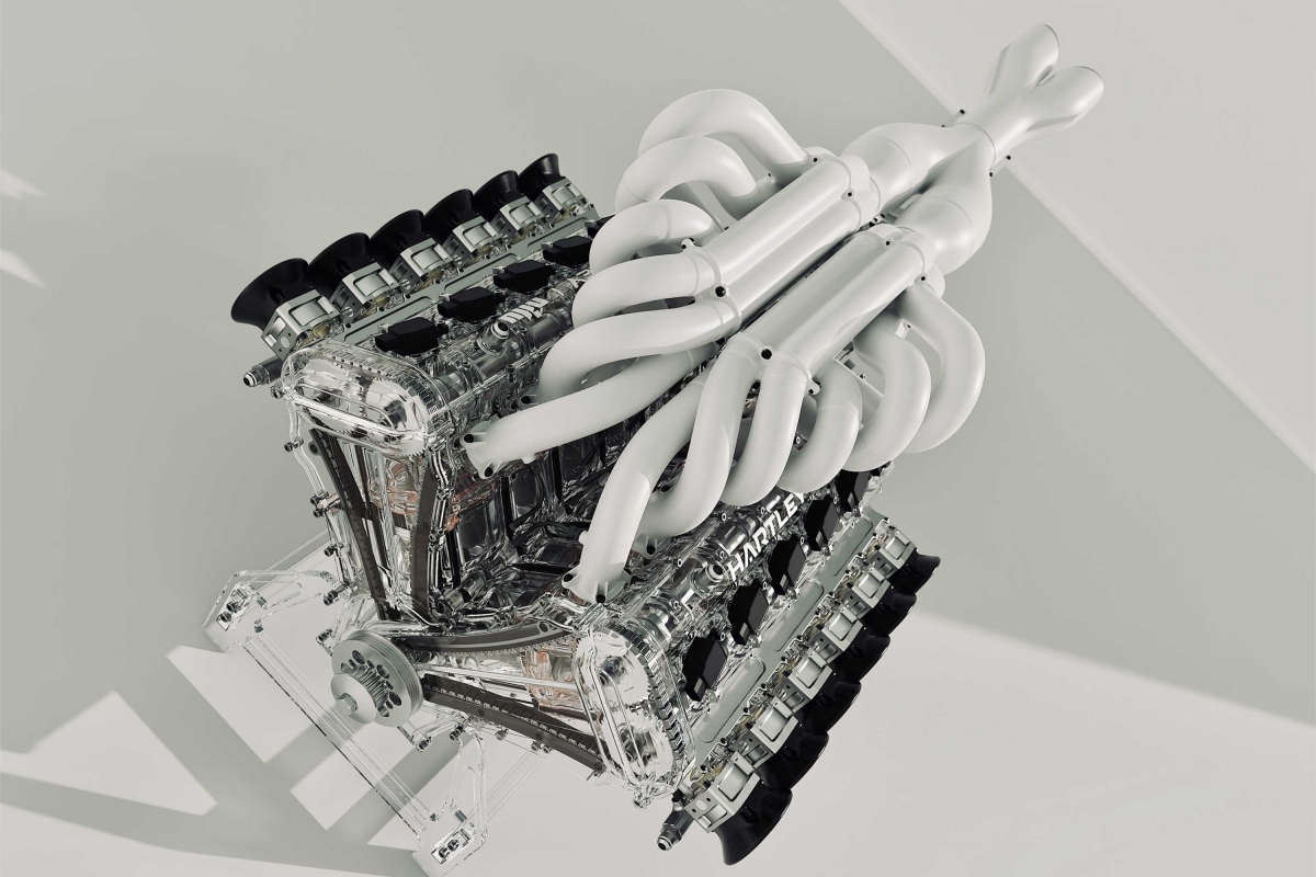 Nelson Hartley, da Hartley Engines, afirmou: “Este não é um motor OEM de outro fabricante; é um monstro personalizado, de grande diâmetro e curso curto. Tem cames agressivas, fluxo de exaustão agressivo, componentes leves e materiais exóticos. Teremos suores frios sempre que ligarmos este V12.”