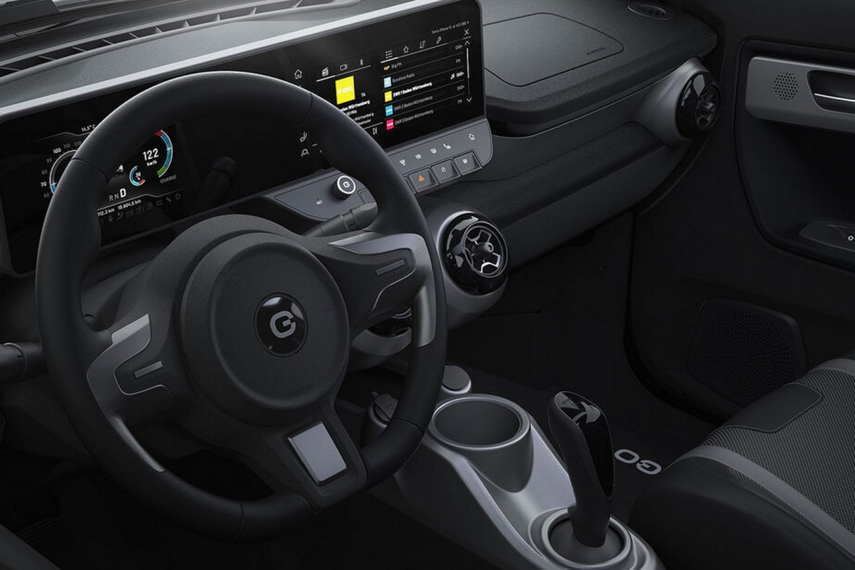 No habitáculo para quatro ocupantes, a possibilidade escolher bancos revestidos em pele vegan. Já os painéis da carroçaria podem ser facilmente trocados, função que a marca denomina de re-skinning, precisamente para poder oferecer “peles” diferentes ao longo do seu ciclo de vida.