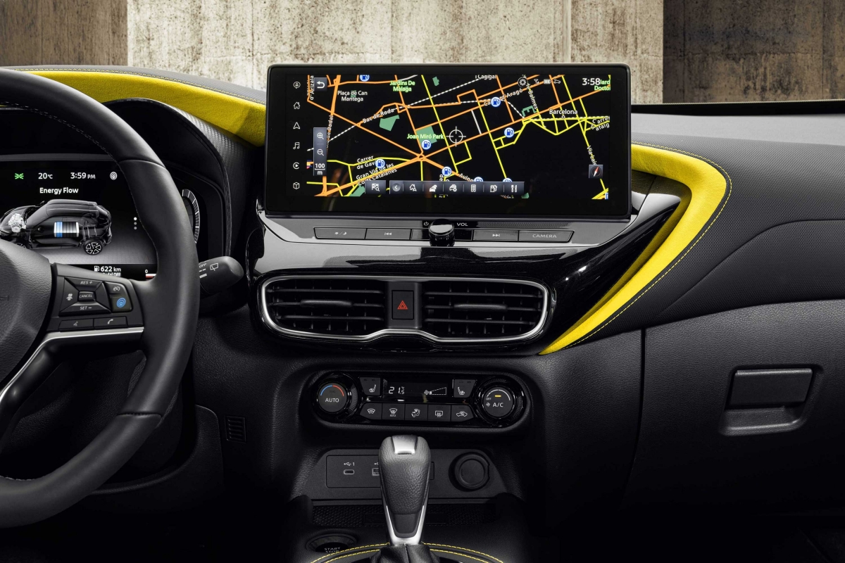 Os bancos com o apoio de cabeça integrado fornecem um apoio razoável e são confortáveis, apesar de não estarem ao nível dos do “irmão mais velho” Qashqai. A boa notícia é que têm instalados altifalantes que fazem parte do sistema de som, Bose Personal Plus com dez colunas espalhadas pelo habitáculo. O sistema de infoentretenimento e o painel de instrumentos – que passou a ser digital – são novos e contam agora com um painel de 12,3 polegadas cada um, mantendo ainda assim alguns controlos físicos como do ar-condicionado por debaixo do ecrã central. Tem suporte para Android Auto e Apple Carplay e funciona sem fios.