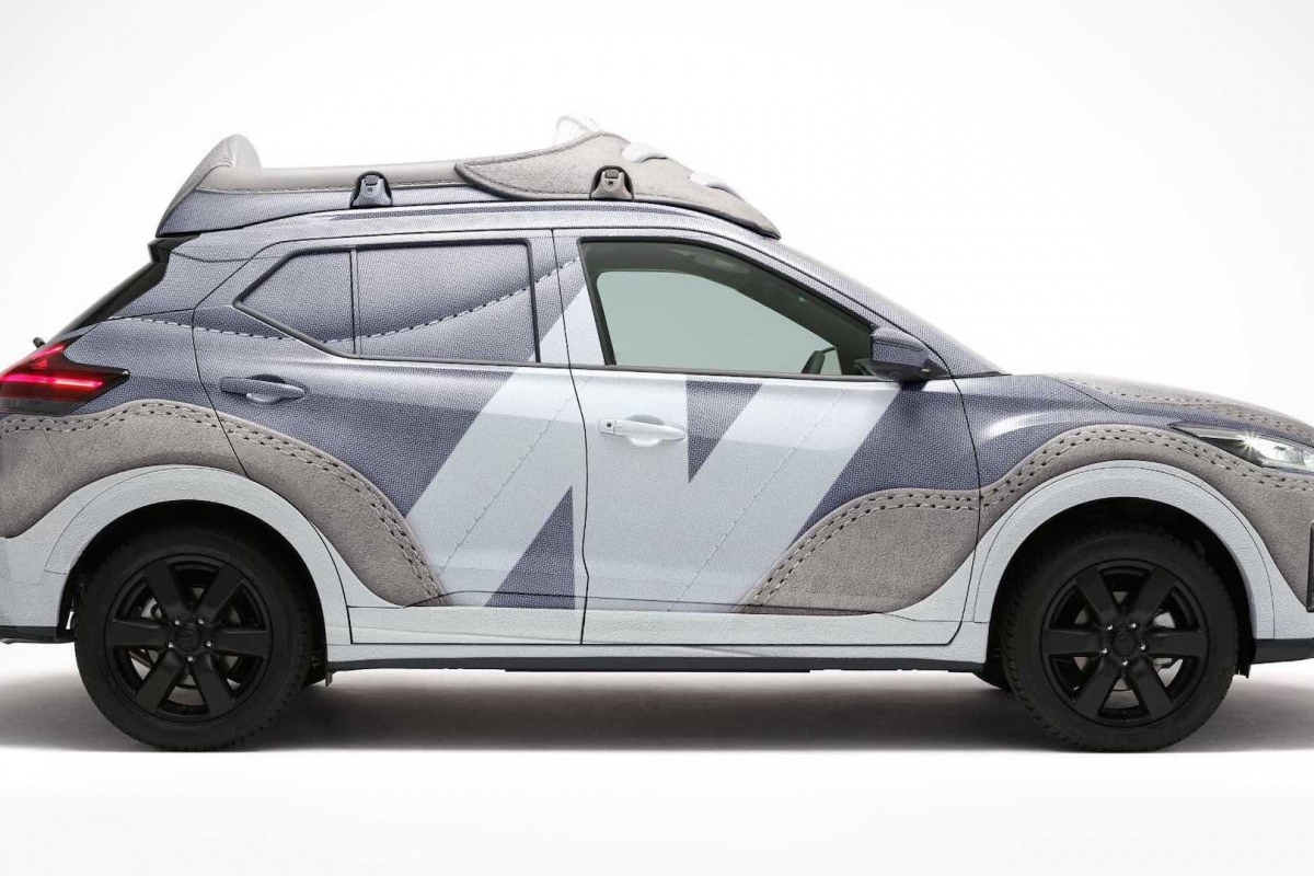 A transformação foi conseguida com recurso à aplicação de materiais com variadas texturas, incluindo a camurça e a sola branca que representam o icónico modelo da New Balance em todos os seus pormenores. Até no tejadilho se pode ver representada a “orelha” que envolve o peito do pé, e os atacadores brancos no capô do crossover.