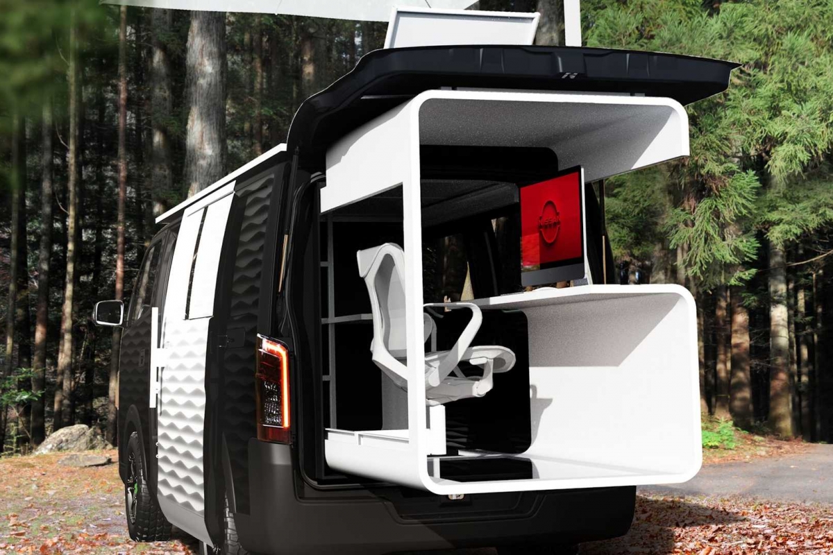 Chama-se Office Pod e é uma das propostas que a Nissan levou ao ‘Tokyo Auto Salon’, baseado no modelo NV350 Caravan, mas adaptado para integrar uma secretária e cadeira numa estrutura que desliza para fora do carro, tornando a experiência mais agradável.