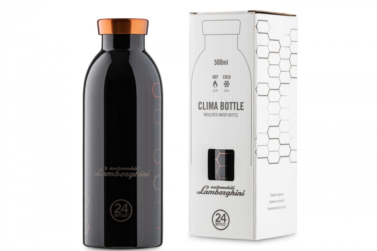 A caneca tem 350 ml capacidade e está disponível na loja online da Lamborghini por 36 euros; a Clima Bottle custa 40 euros.