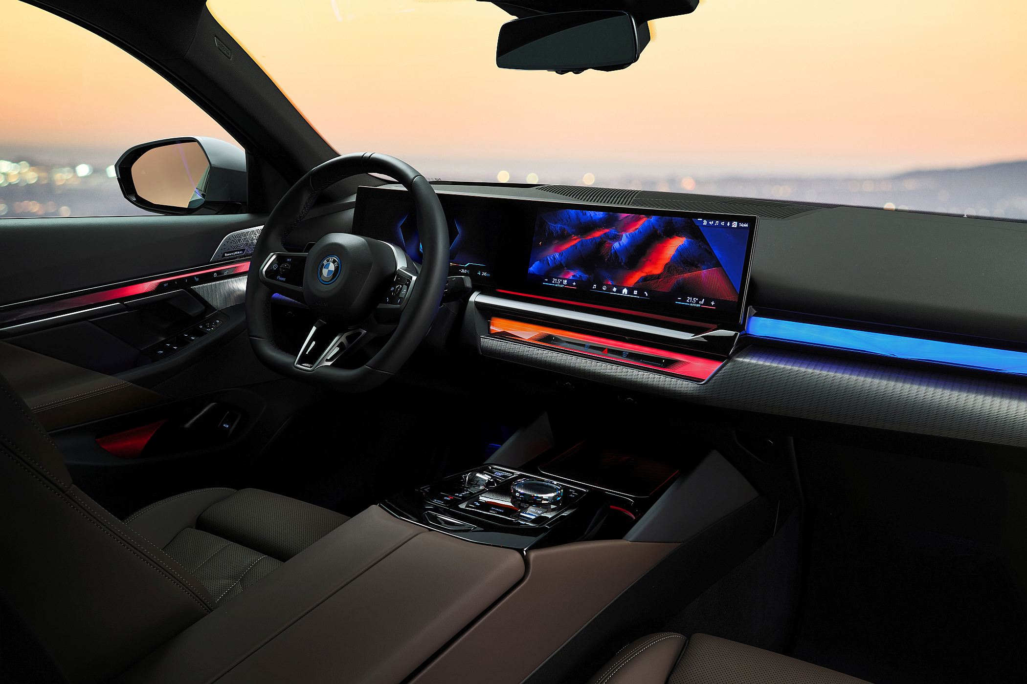 O cockpit do novo Série 5 apresenta um número reduzido de botões e de controlos, o que foi conseguido através da digitalização crescente de várias funções. Fundamental para esta ideia é a aliança entre o ecrã digital de 12.3” para o painel de instrumentos e o ecrã tátil central de 14.9”, um dos maiores disponíveis no mercado. É aqui que a grande maioria das funcionalidades do veículo são controladas, não faltando a conectividade aos sistemas Android Auto e Apple CarPlay, bem como ligação online de alta velocidade e atualizações ‘over-the-air’.