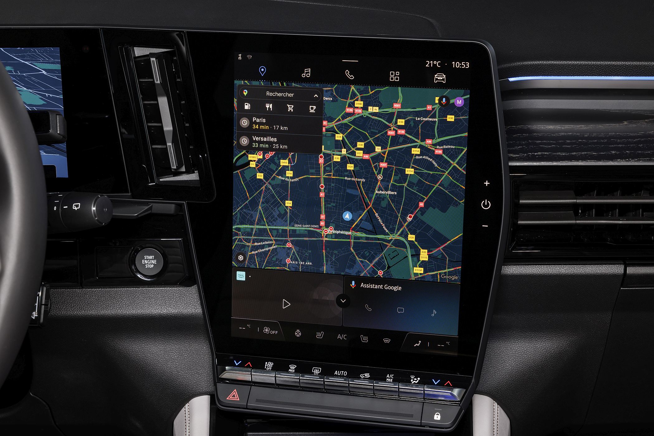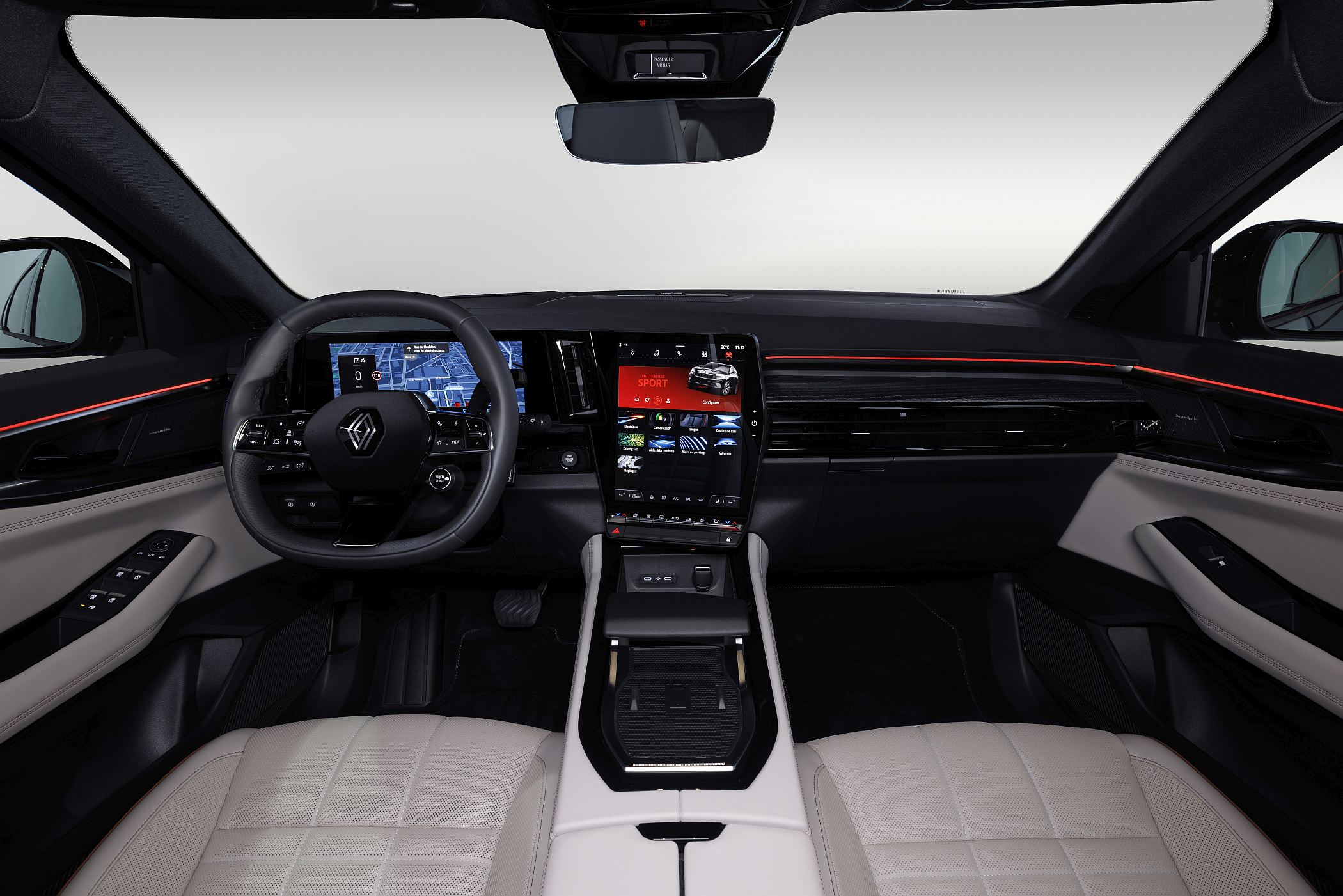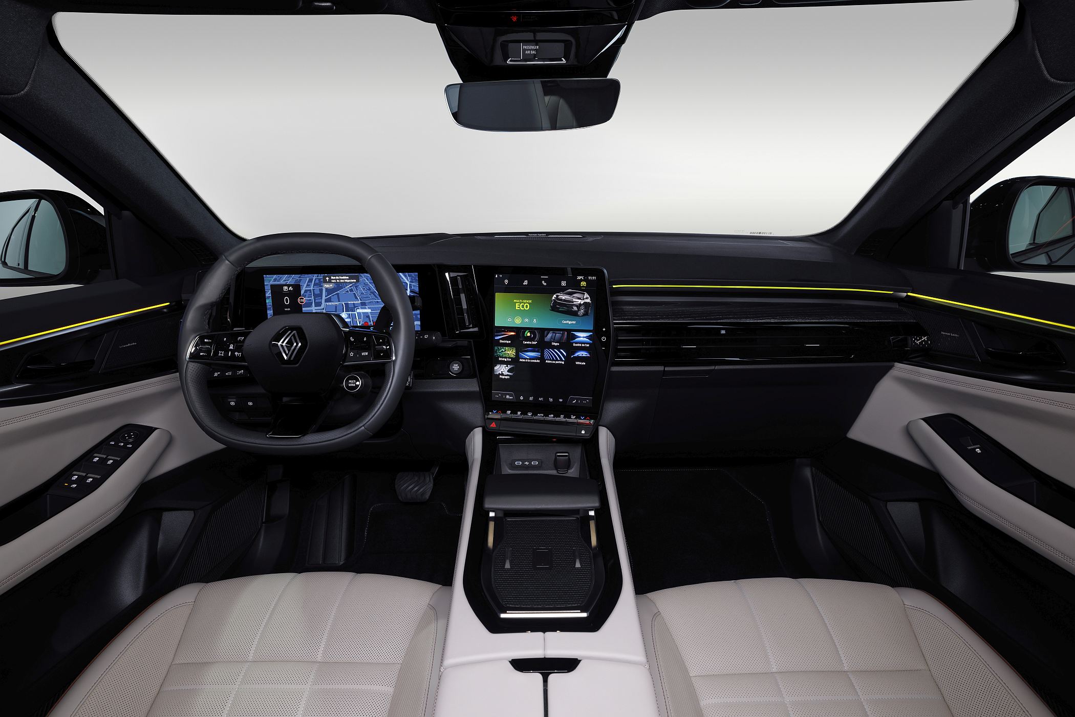 A partir do ecrã central tátil de 12” (na vertical), a Renault concentra diversas tecnologias Google, com comandos por voz (reconhecimento natural), acesso à Play Store da Google com 28 aplicações (até ao momento) compatíveis, esperando-se que este número venha a crescer, como a Amazon Music, que pode ser utilizada com música de alta qualidade em parceria com o sistema de som Harman Kardon, a EasyPark ou a Waze.
