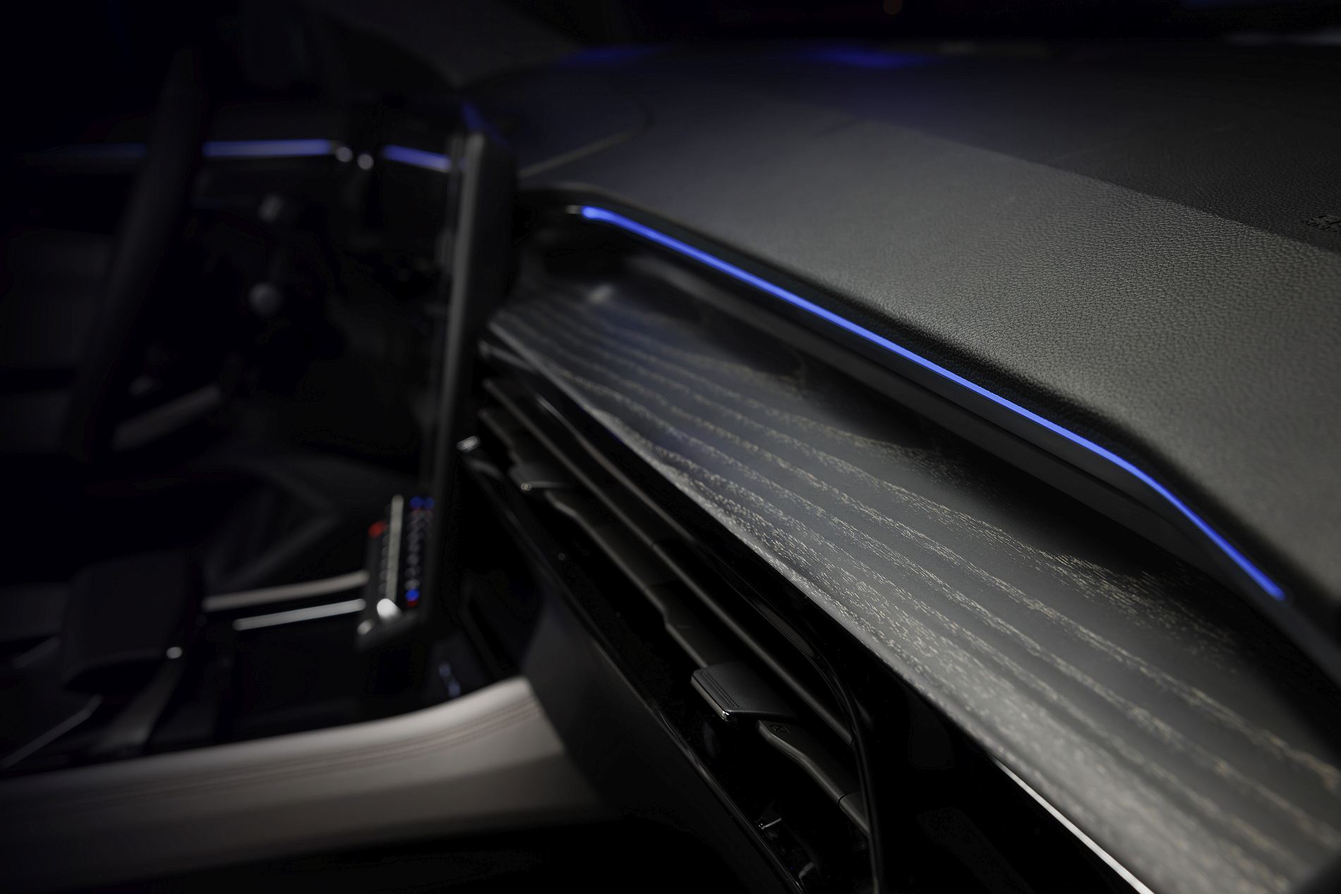 O painel de instrumentos é digital, com um ecrã de 12.3” à frente do condutor, variável no grafismo, beneficiando ainda de tecnologia head-up display de 9” no para-brisas.