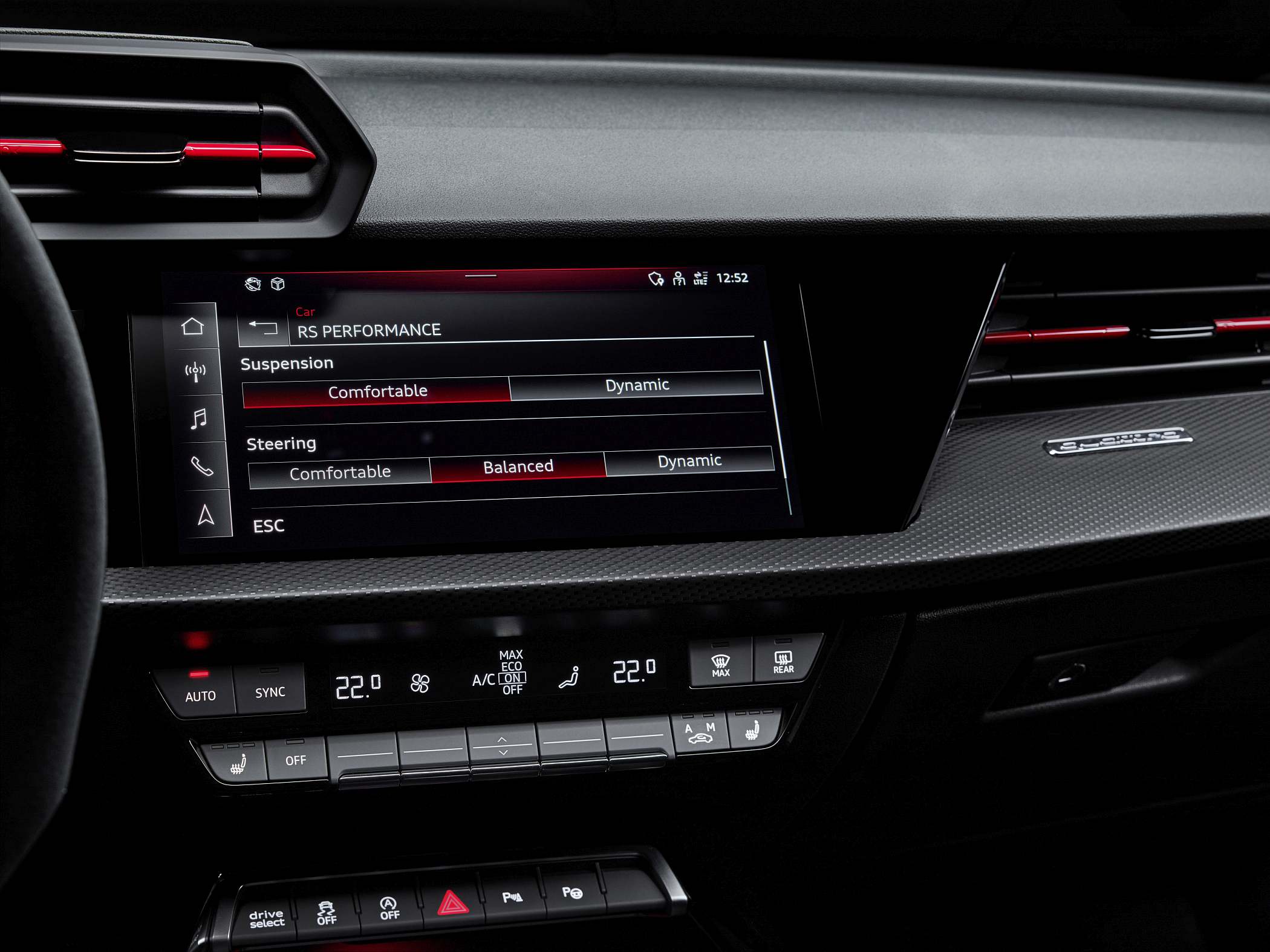O novo RS 3 conta ainda com uma nova unidade de controlo do motor que aumenta a velocidade com que todos os componentes motrizes comunicam entre si, incrementando a rapidez de resposta dos mais diversos parâmetros. O novo sistema de controlo modular de dinâmica do veículo (mVDC) compila todos os dados dos componentes relevantes para a dinâmica lateral, assegurando que interagem de forma mais precisa e rápida. O mVDC sincroniza o ‘torque splitter’, o amortecimento adaptativo e o controlo de binário para cada roda para maior precisão.