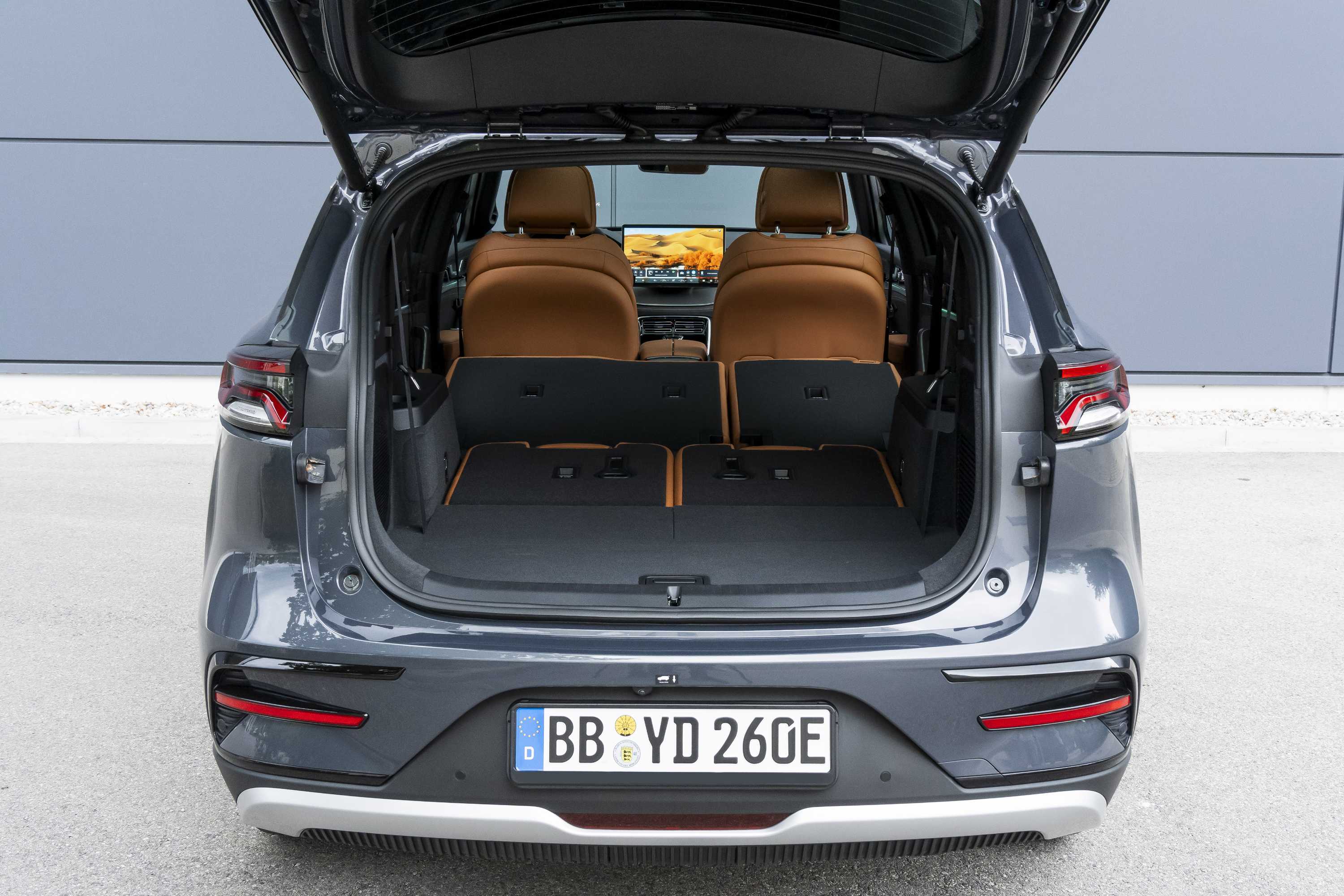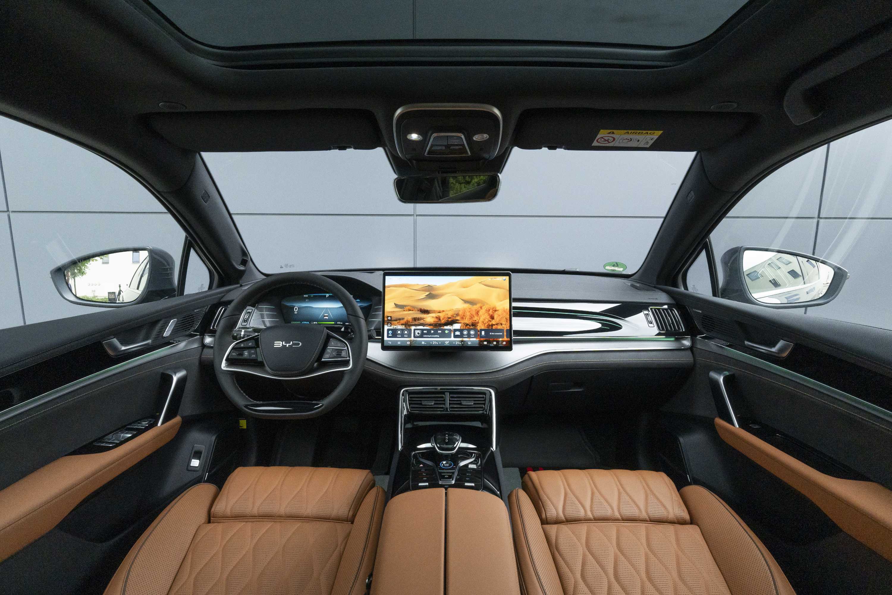 Posicionado acima do Seal U (outro SUV), o novo Tang atinge quase cinco metros de comprimento (4,97 m), medindo 1,955 metros na largura e 1,745 m na altura. A longa distância entre eixos (2,82 metros) admite uma disposição de três filas de bancos (2+3+2), com lotação máxima de até sete lugares, estando a 2.ª fila dividida em duas partes (rebatimento 60:40), enquanto a última fila de dois assentos pode ser rebaixada e arrumada no chão do habitáculo. O acesso aos últimos lugares é muito estreito, mas o espaço aí existente não é nada mau, inclusive para adultos, sendo possível negociar com os passageiros da fila central a distância para as pernas e joelhos.