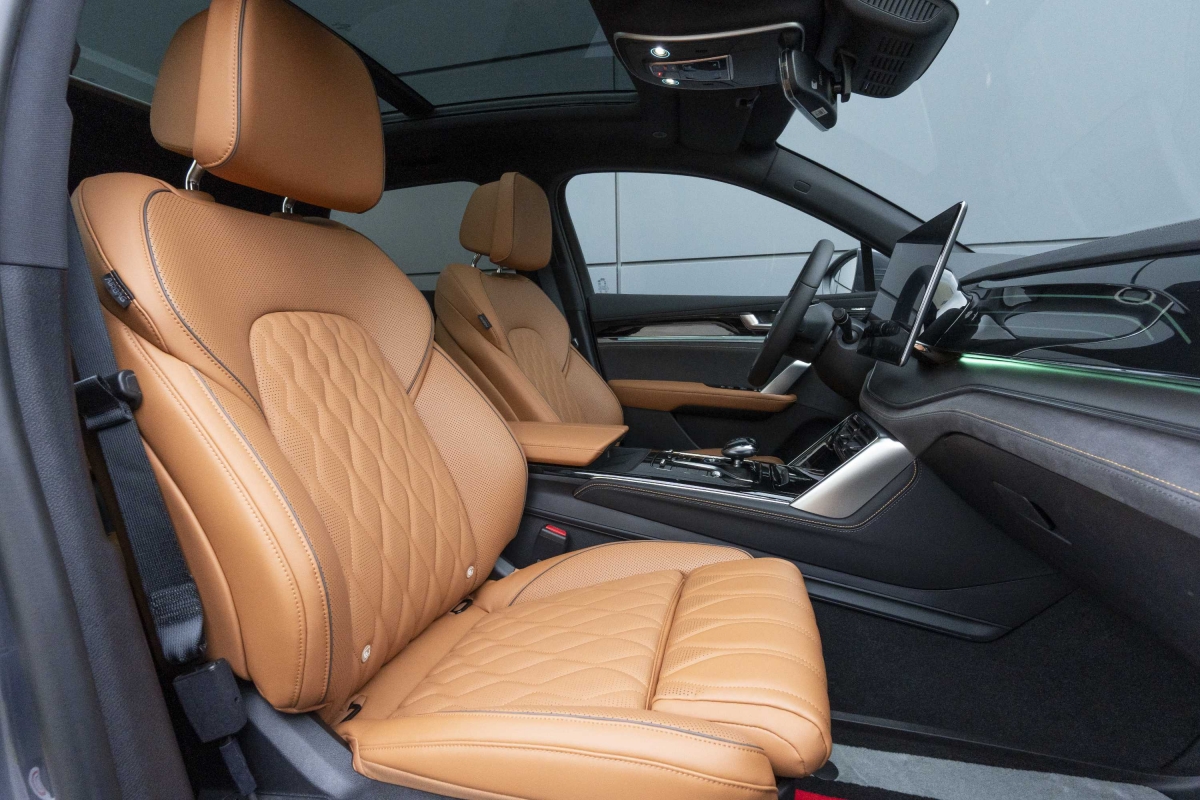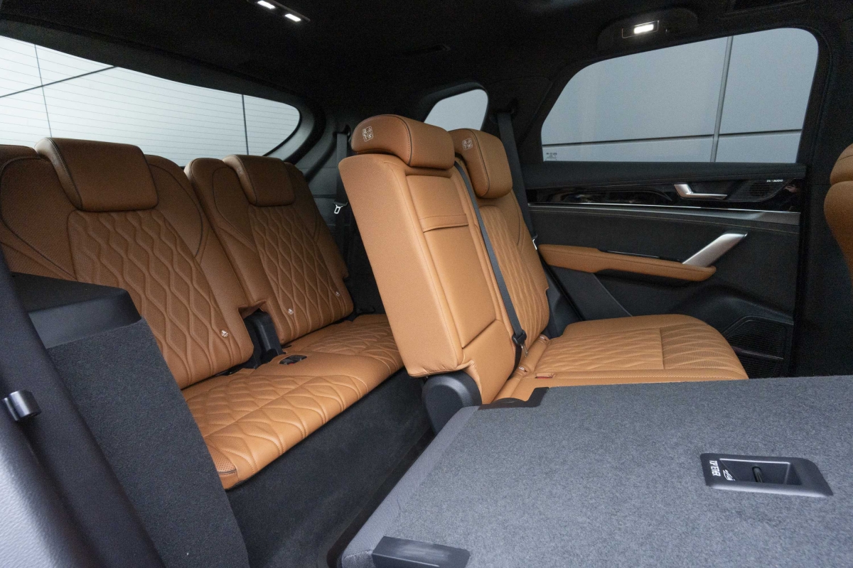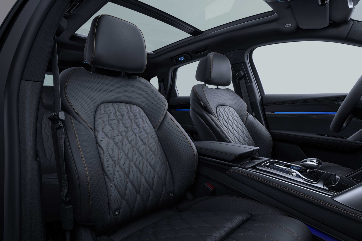 A iluminação ambiente LED admite 31 cores diferentes, enquanto o volante tem base plana, revestido a pele, aquecido e com comandos multifunções. Os bancos dianteiros são em pele Nappa (preta ou castanha), incluindo ajustes elétricos, funções de massagens, aquecimento e ventilação. O teto de abrir é panorâmico e o estore interior dedicado conta com comando elétrico. Outros detalhes: filtro de purificação do ar PM2.5, gerador de iões negativos e sistema ativo de fragrâncias.