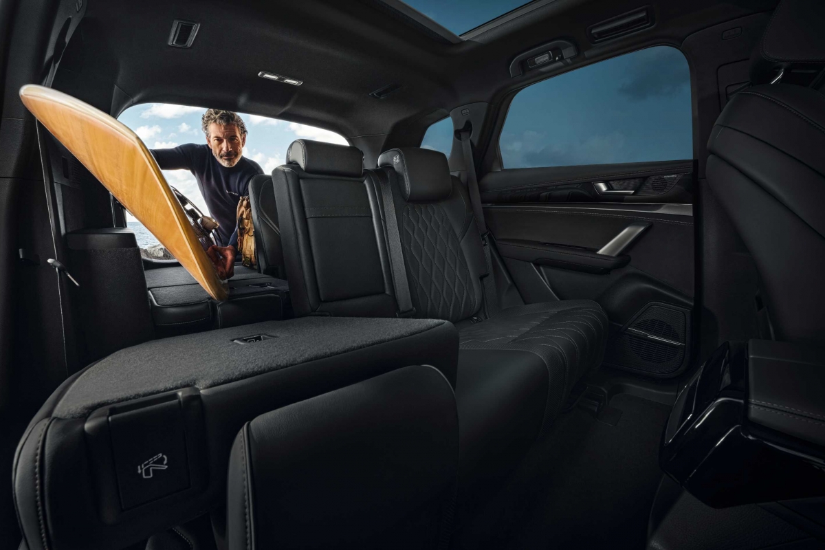 Com as três filas instaladas, a volumetria da bagageira é de 235 litros, aumentando para 940 litros na configuração de cinco lugares (medição até ao teto) e para 1655 litros no caso de se dobrarem totalmente a 2.ª e a 3.ª fila. A regulação longitudinal dos bancos da fila central também pode ser comandada eletricamente. No habitáculo há diversos locais e compartimentos para arrumação de pequenos objetos, além dos suportes para copos na consola central, assim como várias portas USB-C e base de carregamento sem fios para smartphone (até 50 W).