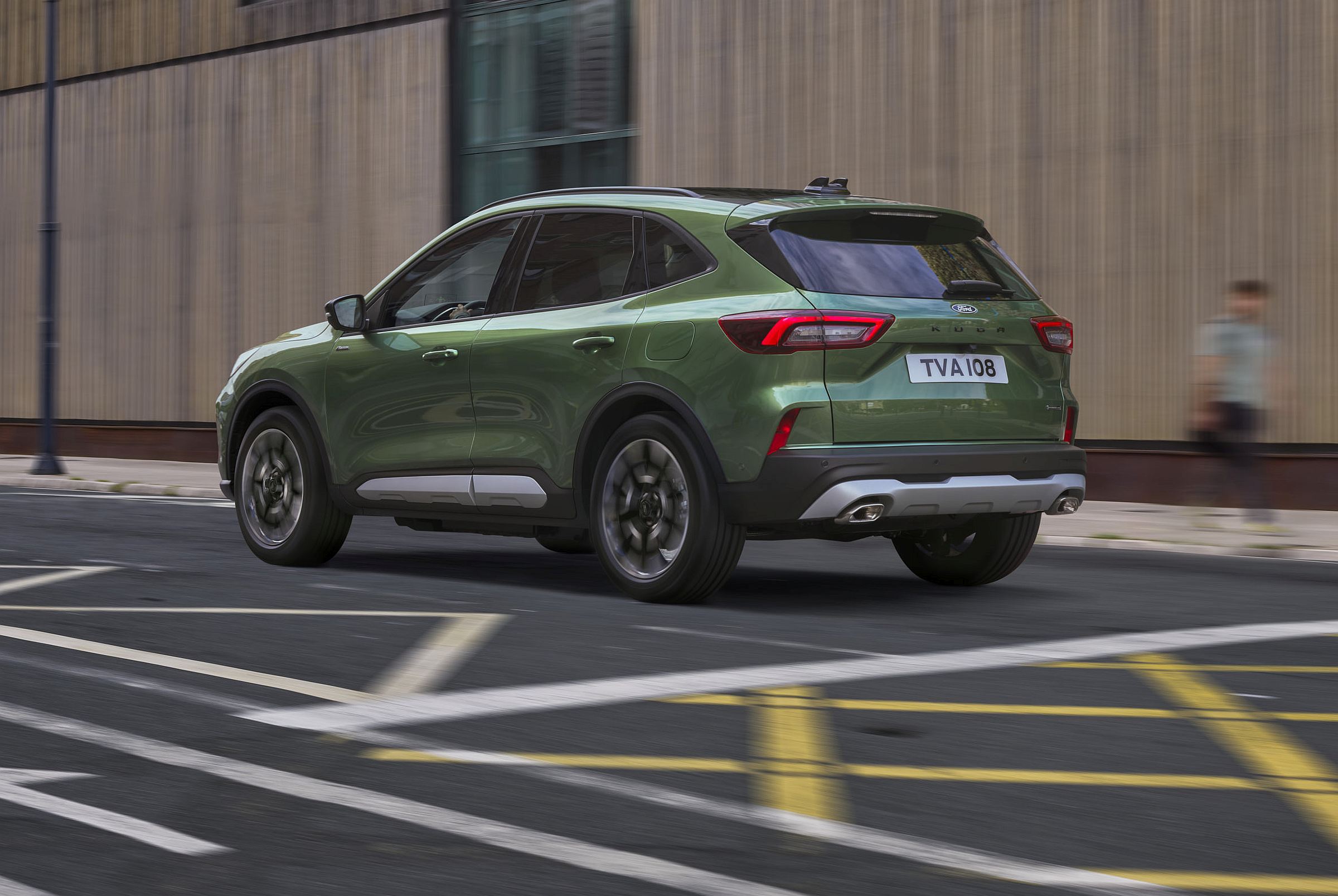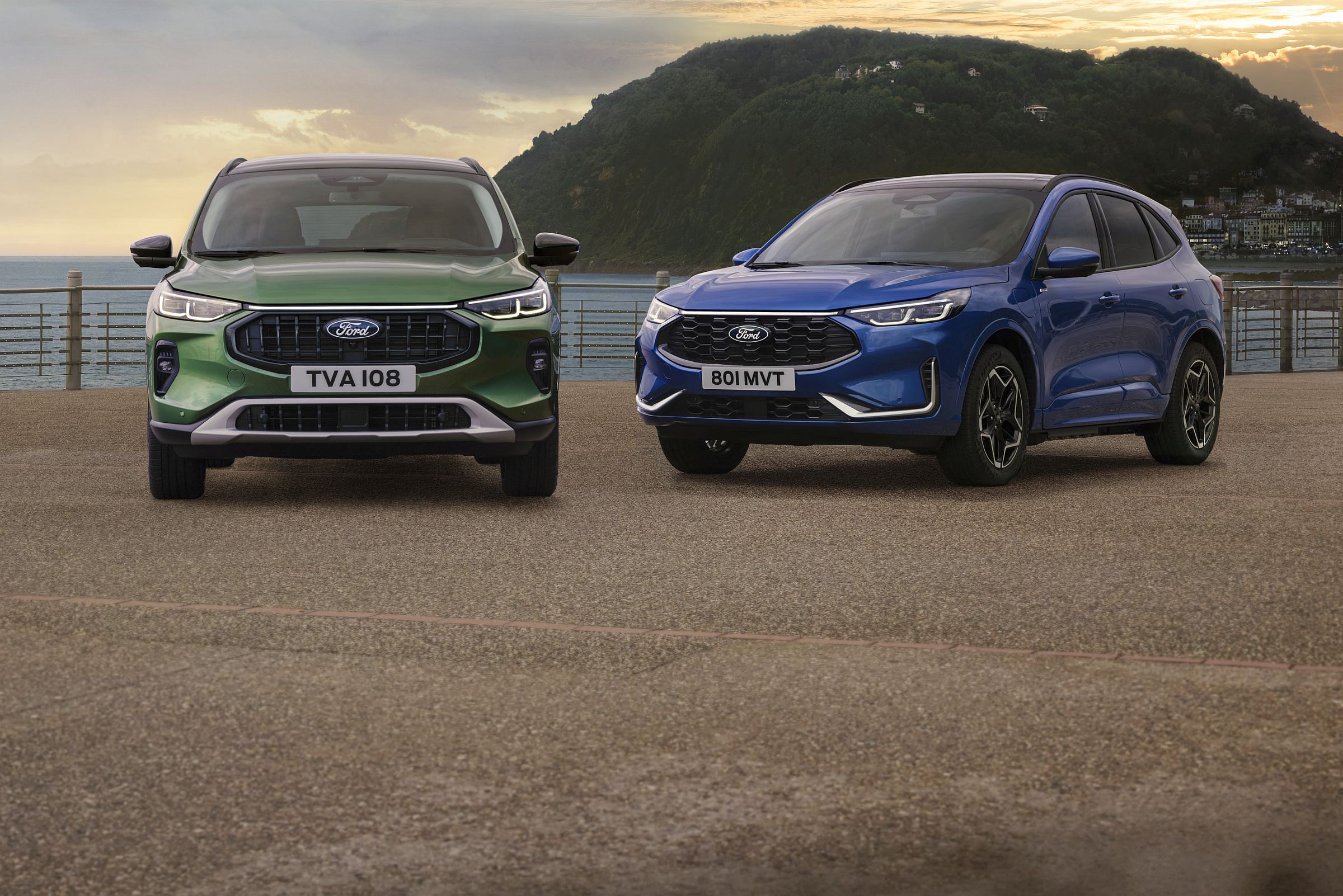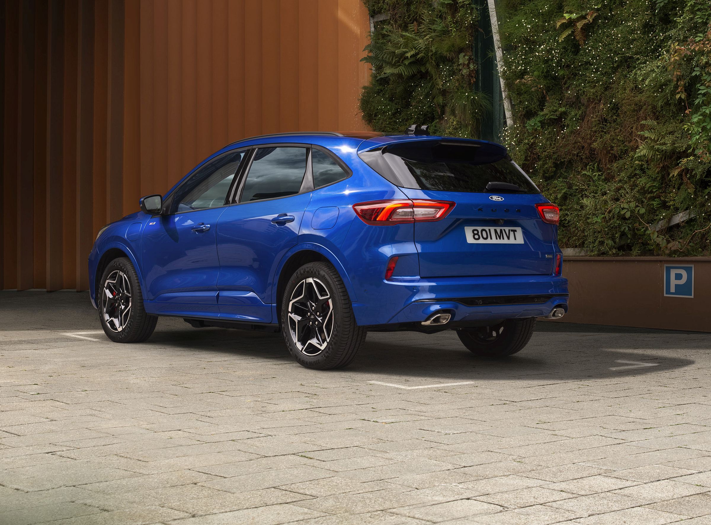 As opções de cores exteriores também foram renovadas, com a introdução das tonalidades ‘Desert Island Blue’ (azul) e ‘Bursting Green’ (verde), enquanto cinco novos designs de jantes de liga leve sublinham o novo impacto visual do Kuga.