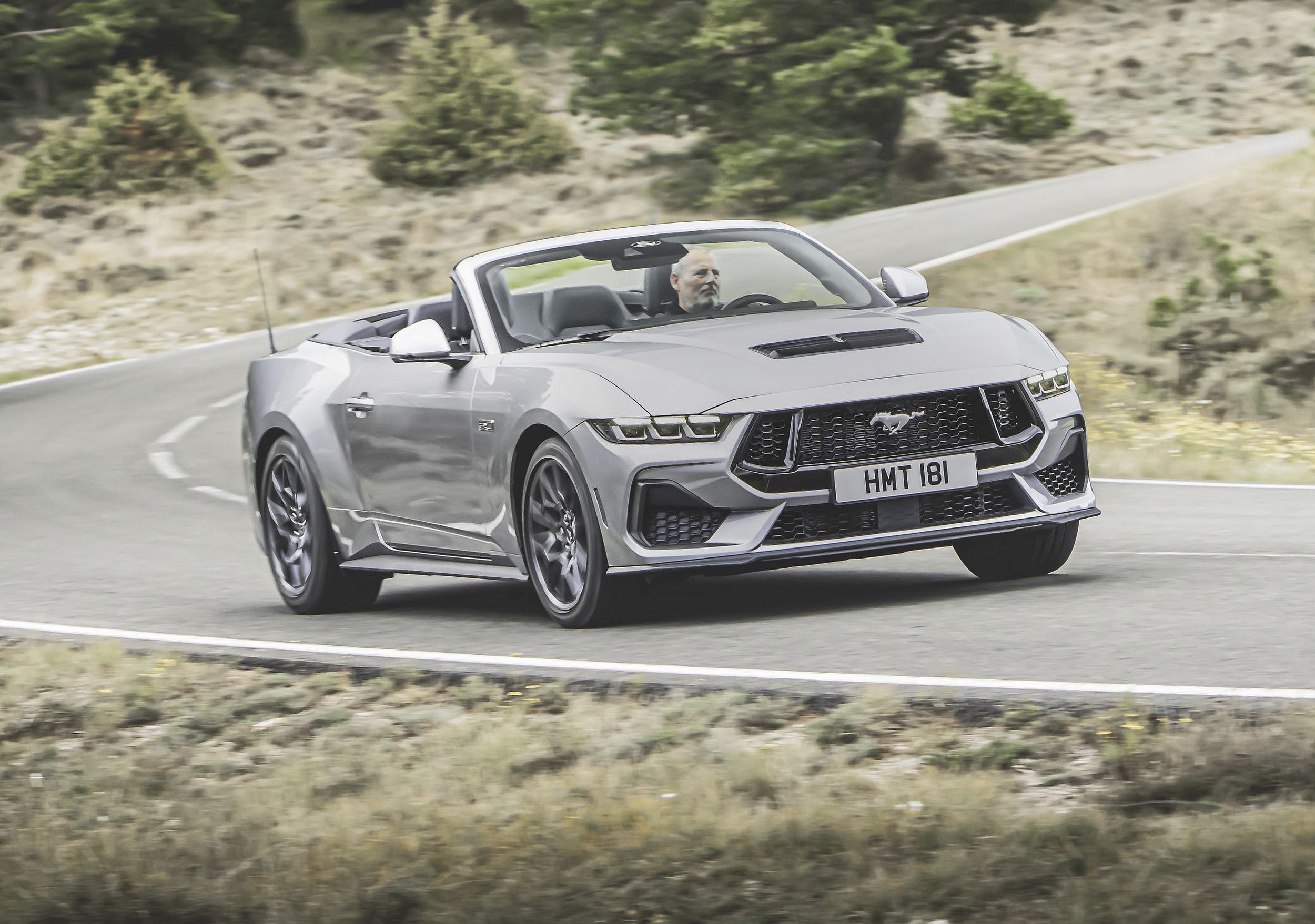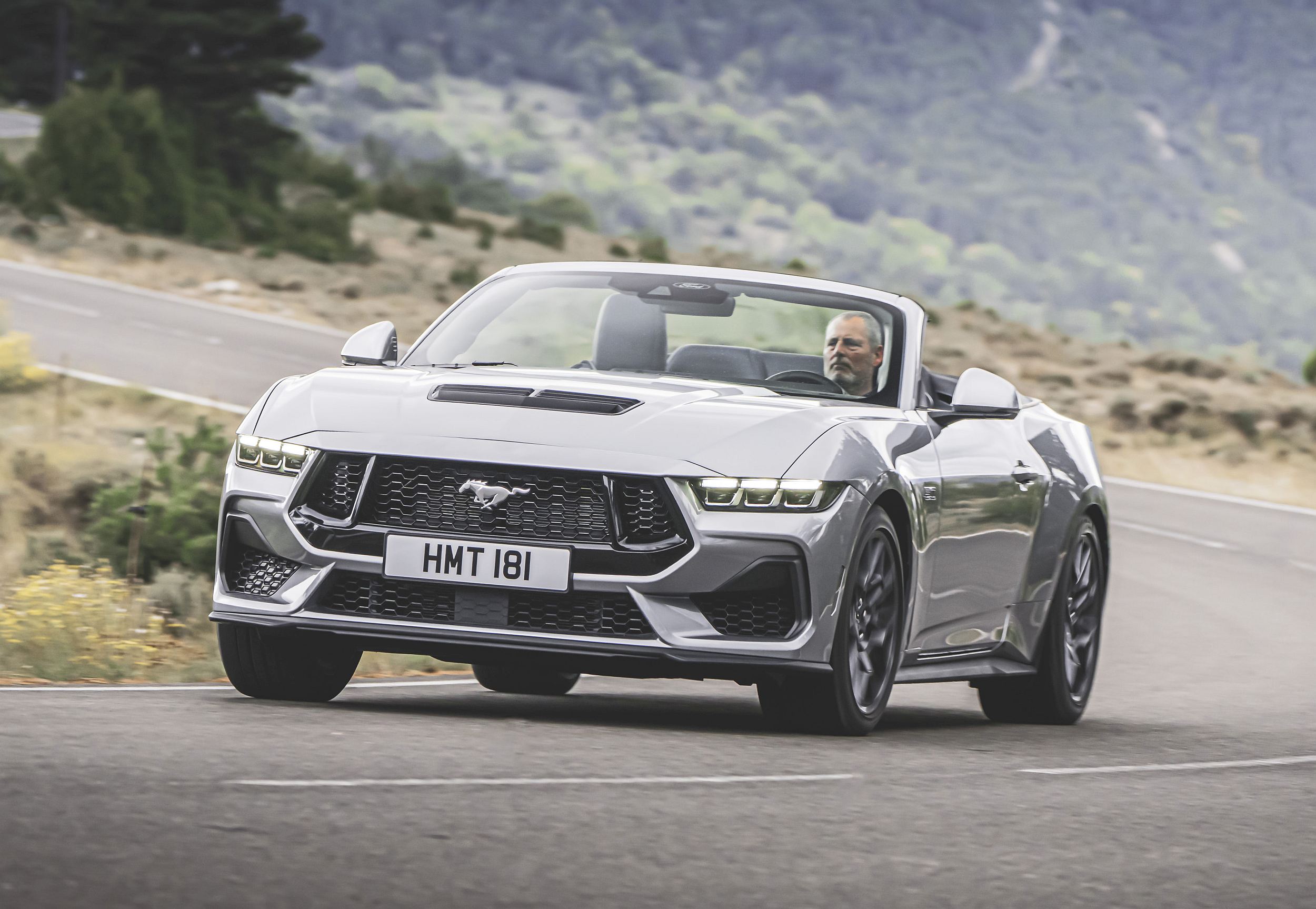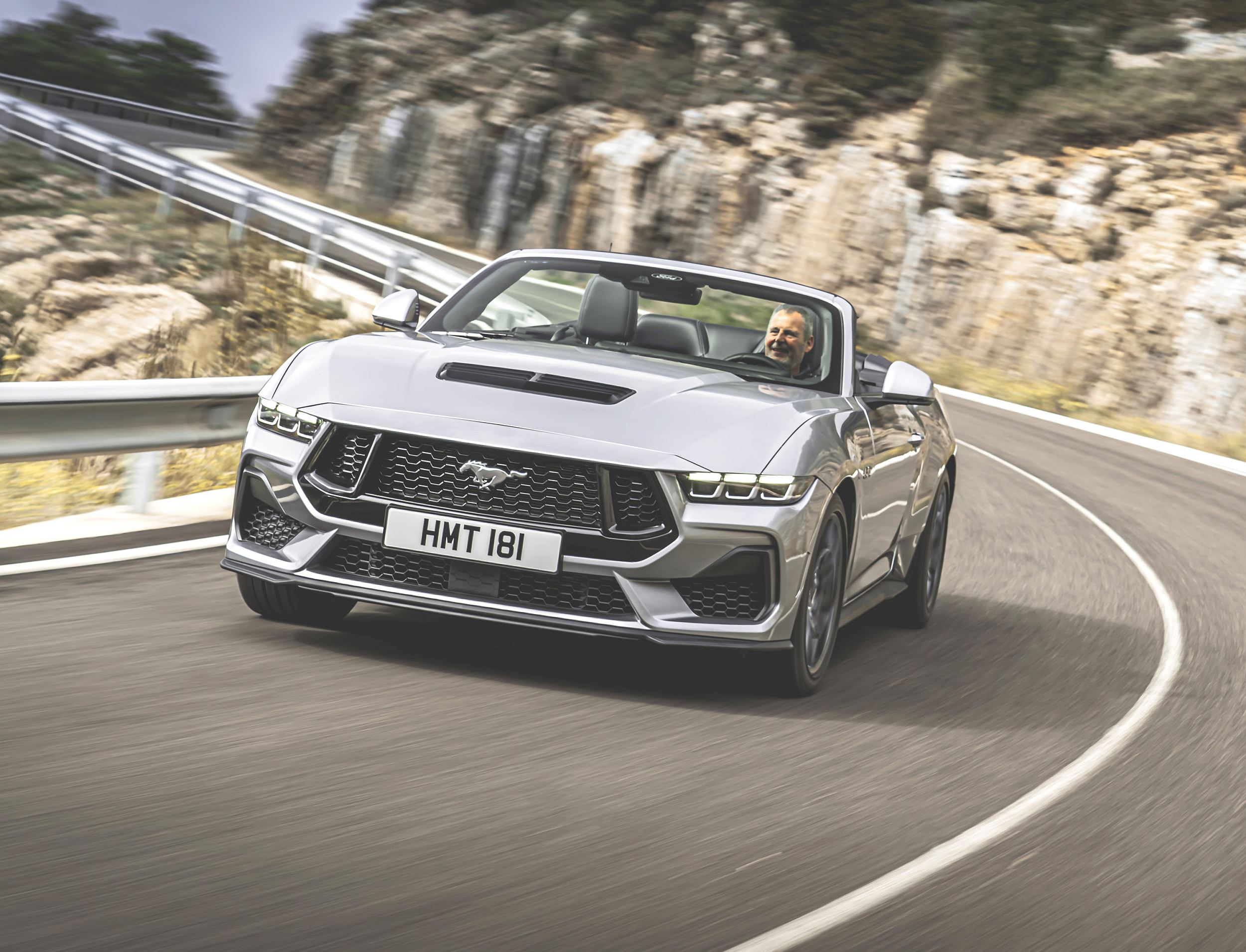 O novo Mustang – disponível como coupé ou descapotável – tem uma robusta e claramente em linha com o seu passado, marcado por seis décadas de herança. O capot esculpido e as ilhargas traseiras são a chave para uma presença musculada praticamente inalterada desde o primeiro Mustang, lançado em 1964. Um novo spoiler dianteiro e saias laterais melhoram a aerodinâmica, enquanto os LED atualizam os clássicos faróis traseiros de três barras. No caso do Mustang descapotável, o tejadilho totalmente forrado e isolado pode ser recolhido ou recolocado em oito segundos, mantendo a funcionalidade da bagageira, que pode acomodar dois sacos de golfe.