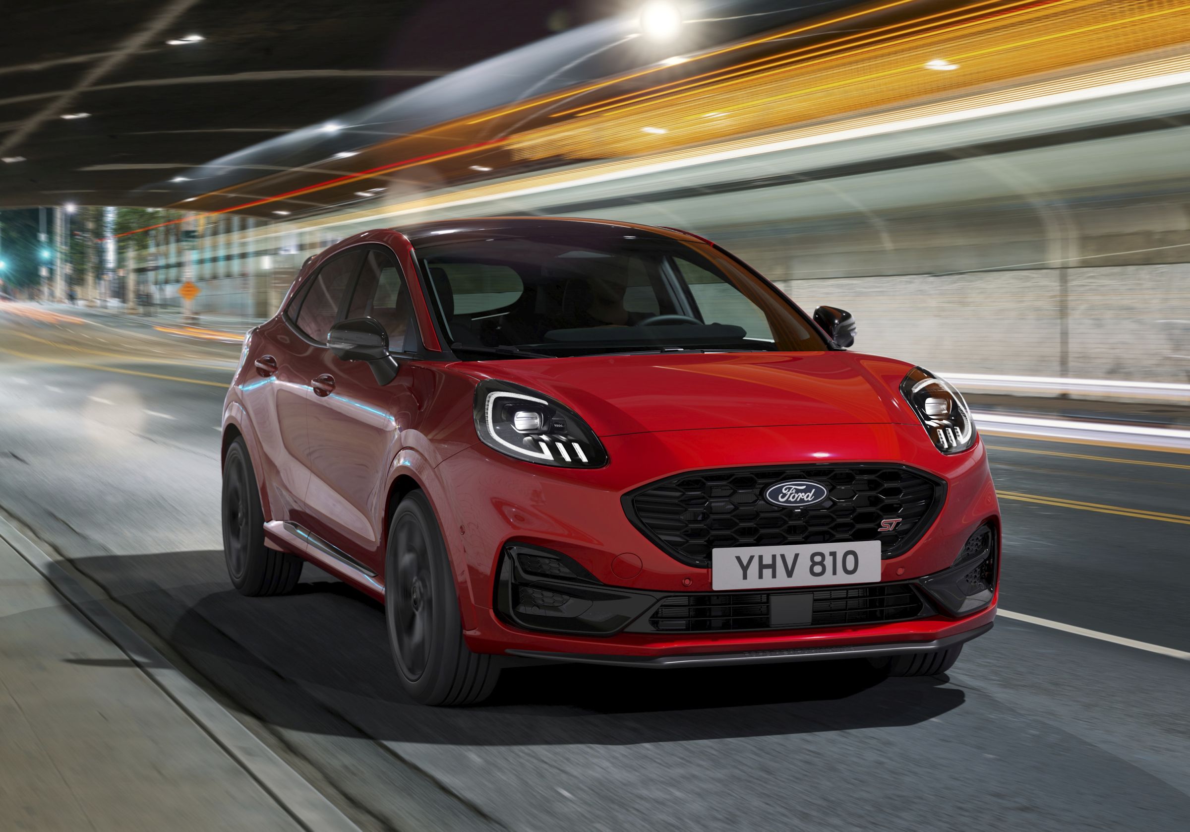 Este modelo mais dinâmico sobressai pela ambição de entrosamento superior, com patilhas atrás do volante para o comando da caixa de velocidades, mas também revela faceta mais agressiva no exterior. Na dianteira, merece destaque o splitter Ford Performance que, face à versão convencional do novo Puma, aumenta a força descendente na dianteira em quase 80% bem como uma grelha dianteira superior e inferior com a assinatura ST, para maximizar a capacidade de refrigeração e a eficiência do motor.
