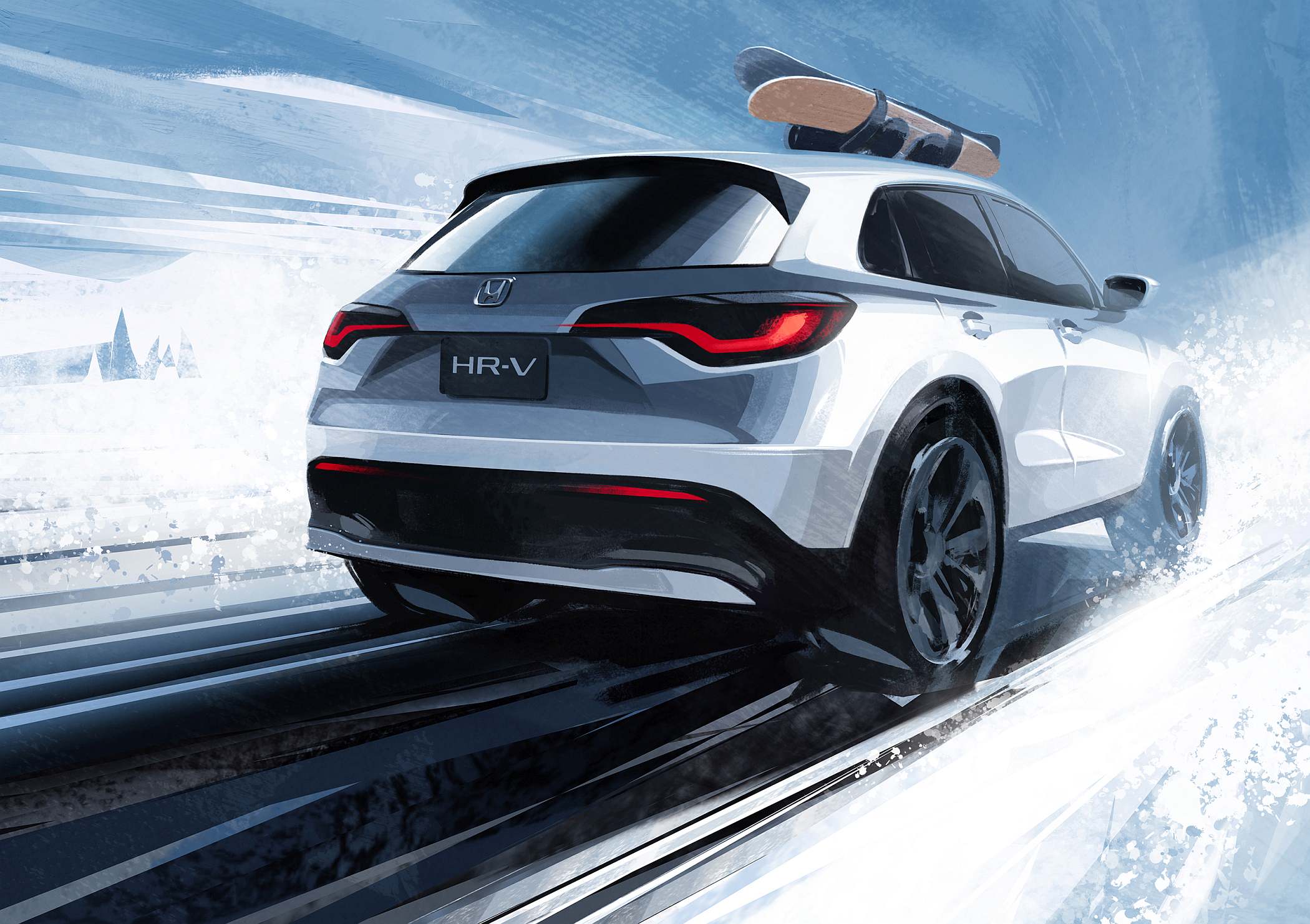 Com a marca japonesa a apelidar este ano de ‘Ano dos Crossovers’, os primeiros esboços revelam uma secção dianteira com estilo agressivo, destacando-se pela grelha central de dimensões mais amplas, a que se juntam tomadas de ar mais amplas na secção inferior e grupos óticos mais esguios sem ligação com a grelha superior. Na traseira, os farolins são mais quadrados com desenho inspirado no do novo Civic de 11ª geração.