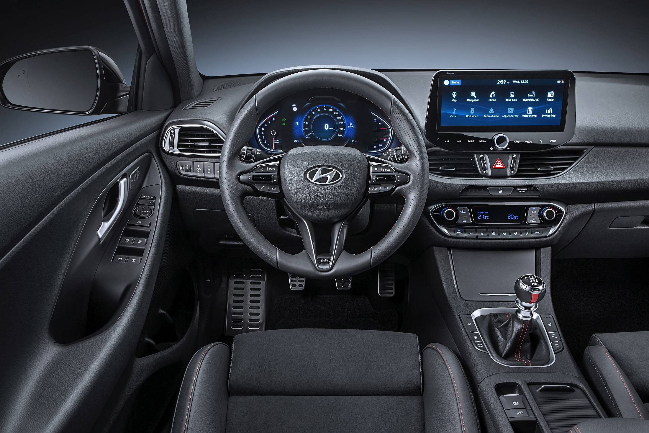 No interior, a Hyundai reformulou ligeiramente o i30, dotando-o de materiais melhorados nalguns aspetos, mas a aposta passou pelo reforço da tecnologia. O destaque está no engrandecimento do ecrã tátil central para as 10.25”, servindo de base ao sistema BlueLink, sendo mesmo o primeiro modelo da marca a dispor deste tipo de conectividade – que permite outra convivência com o automóvel a partir do smartphone. Entre os exemplos de funcionalidades estão a navegação com trânsito em tempo real (incluindo preços de estações de serviço e estacionamentos), reconhecimento de voz, informações de estado do veículo (luzes acesas ou portas abertas), notificações de alarme, diagnóstico remoto (com estado da pressão dos pneus ou airbags) e informação de condução.