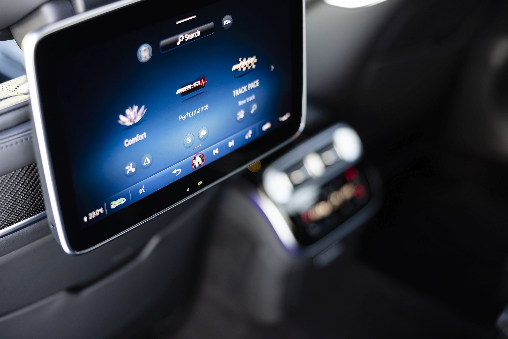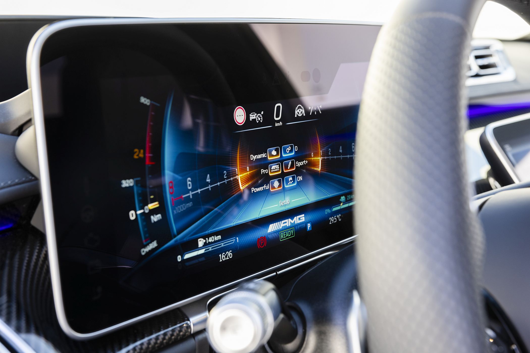 O sistema de infoentretenimiento MBUX também inclui vários ecrãs e funções específicas da AMG, como a visualização do desempenho do modo híbrido ou registo de tempos por volta e de dados de telemetria. Adicionalmente, o painel de instrumentos digital também tem visualizações específicas, com o head-up display a ser oferecido adicionalmente.