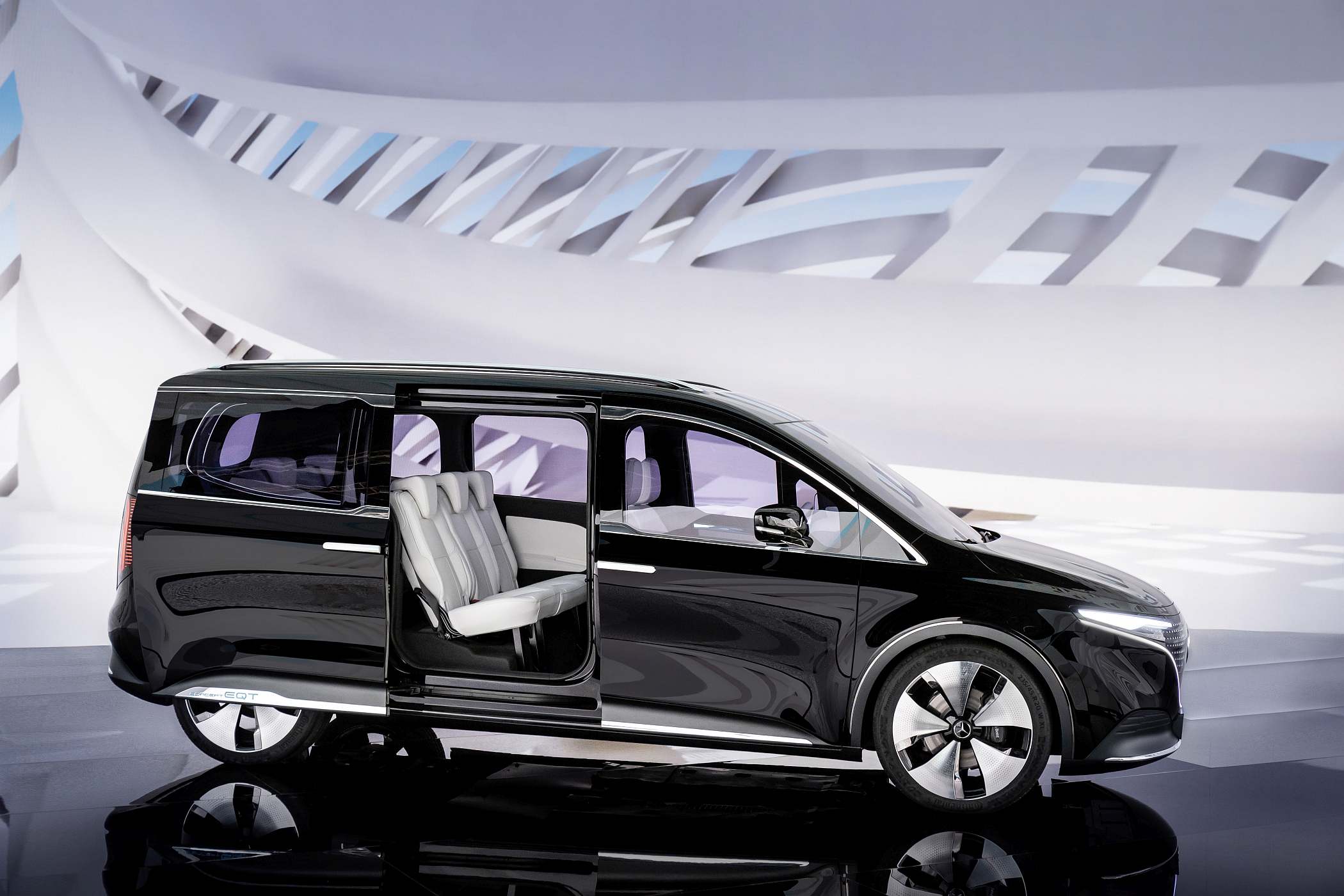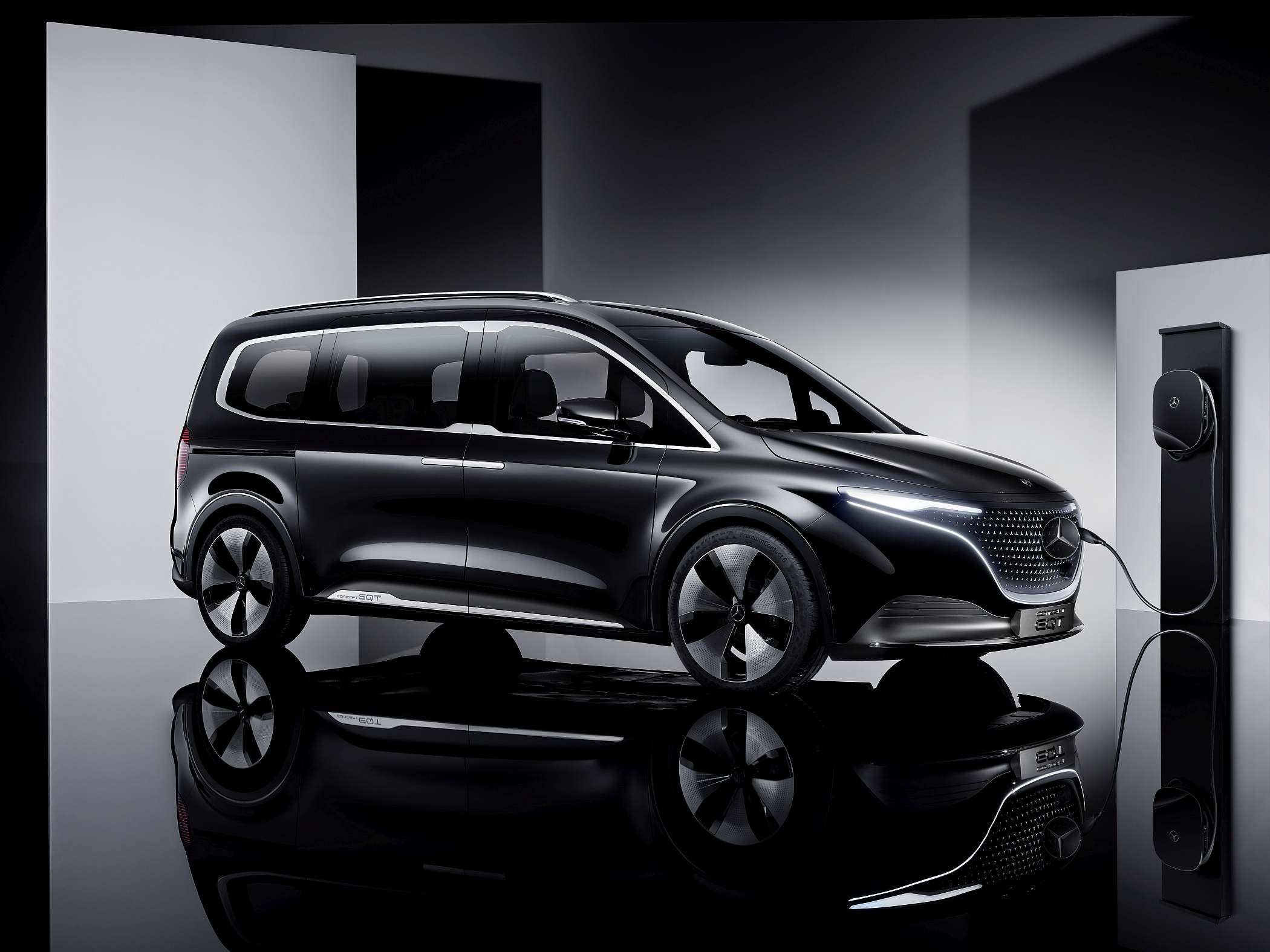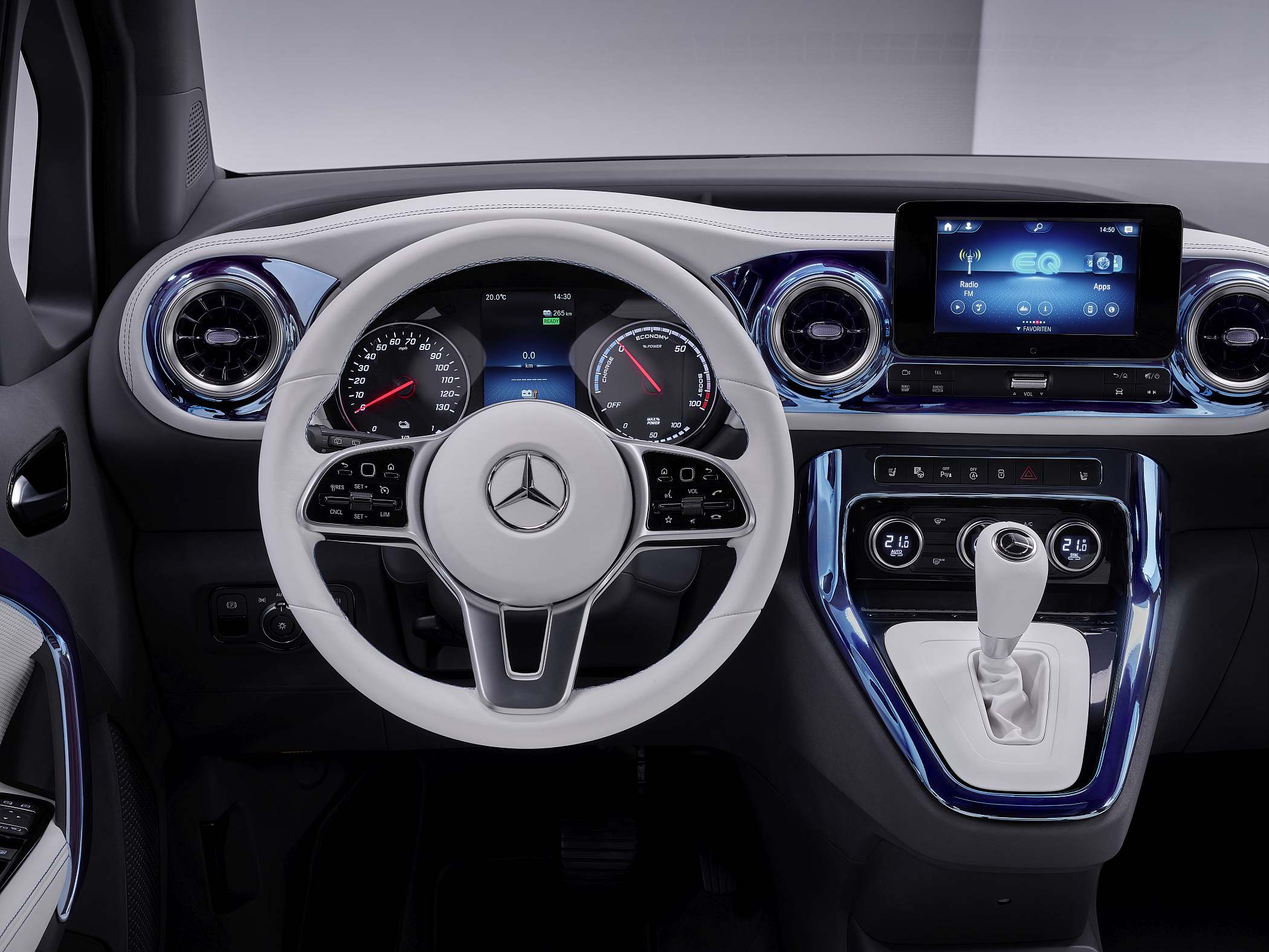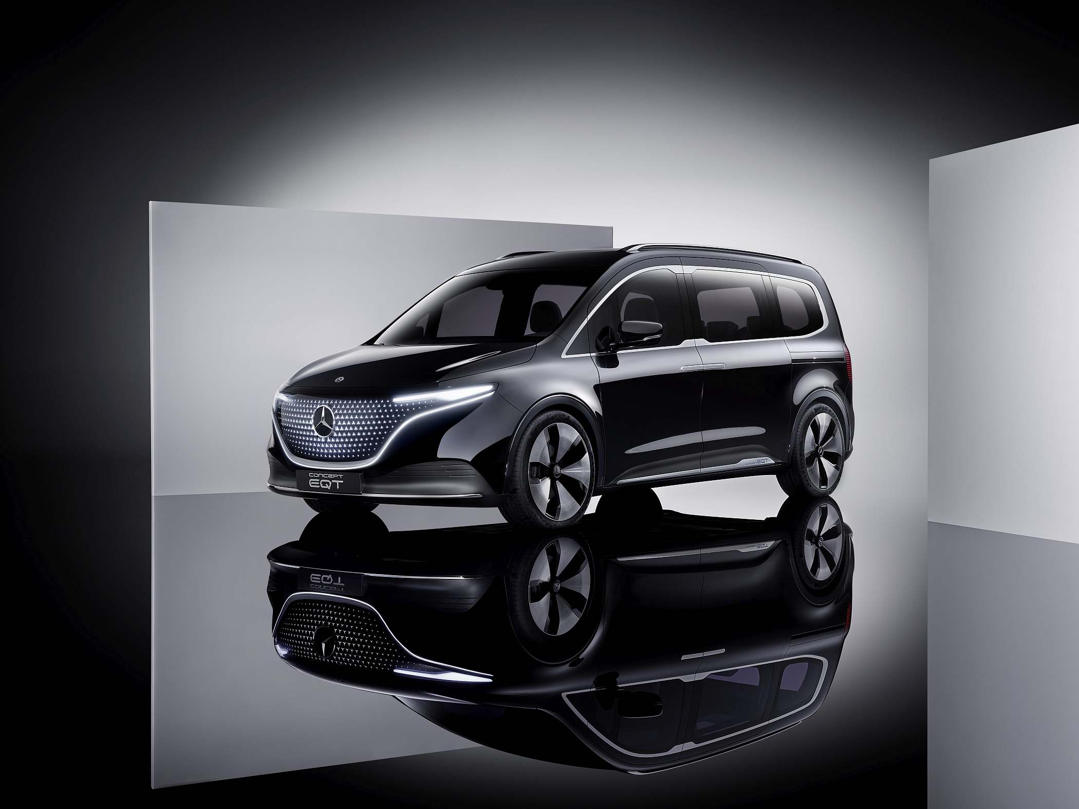 A versão de passageiros irá nascer sob a insígnia da EQ, submarca elétrica da Mercedes-Benz, devendo aproximar-se em filosofia e estilo do EQT Concept revelado anteriormente (em baixo) e que prefigurava uma carrinha ‘multifunções’ de aspeto mais irreverente e jovial.