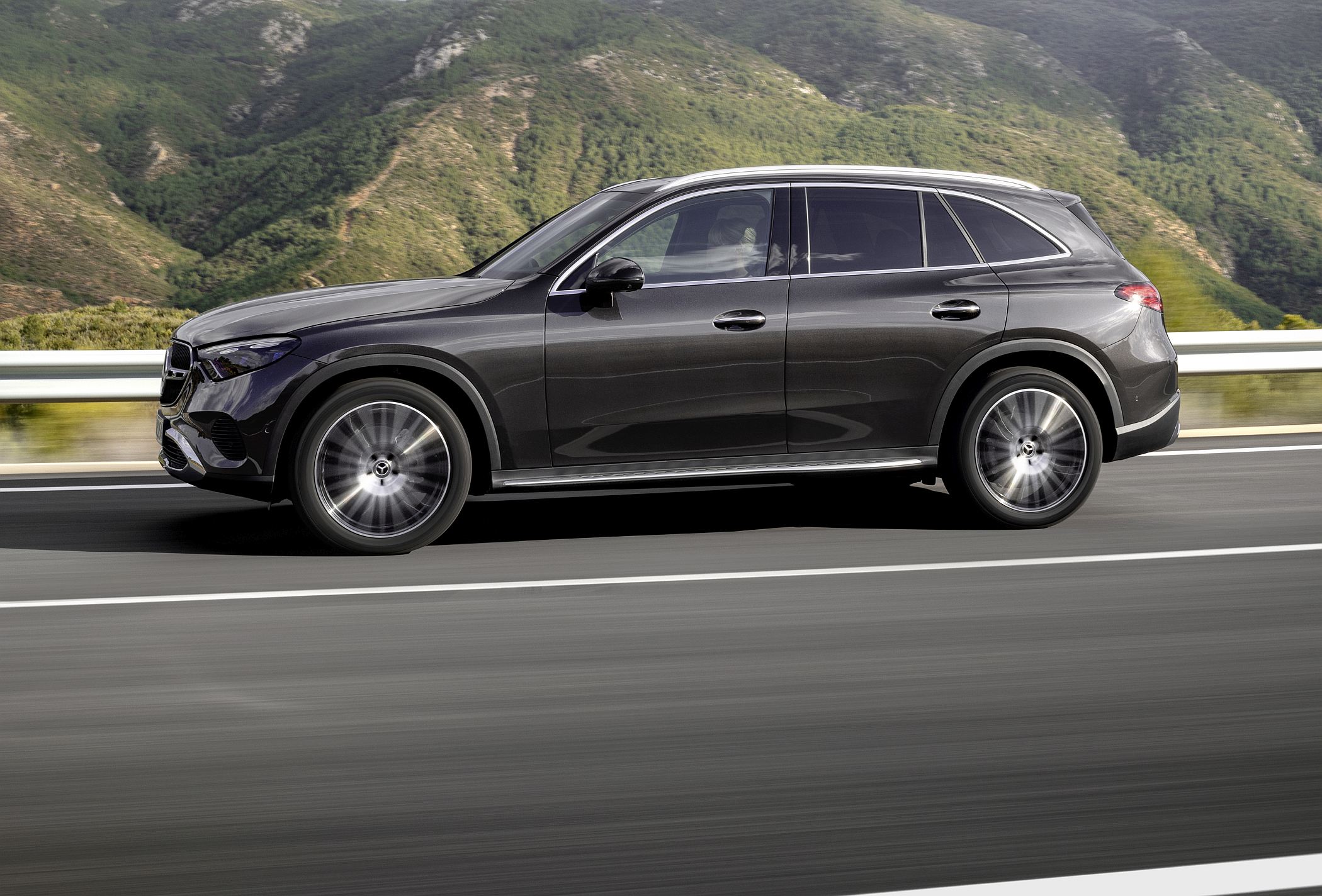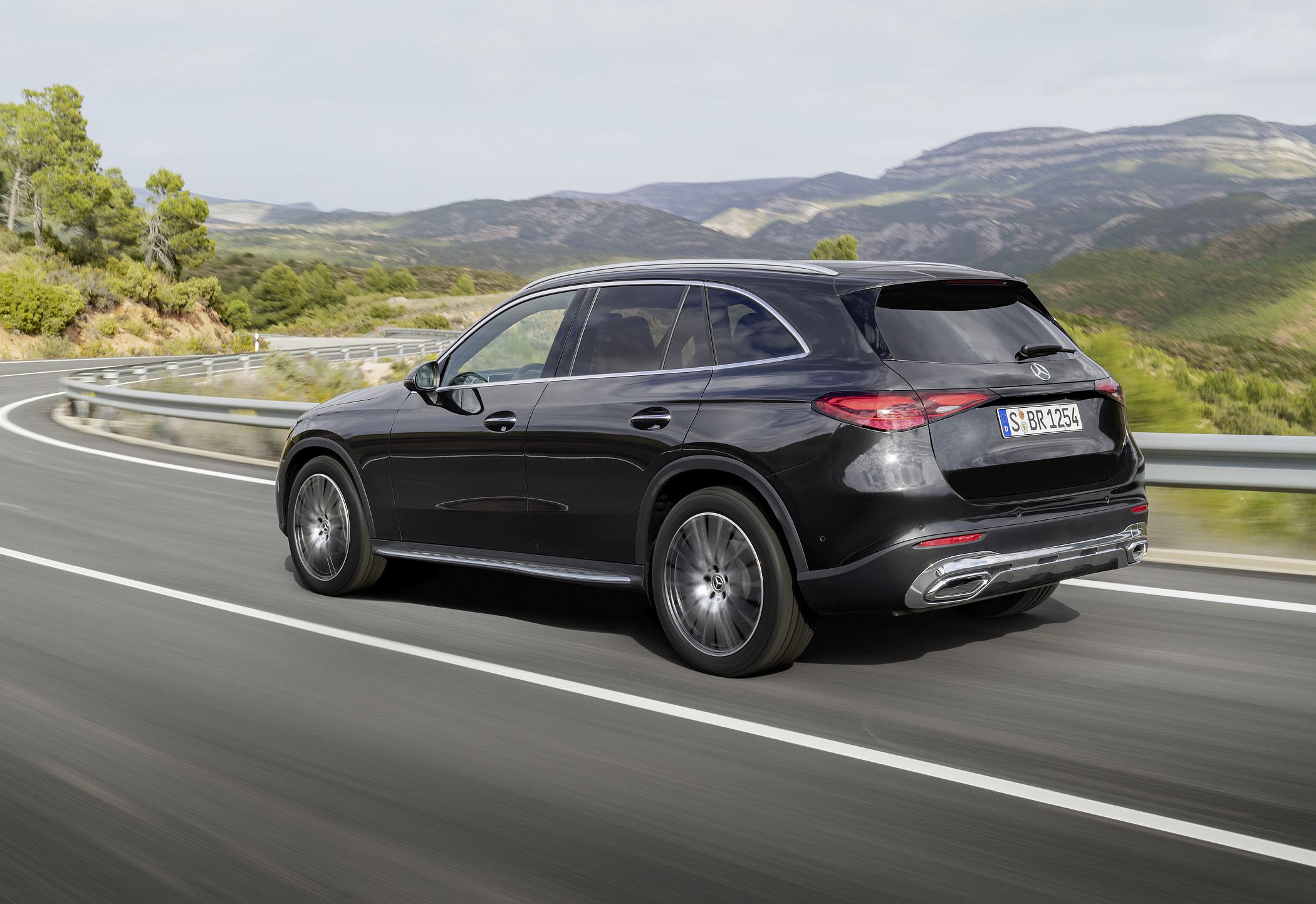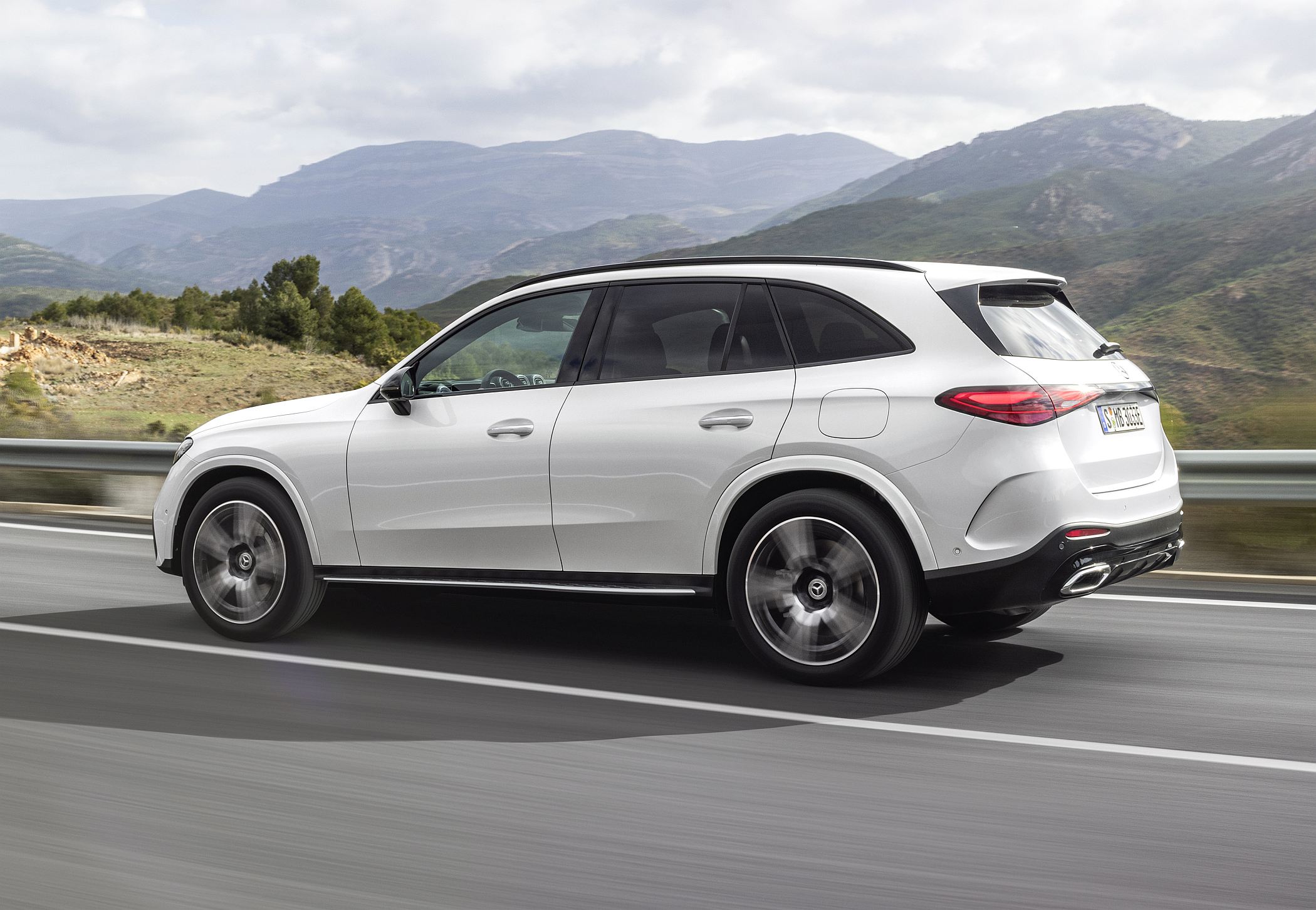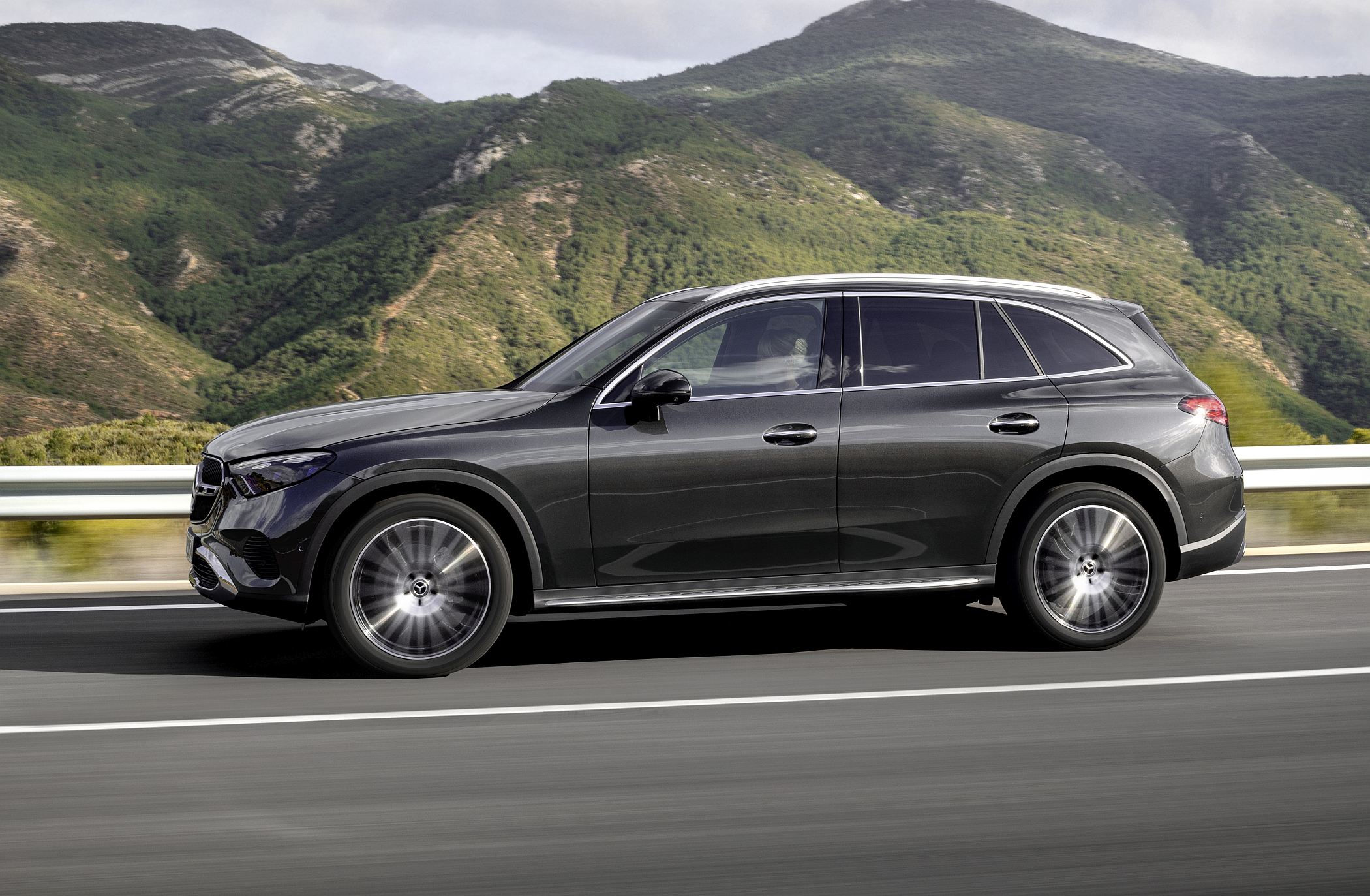 Mantendo a postura robusta típica de um SUV, o novo GLC conta com detalhes específicos como as proteções inferiores cromadas, as barras do tejadilho e, opcionalmente, os estribos laterais para ajudar a subir ou a descer do veículo. Estes elementos ajudam assim a equilibrar os lados da elegância, desportividade e capacidades fora de estrada.