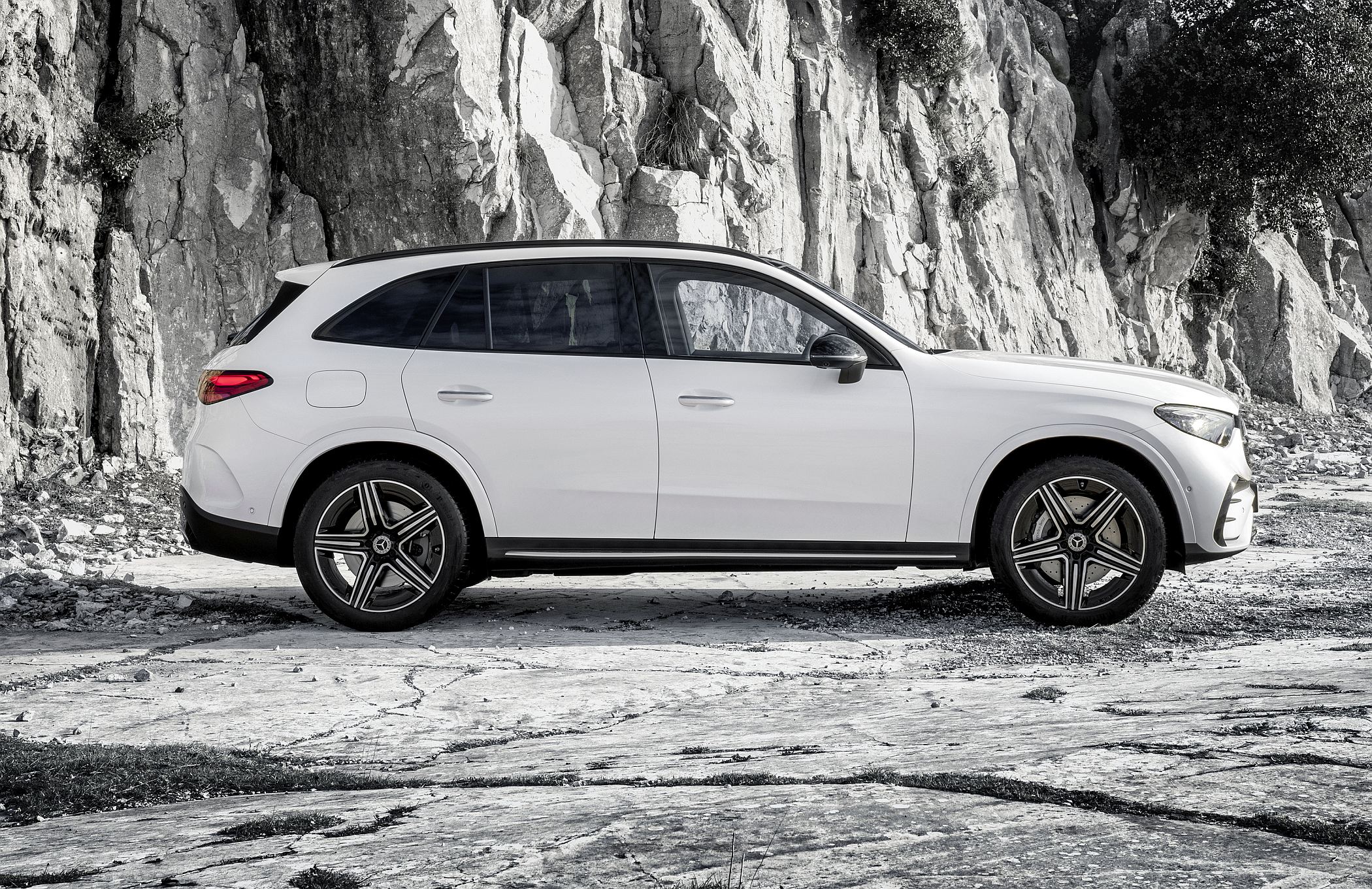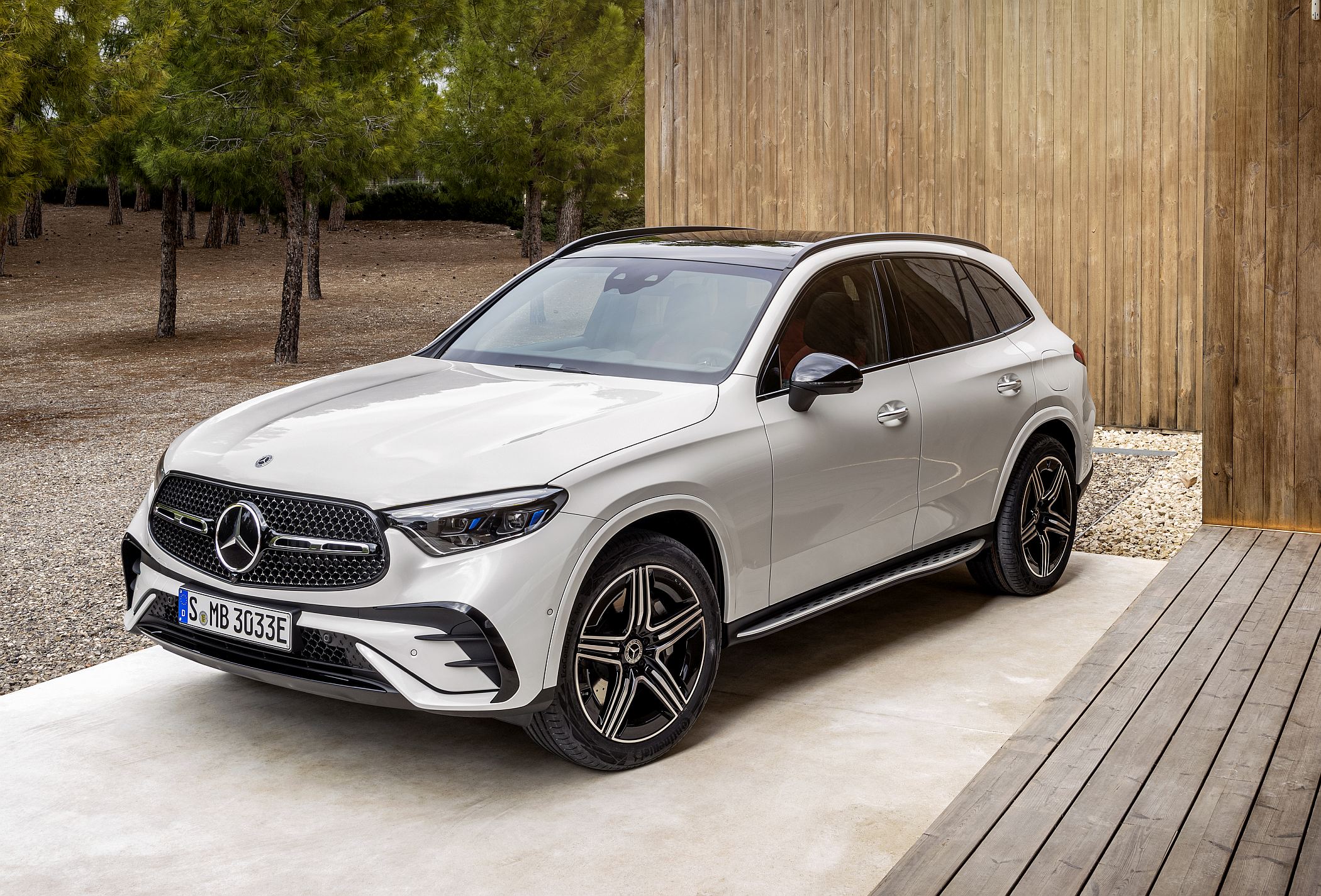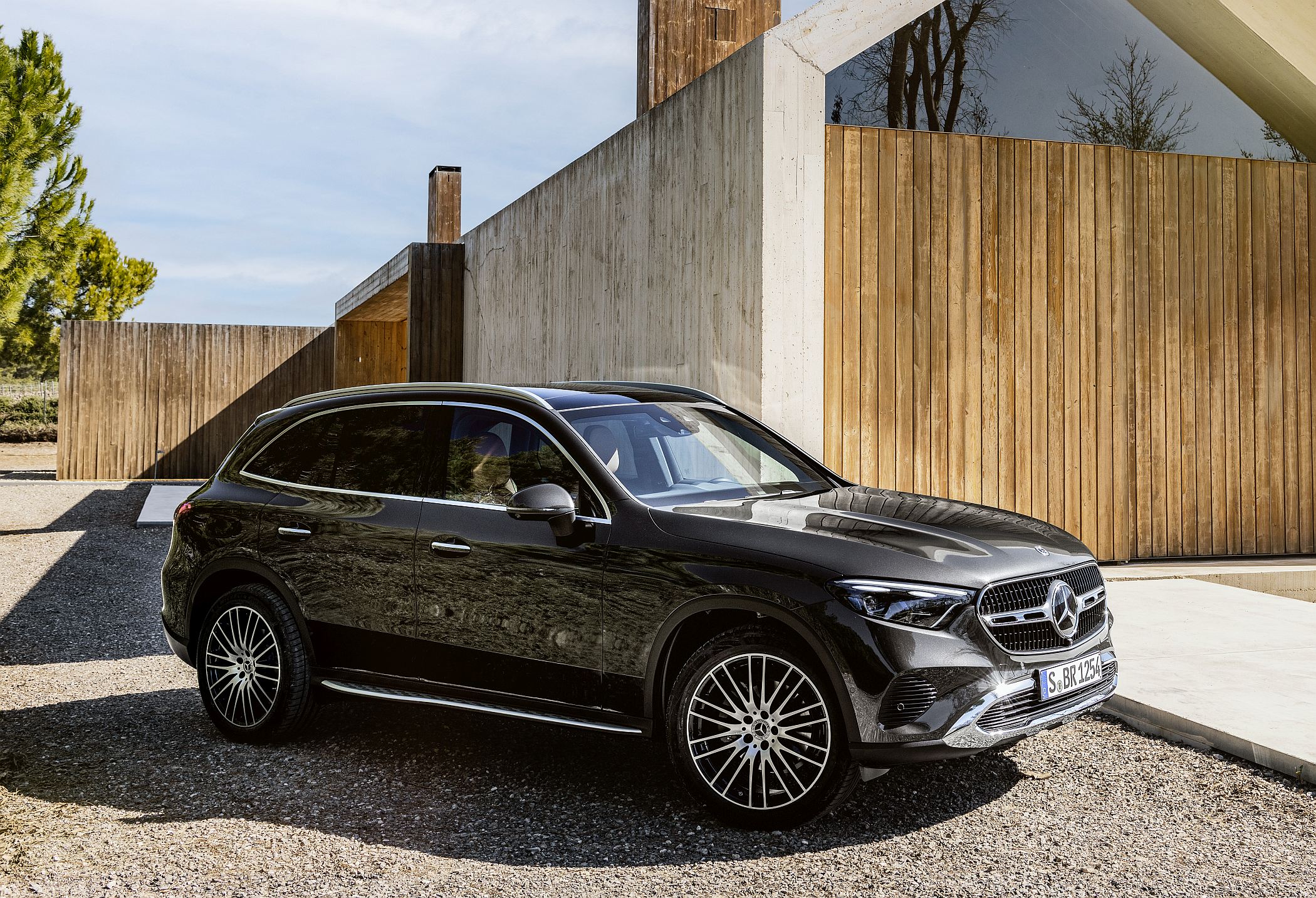 Mantendo a postura robusta típica de um SUV, o novo GLC conta com detalhes específicos como as proteções inferiores cromadas, as barras do tejadilho e, opcionalmente, os estribos laterais para ajudar a subir ou a descer do veículo. Estes elementos ajudam assim a equilibrar os lados da elegância, desportividade e capacidades fora de estrada.