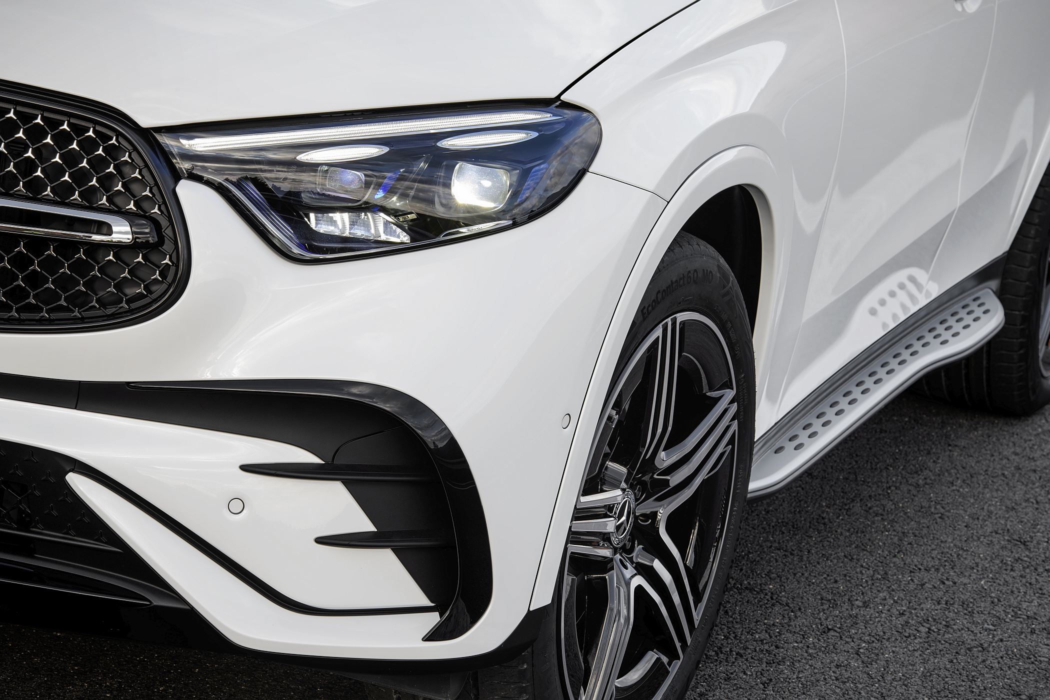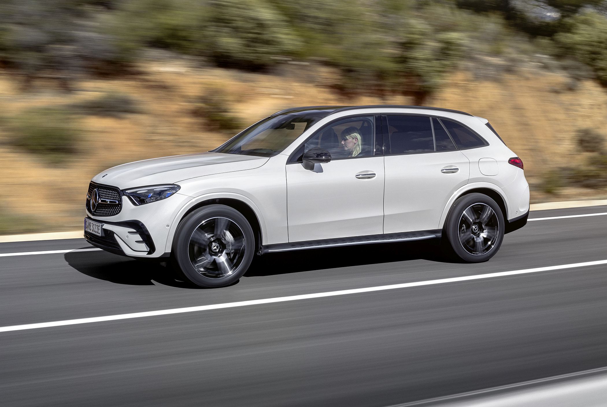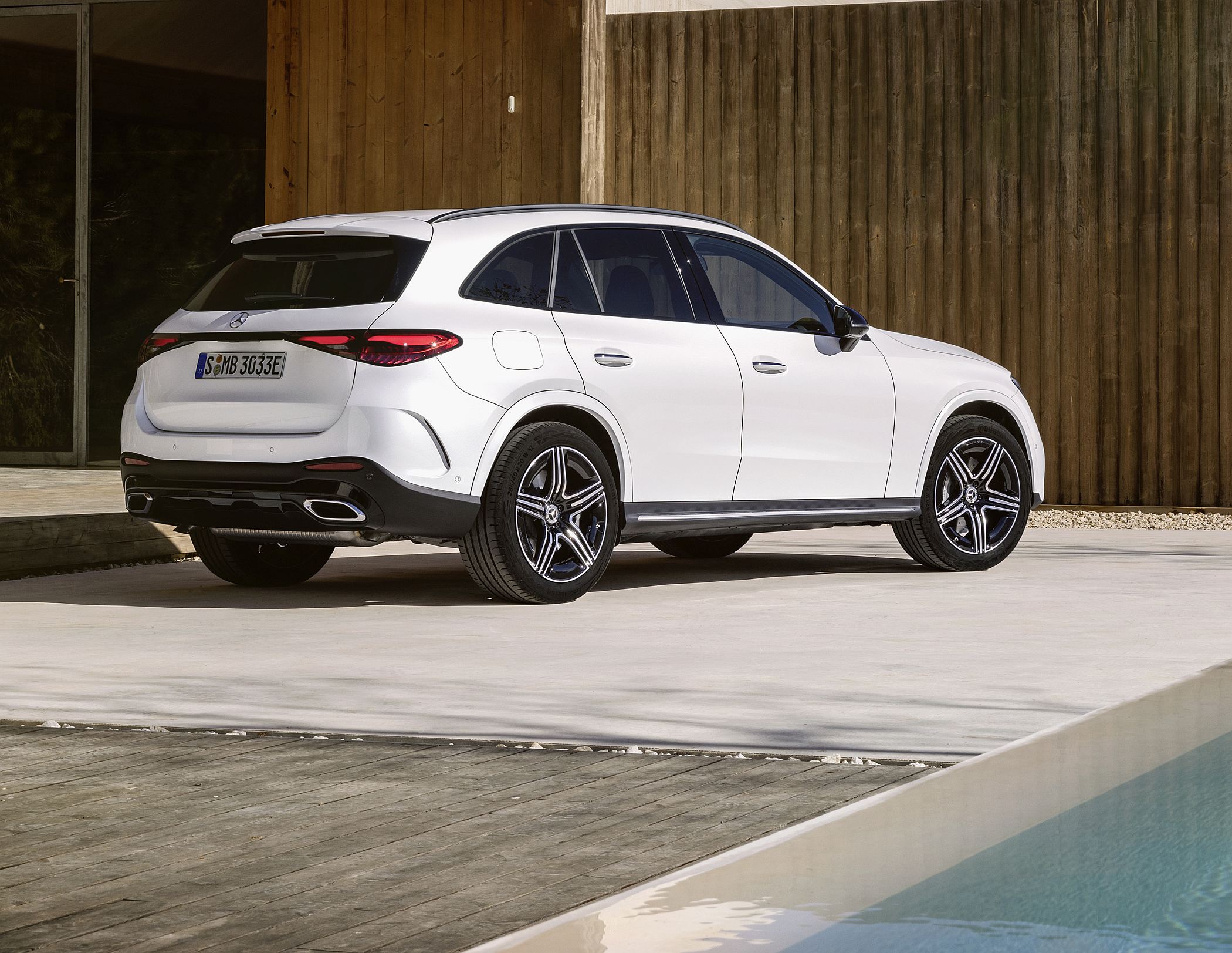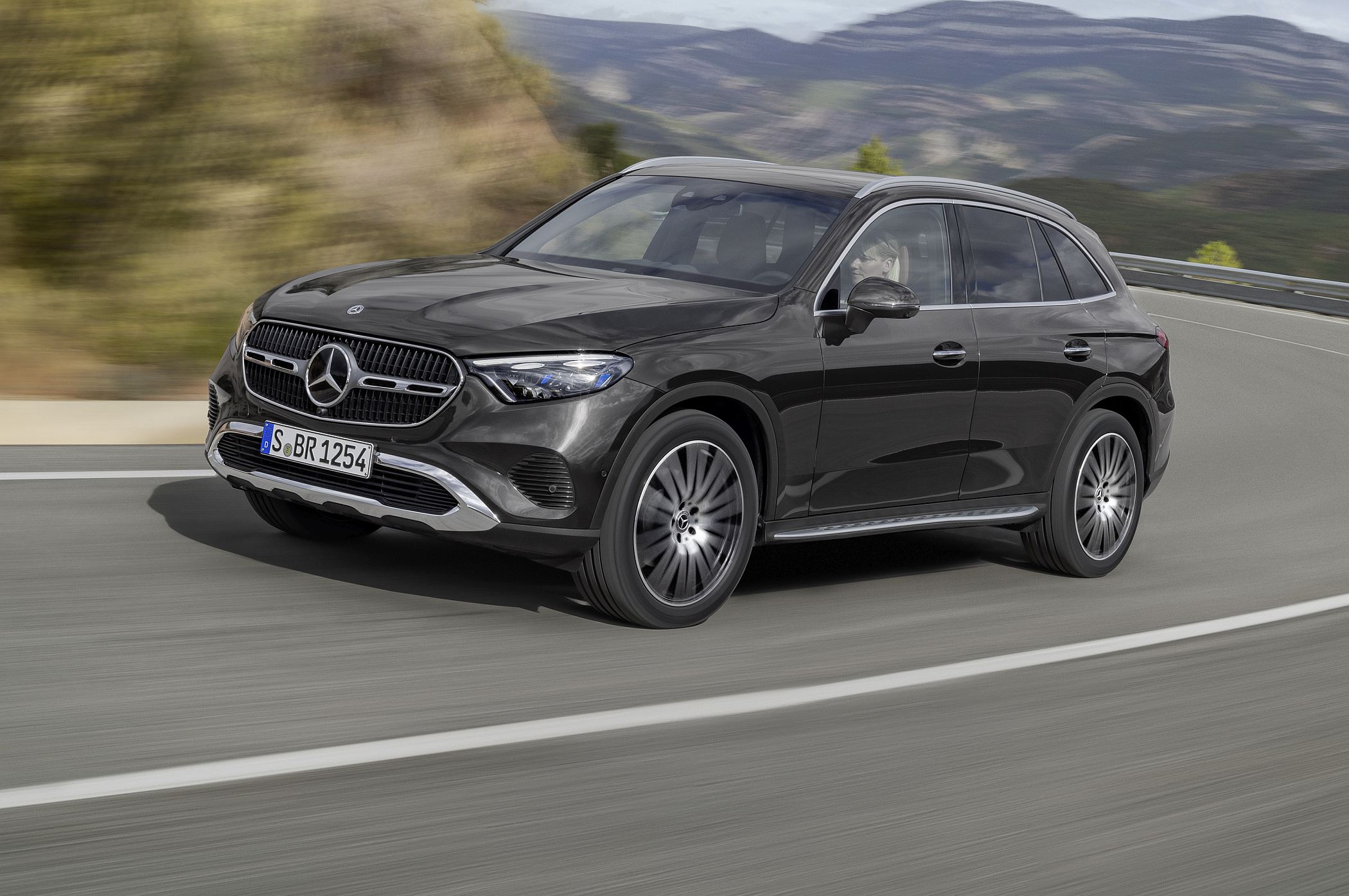 Mantendo a postura robusta típica de um SUV, o novo GLC conta com detalhes específicos como as proteções inferiores cromadas, as barras do tejadilho e, opcionalmente, os estribos laterais para ajudar a subir ou a descer do veículo. Estes elementos ajudam assim a equilibrar os lados da elegância, desportividade e capacidades fora de estrada.