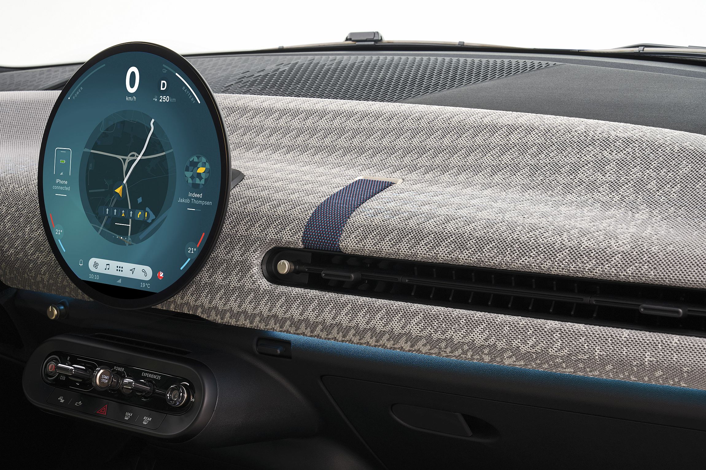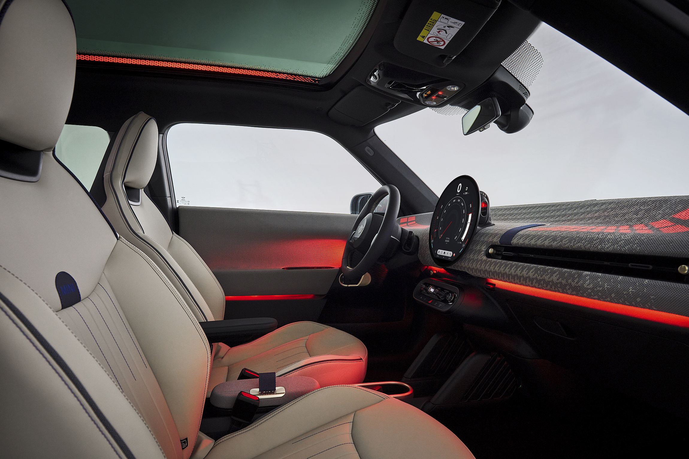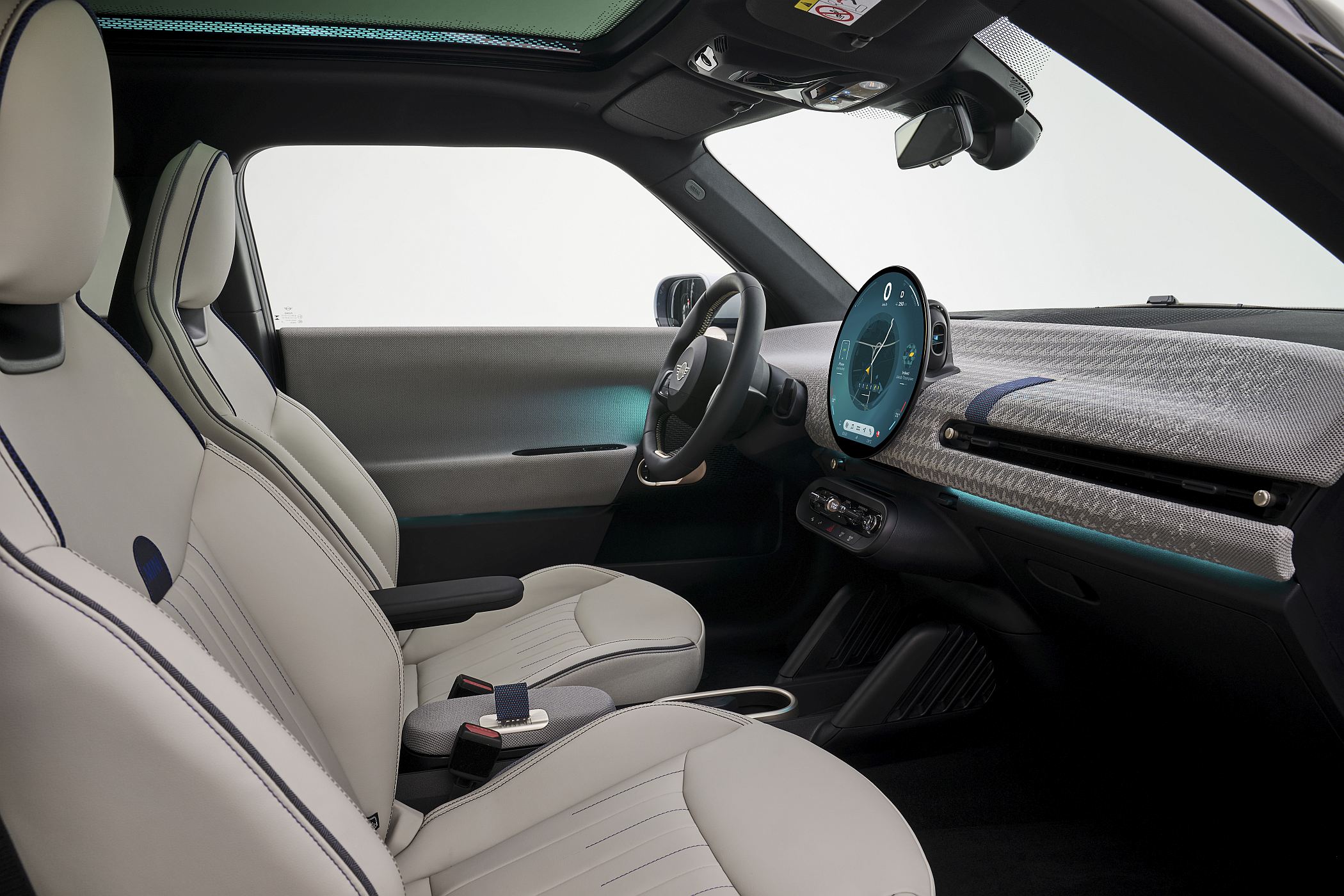 Os materiais também são mais sustentáveis, com uma sensação agradável graças a têxteis com design de duas cores provenientes de poliéster reciclado, com várias cores à escolha para as superfícies e para os revestimentos dos bancos, dependendo do equipamento escolhido. Os bancos, por exemplo, estão disponíveis em versões básicas e John Cooper Works, mais desportivos. A marca também reforçou a vertente de iluminação ambiente para uma sensação de irreverência.