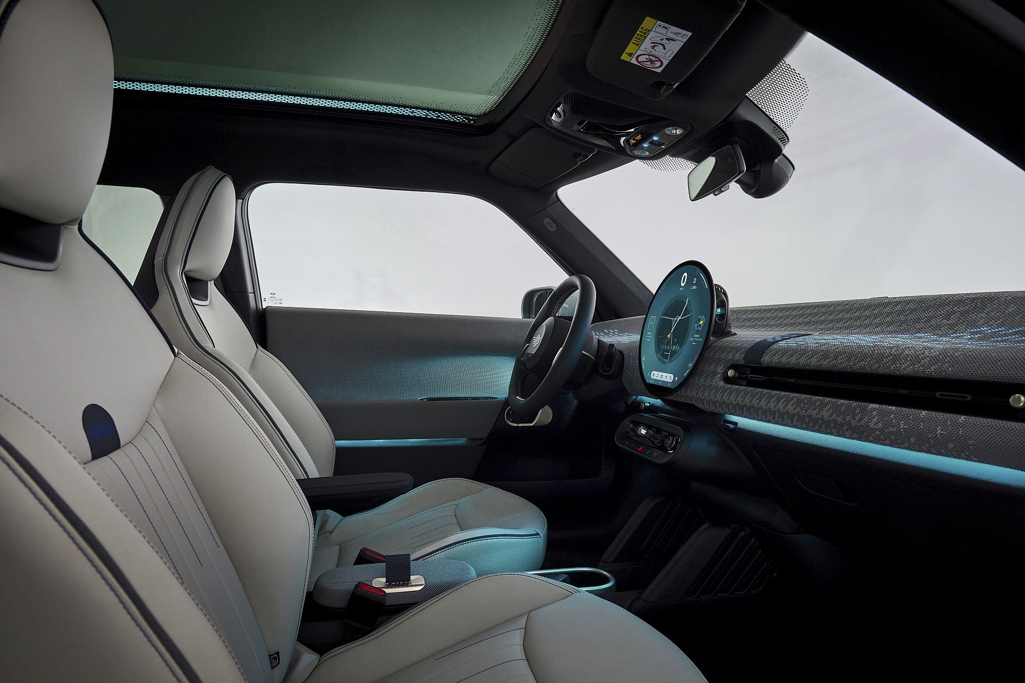 O ecrã central OLED serve de painel de instrumentos, denominado MINI Interaction Unit, com sistema de nona geração e comandos táteis ou vocais. O diâmetro do ecrã com um vidro de alta qualidade cresceu para os 240 mm, estando a área de utilização mais perto do condutor para melhor acessibilidade. O MINI Operating System 9 é um desenvolvimento interno do Grupo BMW e tem por base o software Android (Android Open Source Project) permitindo assim uma interação familiar e fácil de personalizar.