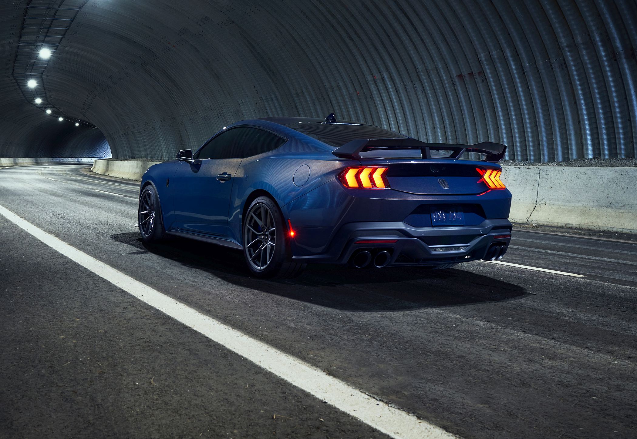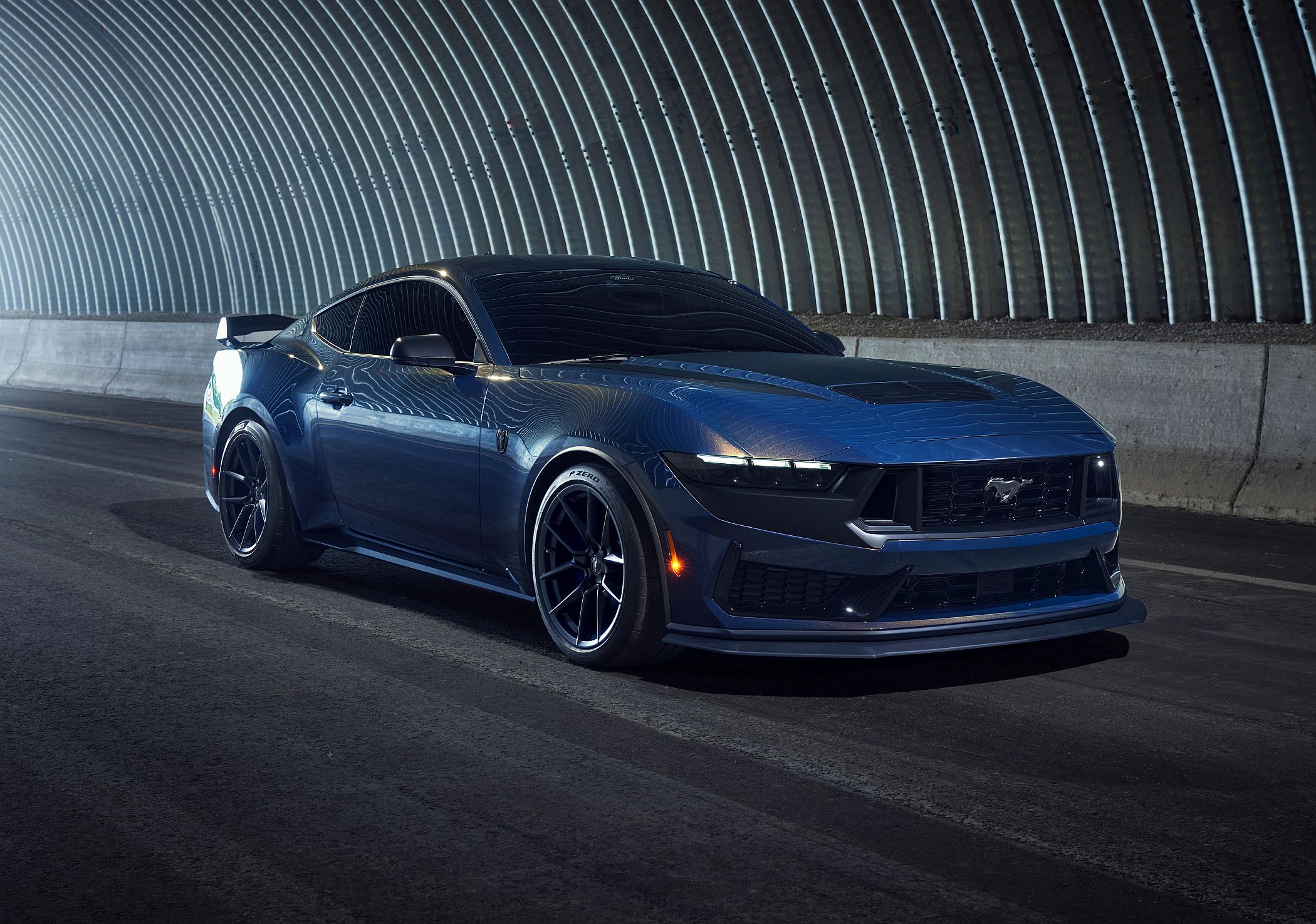 O Mustang Dark Horse apresenta também atualizações estéticas concebidas para refletir o seu estatuto de topo da sétima geração Mustang, bem como aumentar as aptidões em pista.